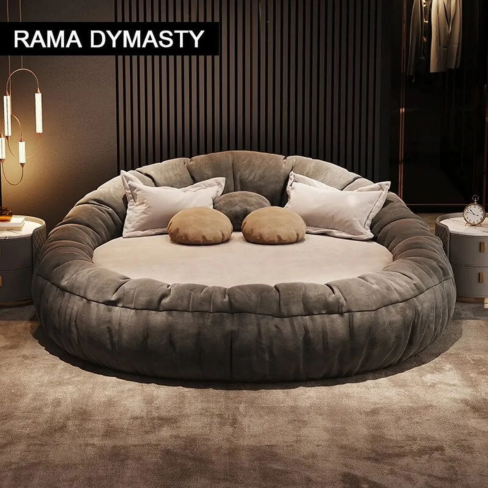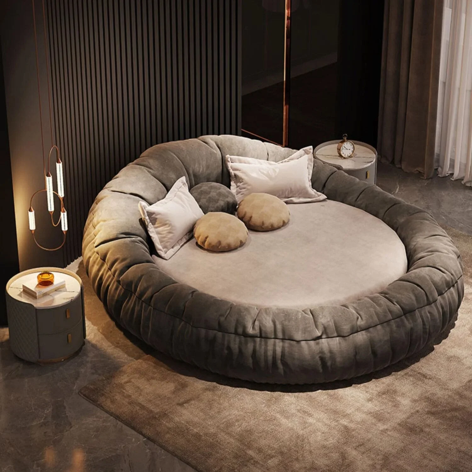 Modern Minimalist Round Bed Couple Bed 2M Italian Minimalist Master Bedroom Double Bed Light Luxury Fabric Bed