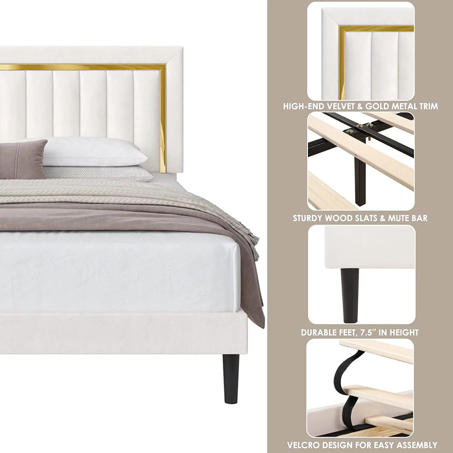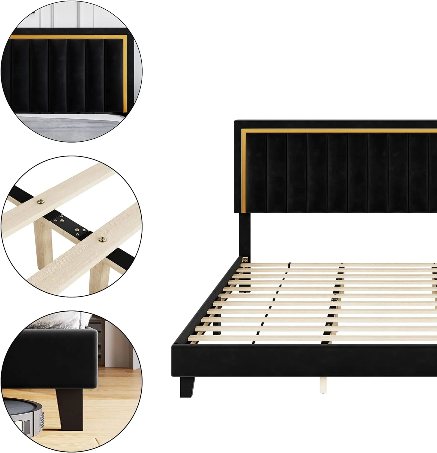 The Furniture King Split Frame King Size Wood Slat Plank Boards Attached with Black Strapping Custom Sizes (39" Wide)