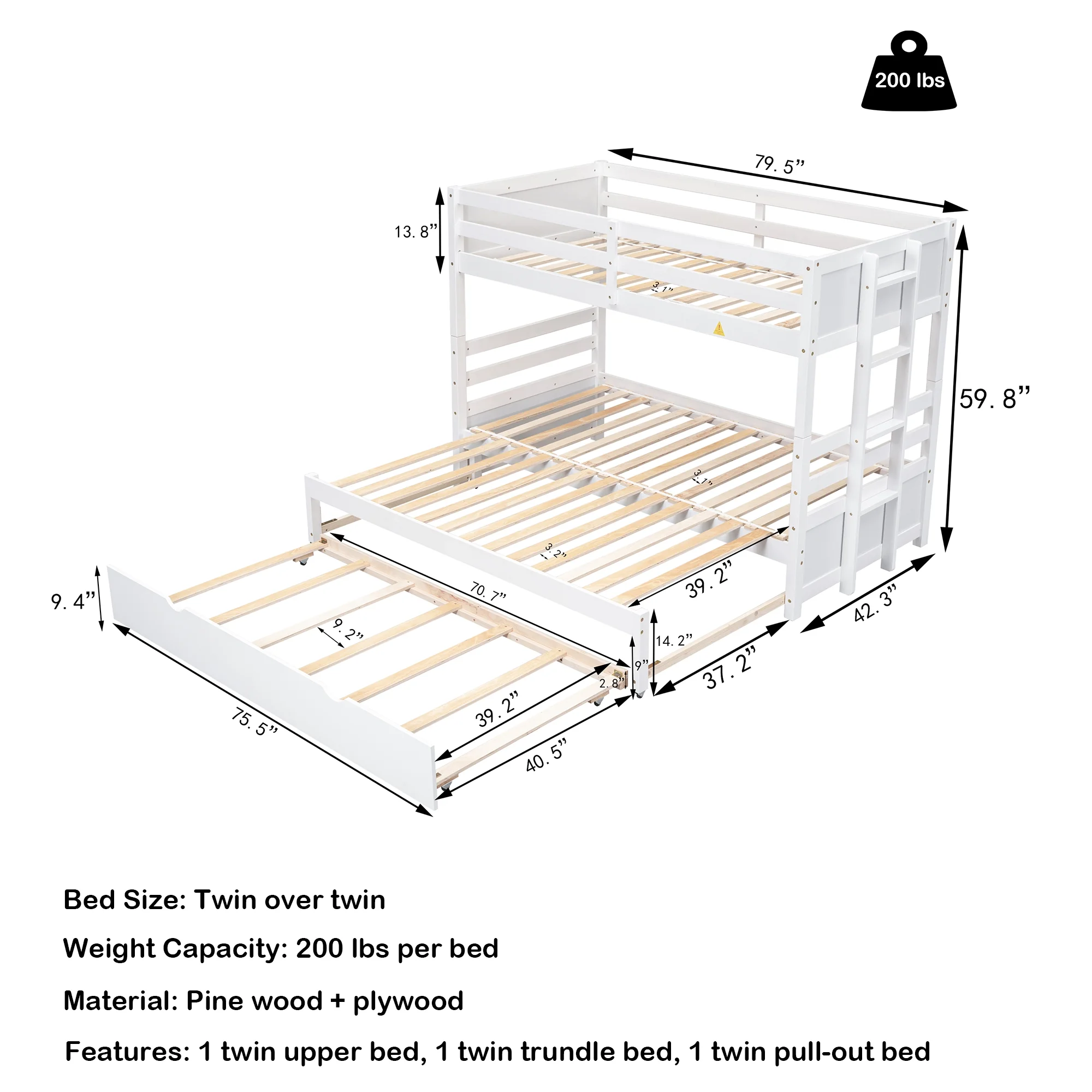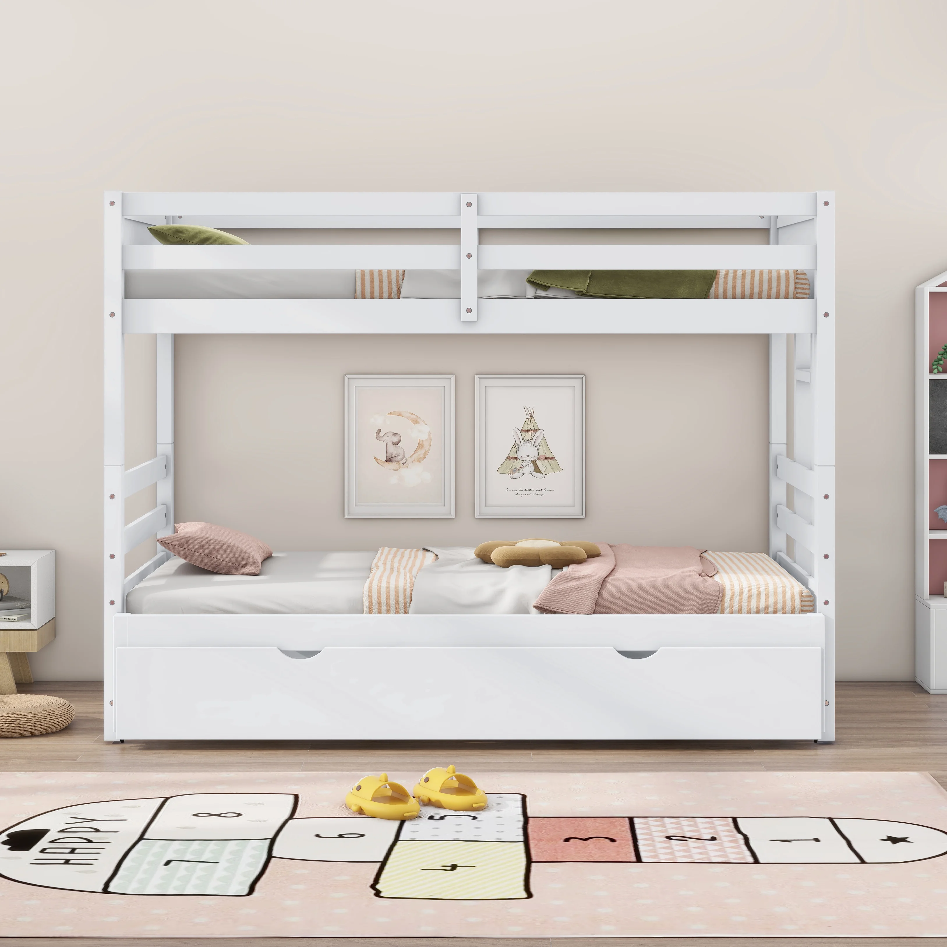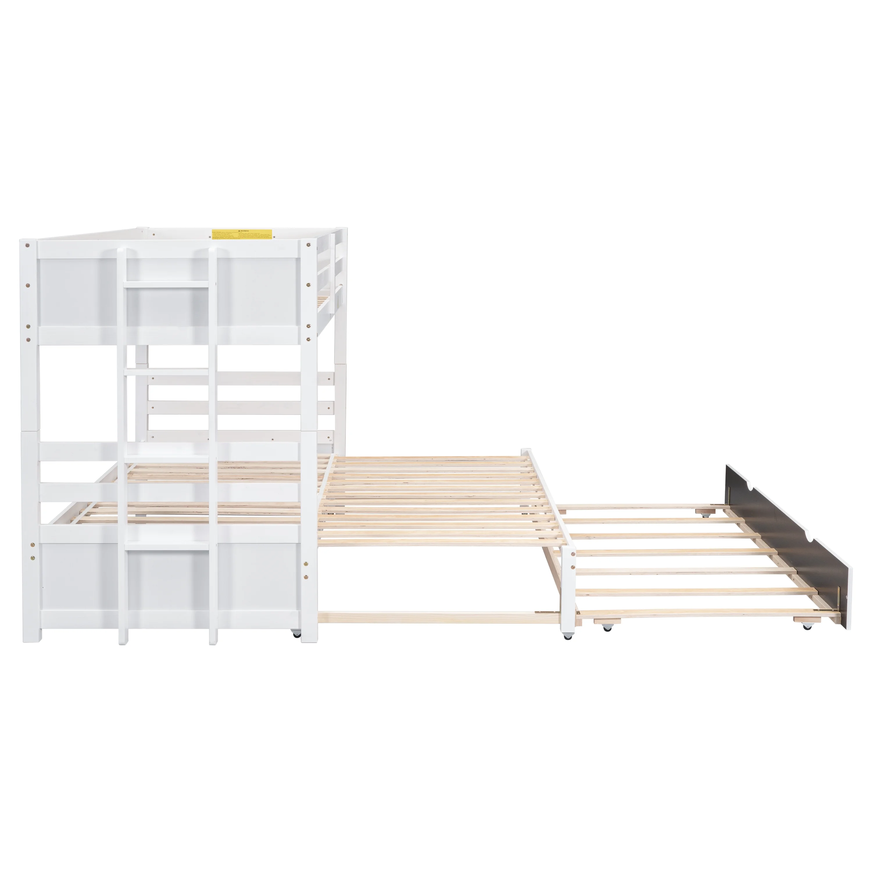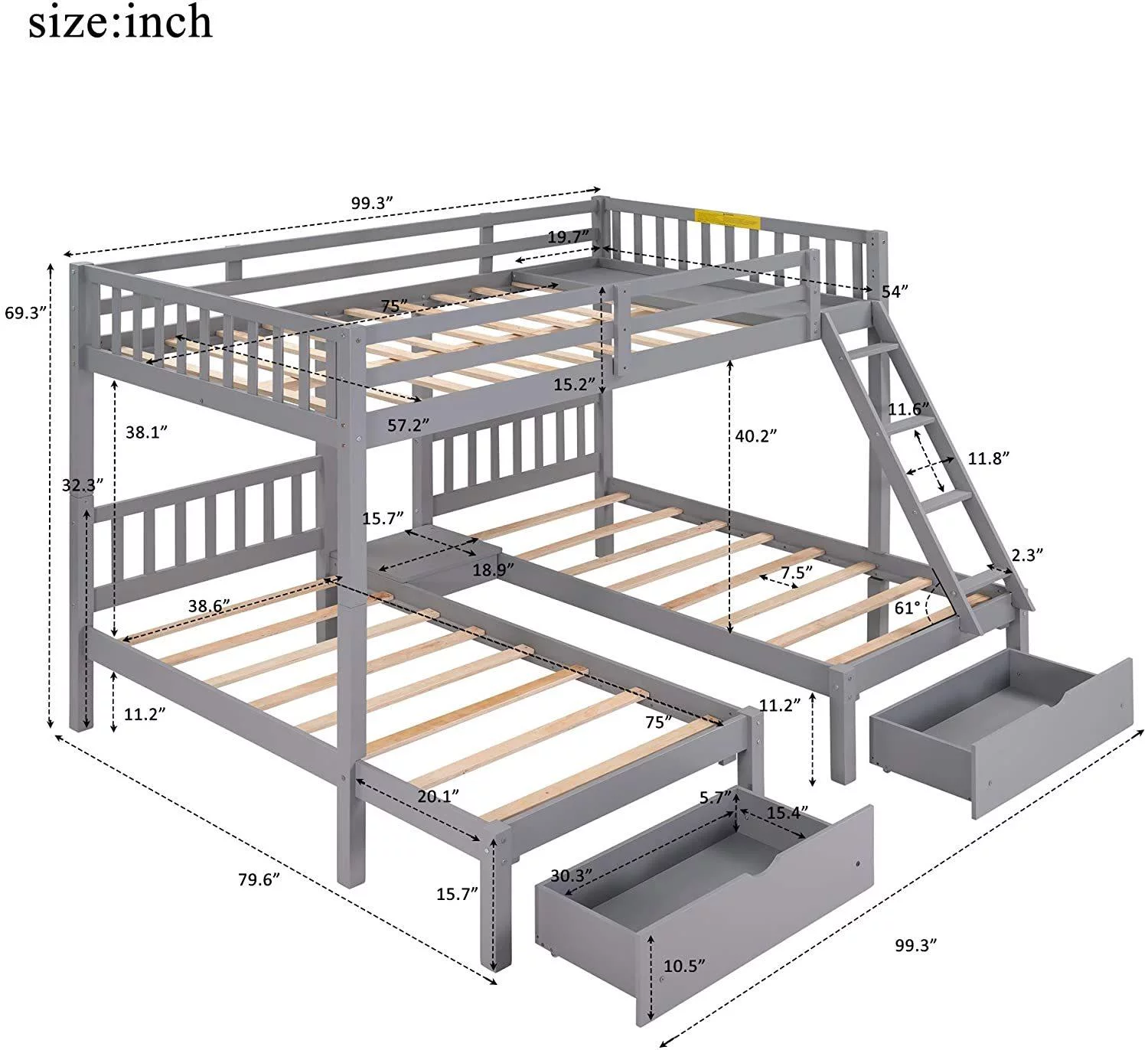 Triple Bunk Bed Full Over 2 Twin Bunk Bed with 4 Drawers and Guardrails, Bunk Bed for Family, Kids, Teens,No Box Spring Needed