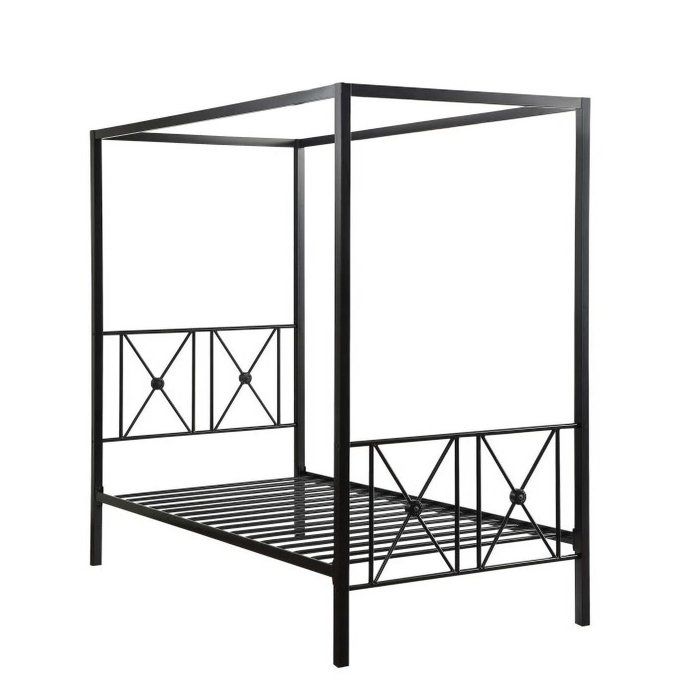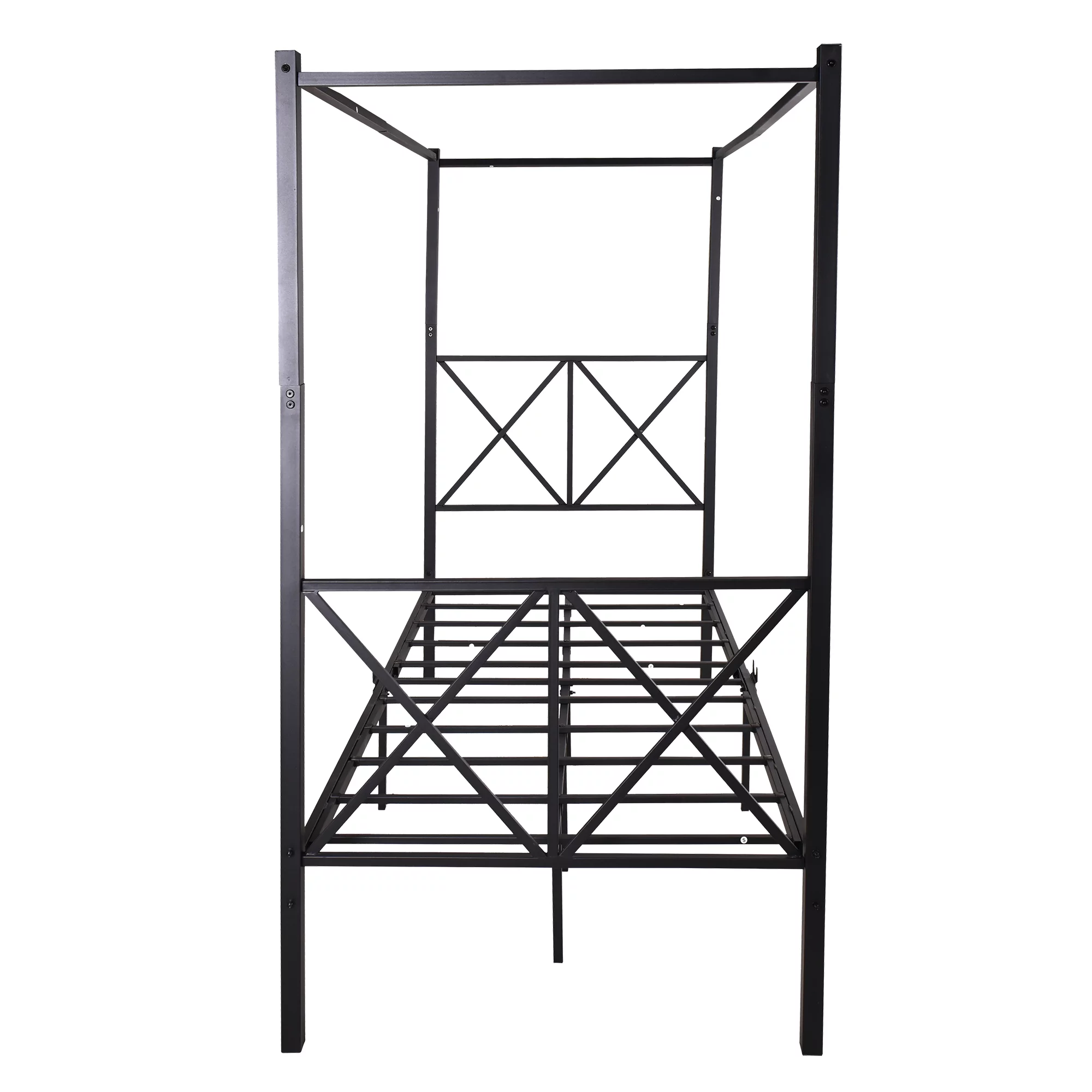 Twin Size Metal Canopy Bed Frame, Platform Bed Frame with X Shaped Frame Black