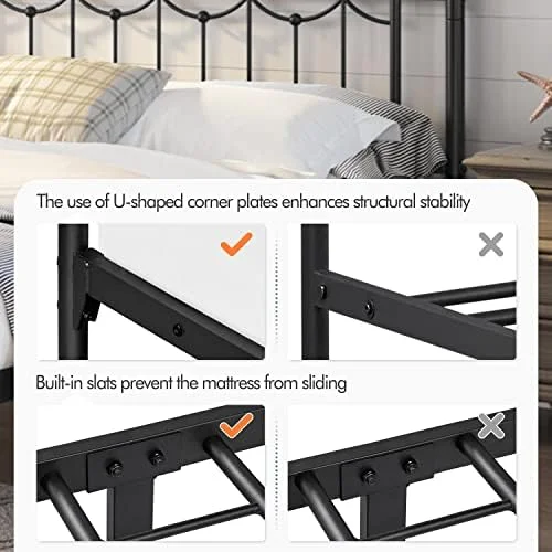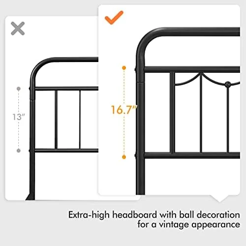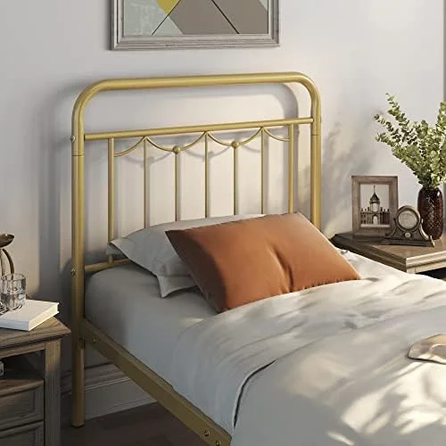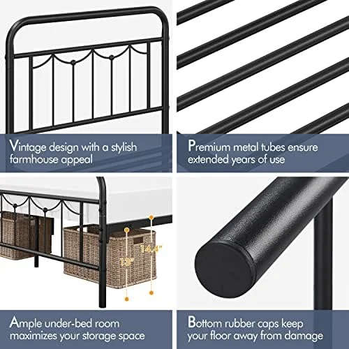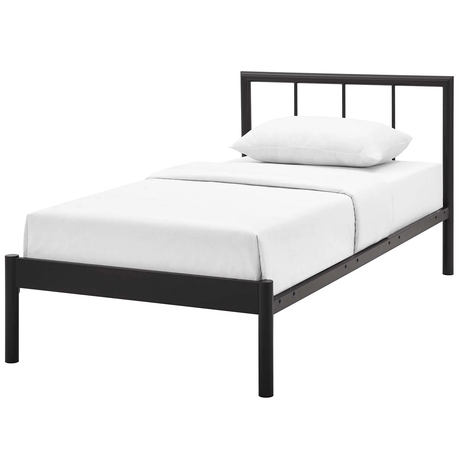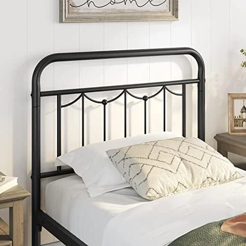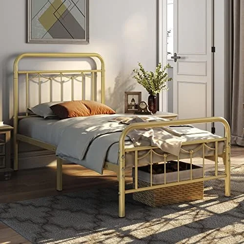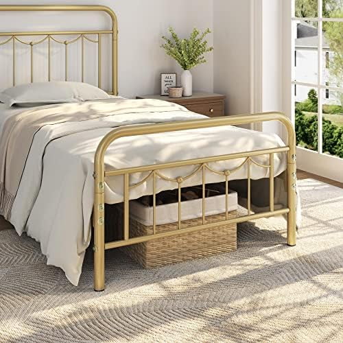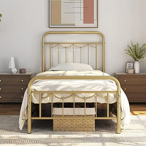 Industrial Country Cottage Farm Beach House Bedroom Twin Size Platform Bed Frame, Metal Steel, Brown
