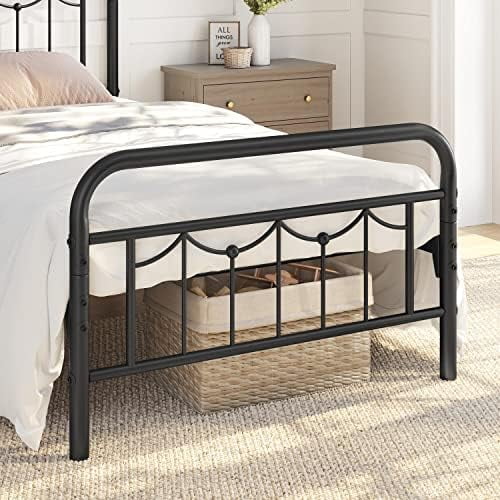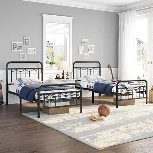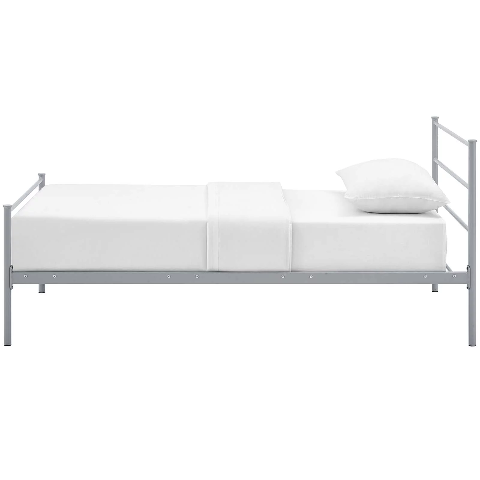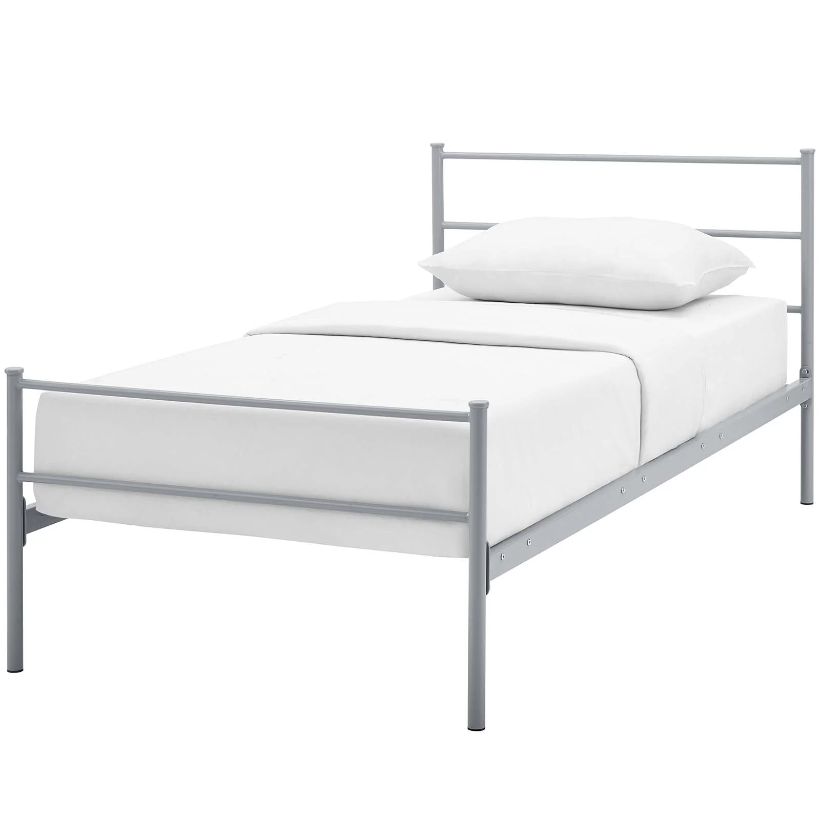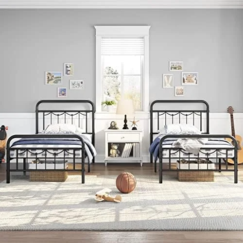 Industrial Country Cottage Farm Beach House Bedroom Twin Size Platform Bed Frame, Metal Steel, Grey Gray