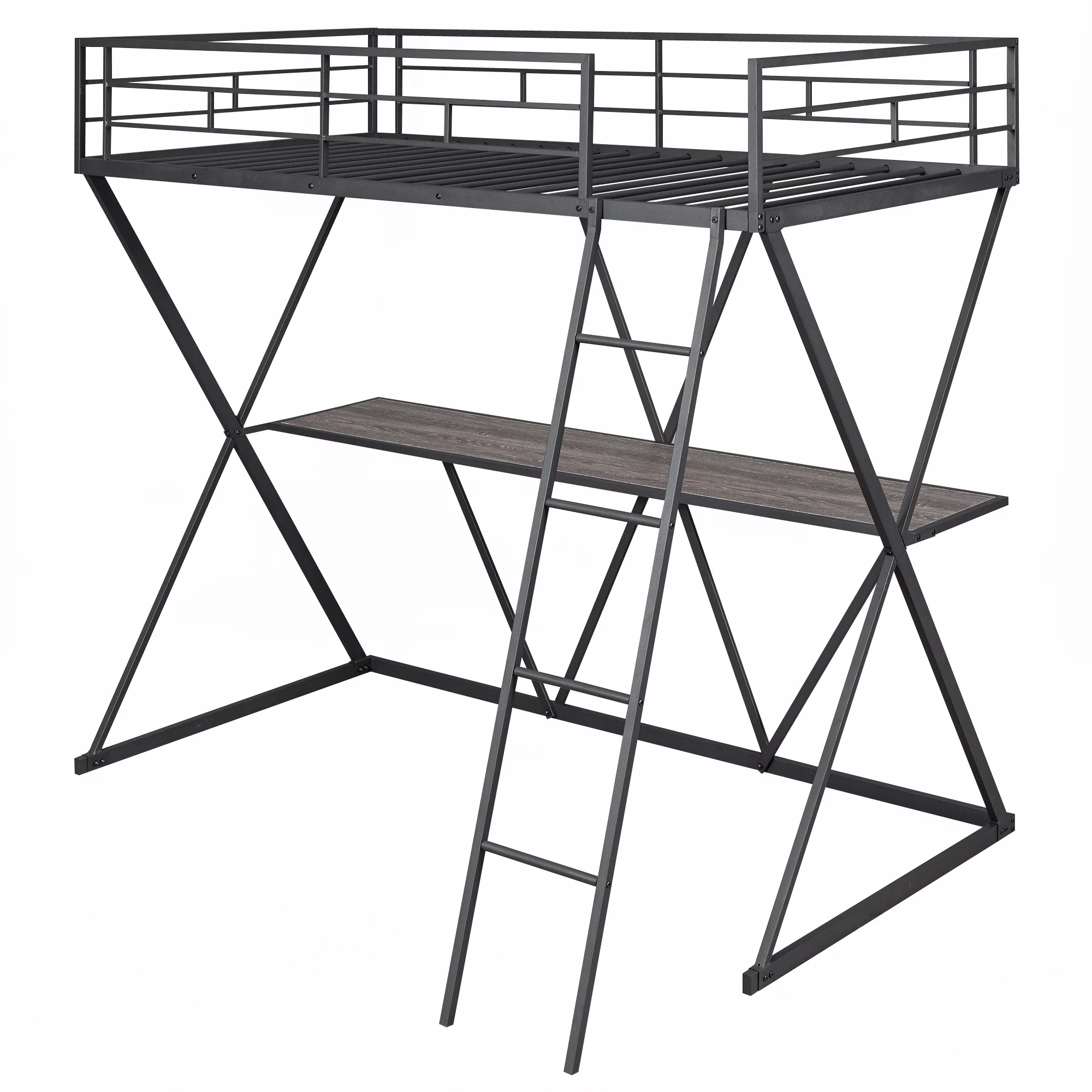 Gewnee Metal Twin Loft Bed with Desk and Ladder, X-Shaped Bed Frame for Kids,Teens, Black