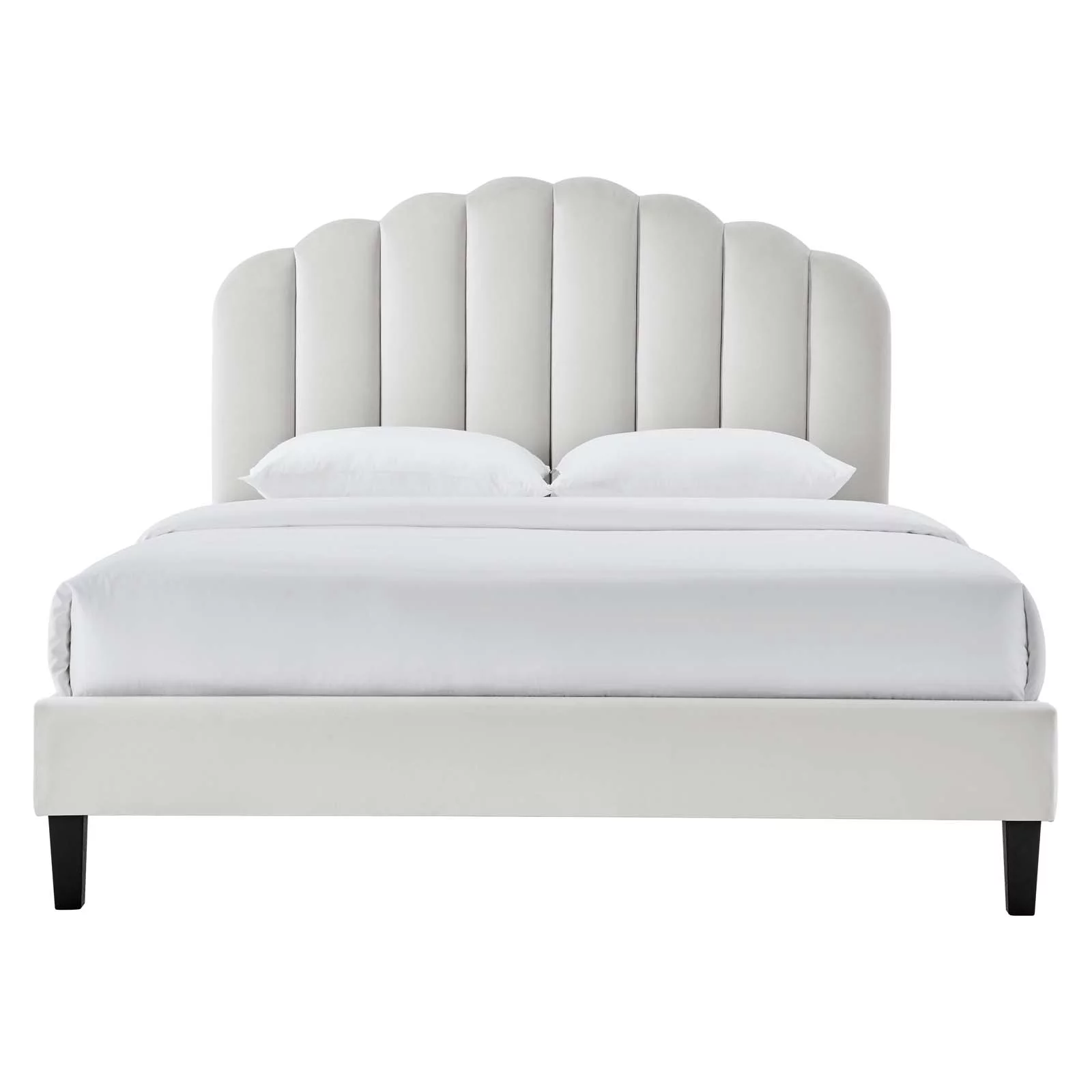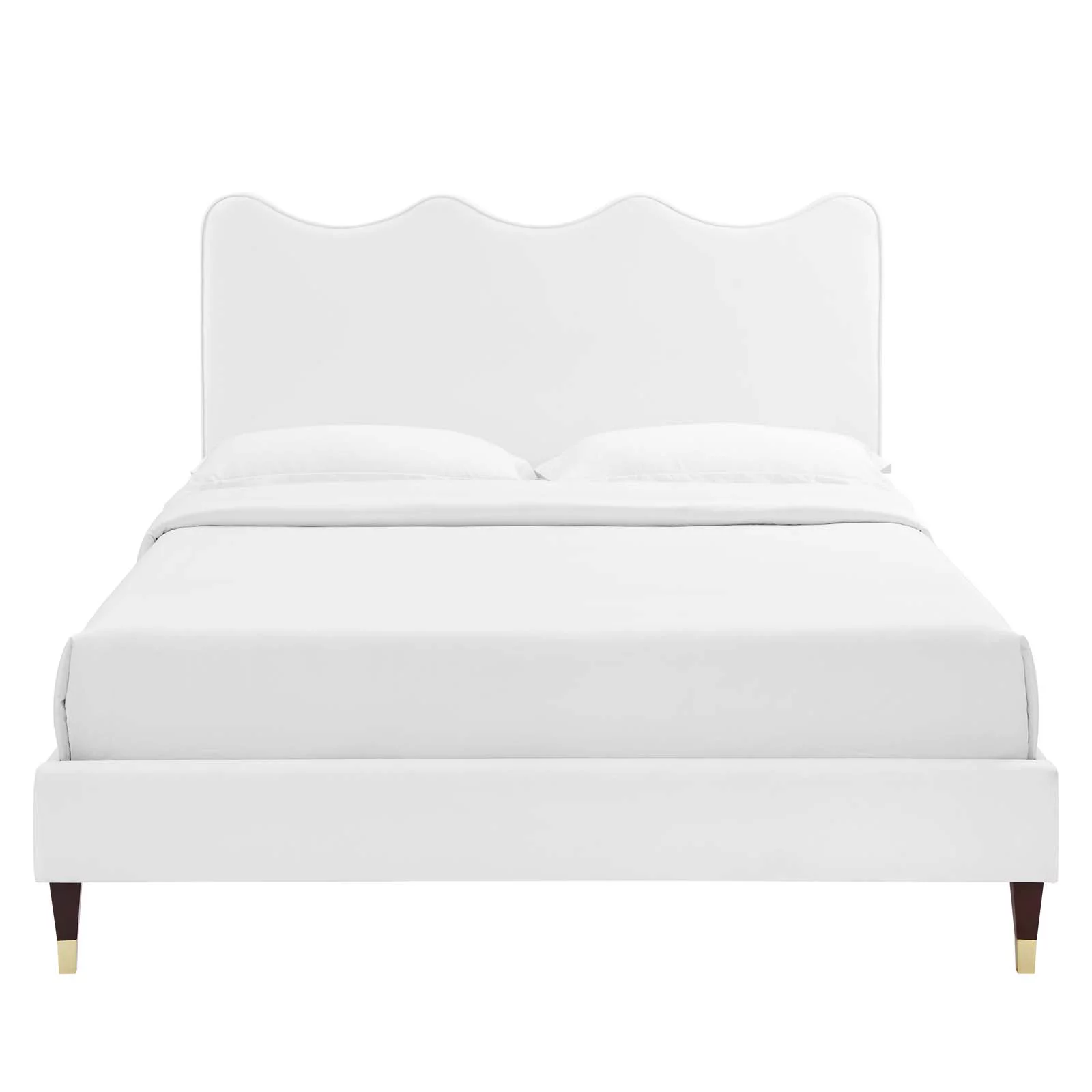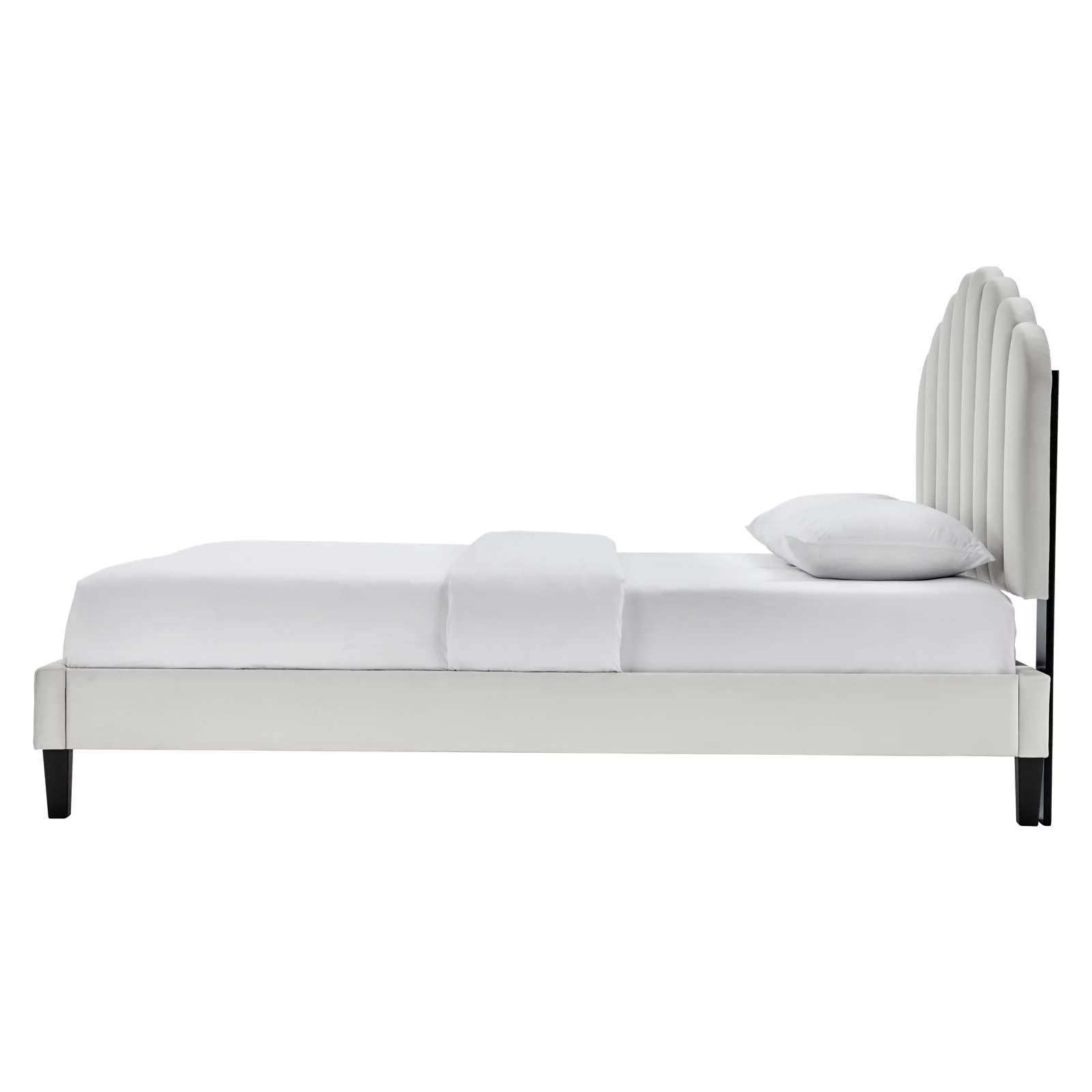 Platform Bed Frame, Twin Size, White, Velvet, Modern Contemporary, Bedroom Master Guest Suite Room