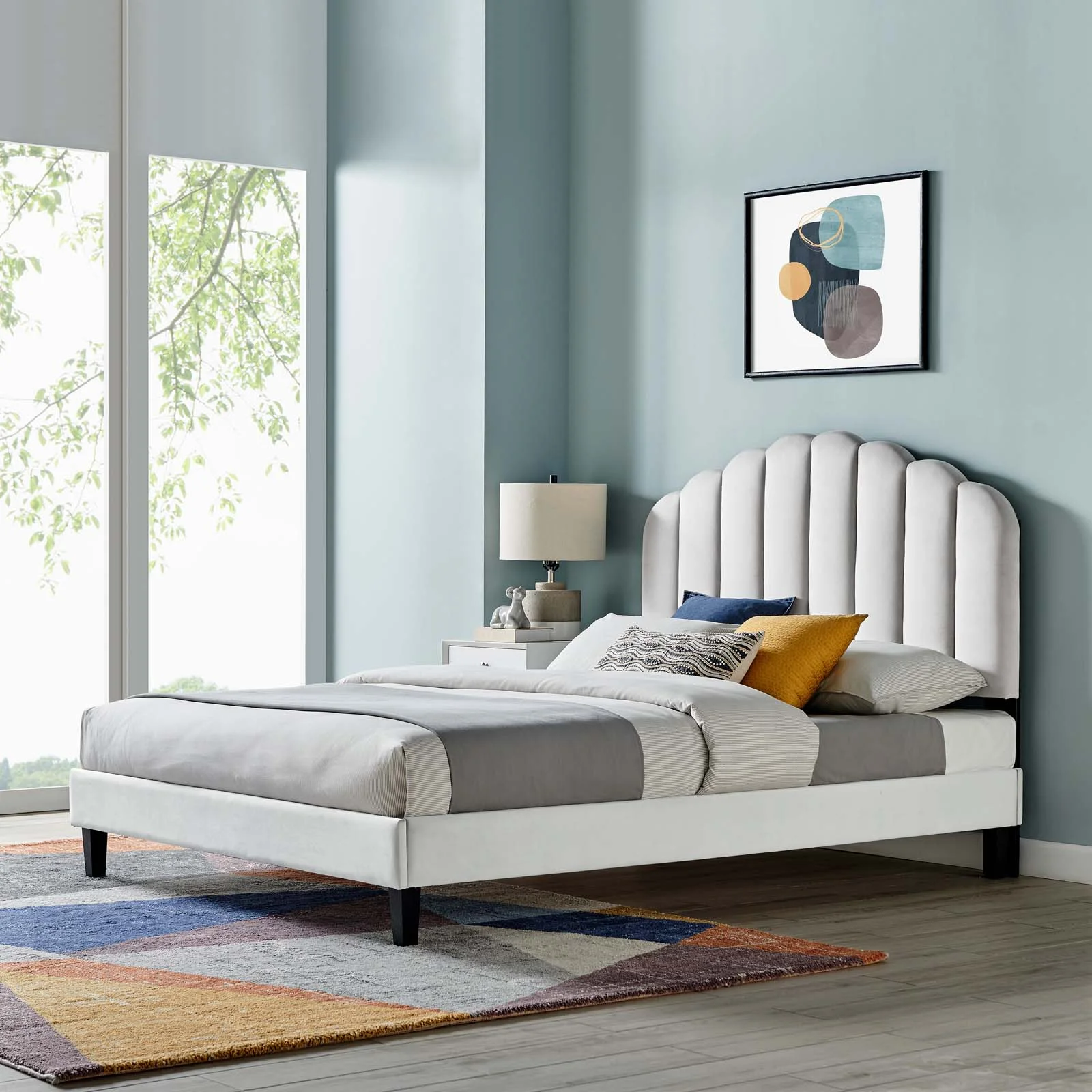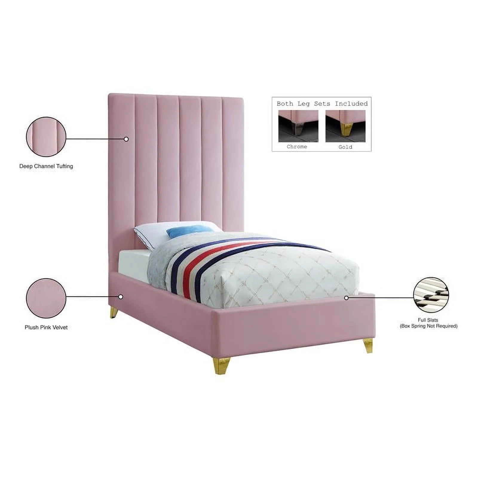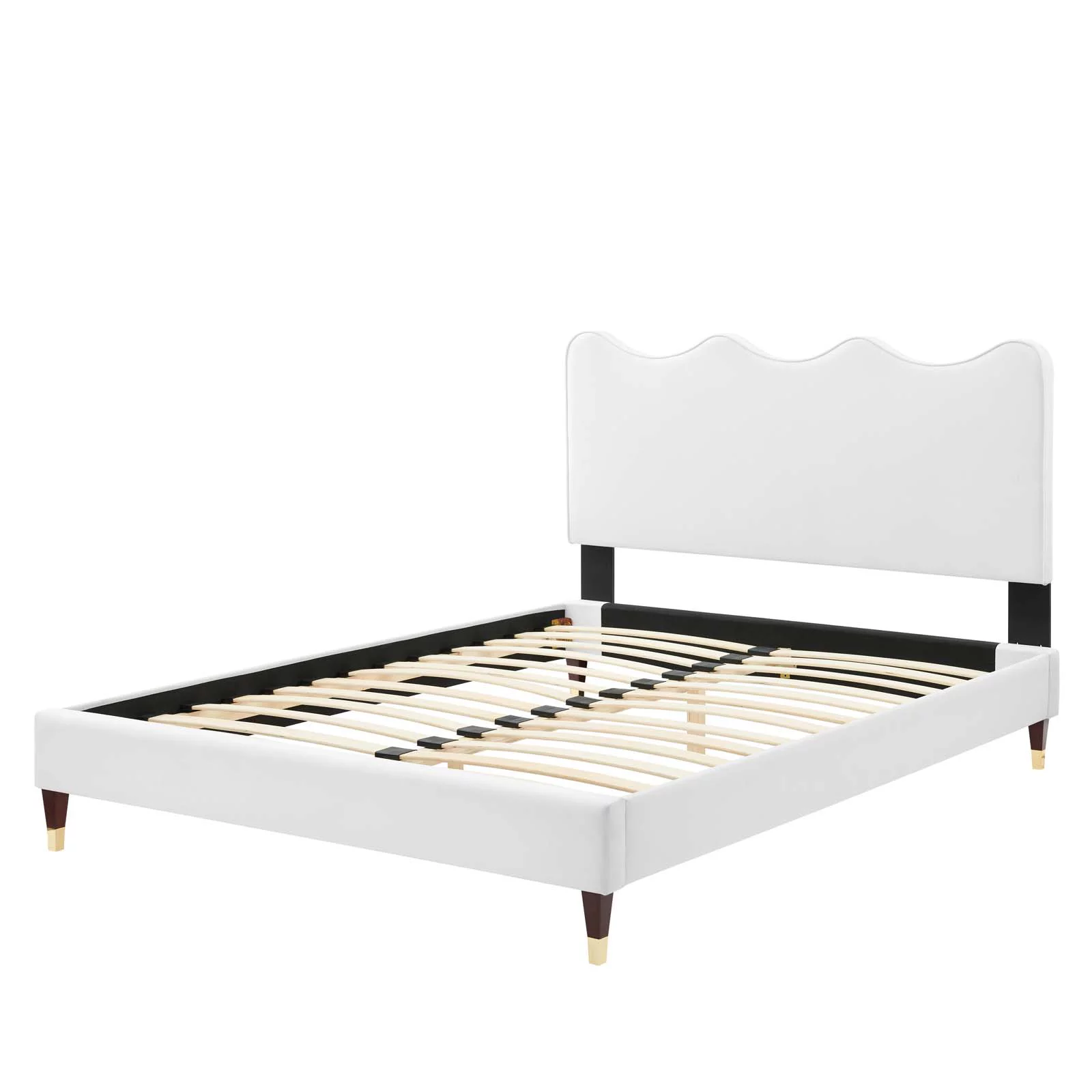Platform Bed Frame, Twin Size, White, Velvet, Modern Contemporary, Bedroom Master Guest Suite Room
