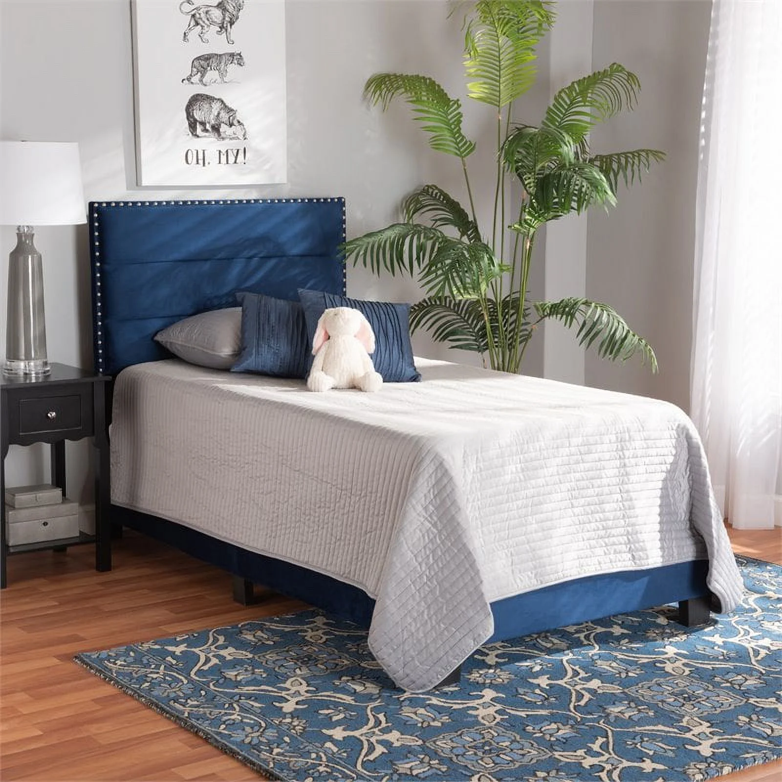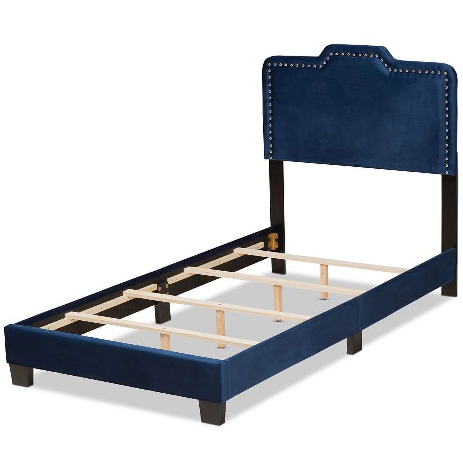 Baxton Studio Tamira Contemporary/Modern Velvet Tufted Panel Bed, Twin, Navy Blue/Black