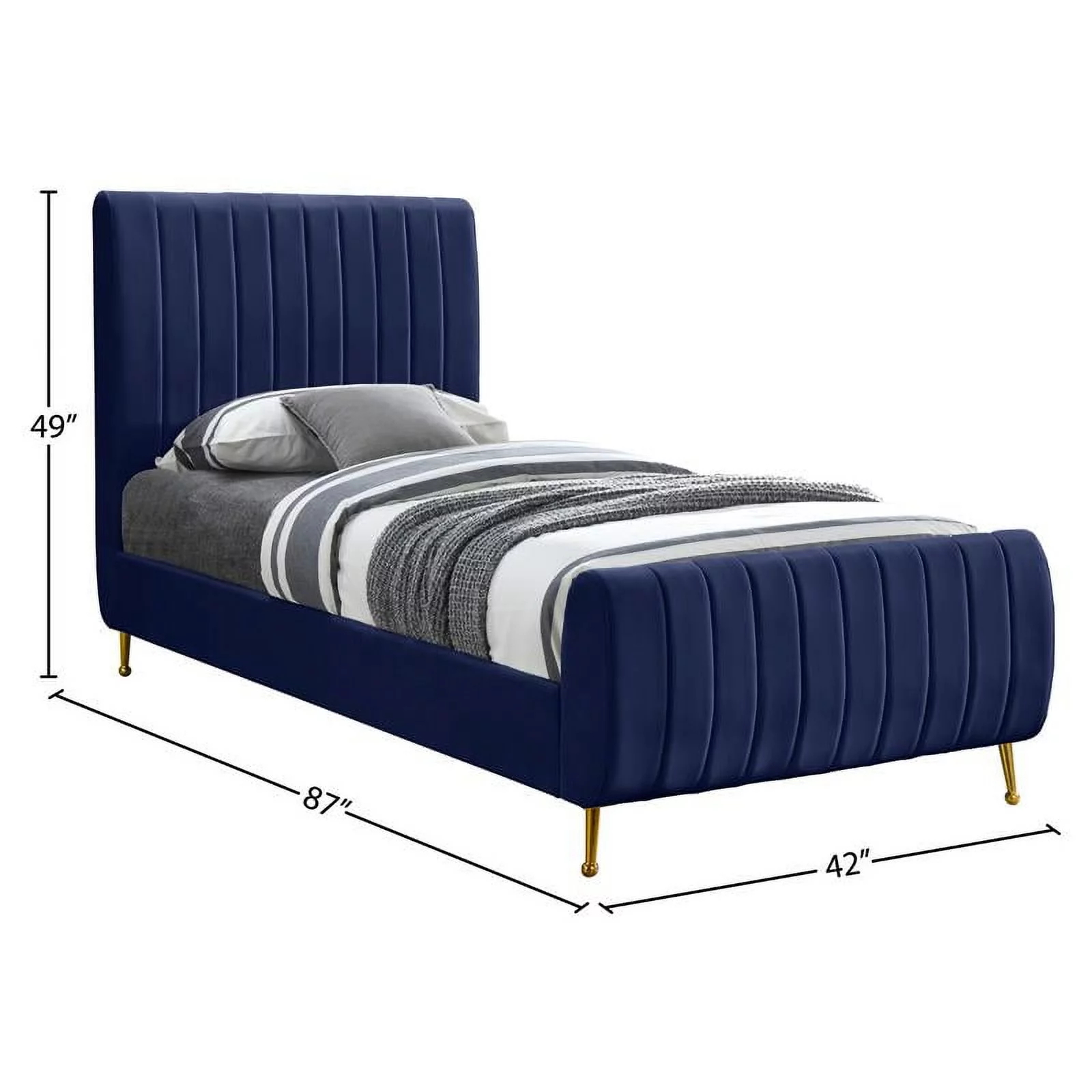 Bowery Hill Modern Velvet Fabric Upholstered Twin-Size Panel Bed in Navy Blue