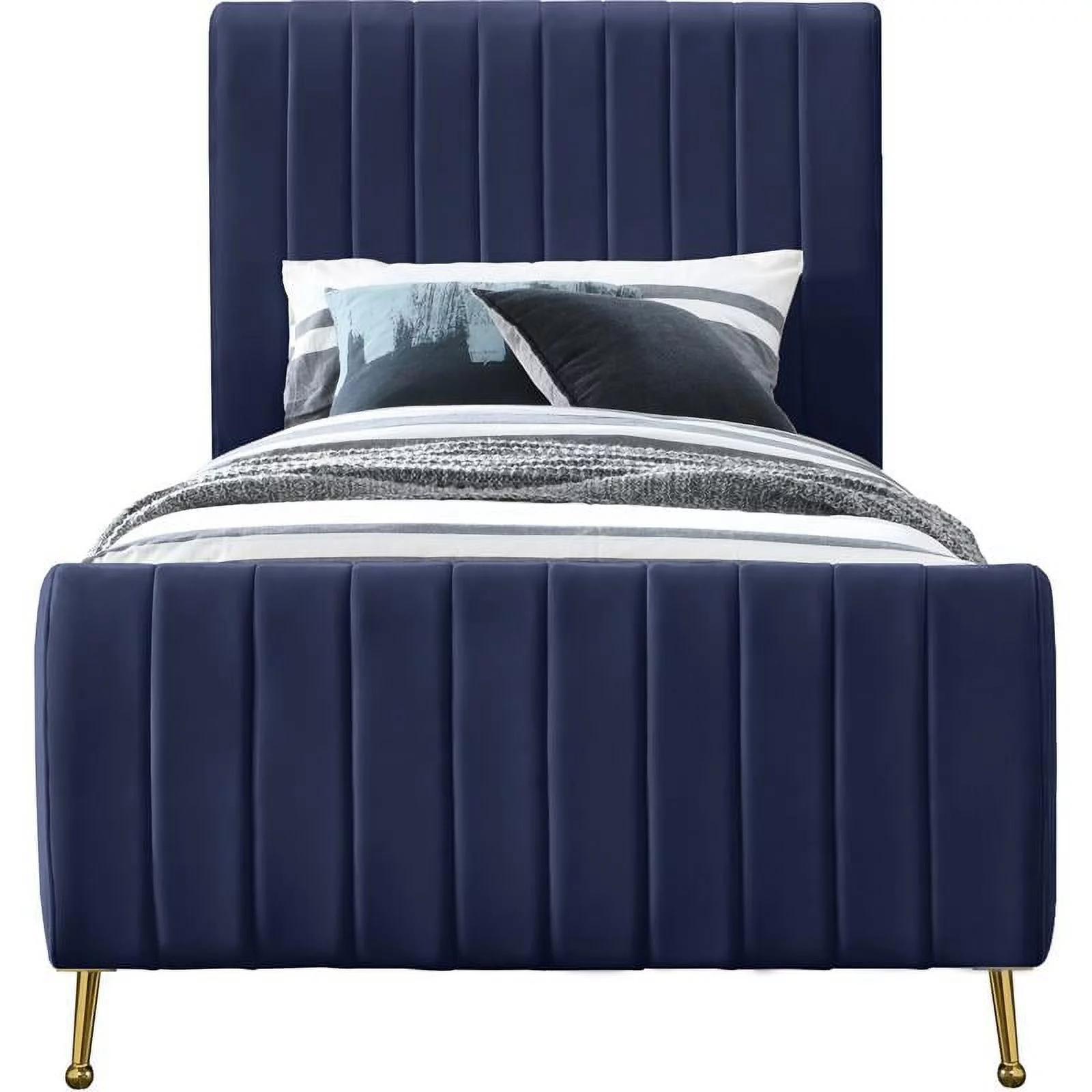 Bowery Hill Modern Velvet Fabric Upholstered Twin Size Panel Bed in Navy