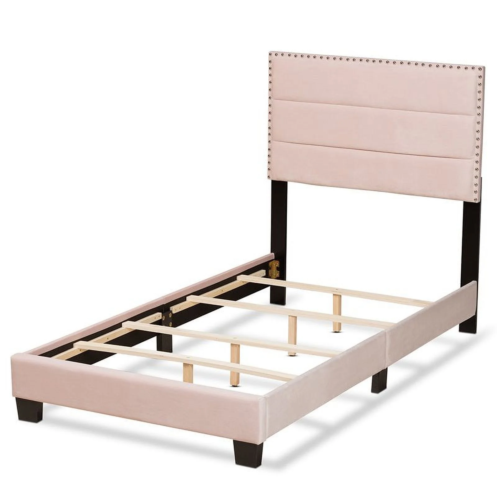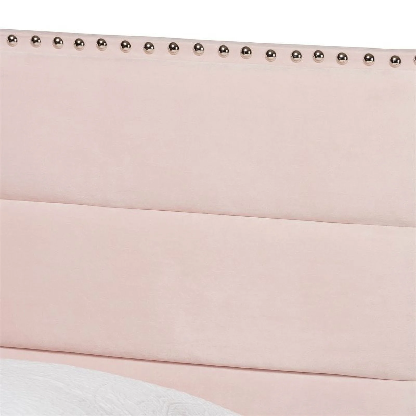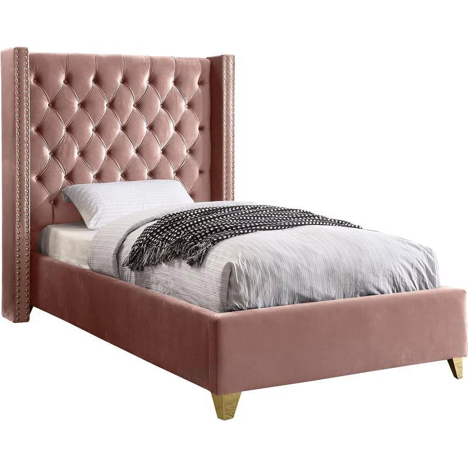 Bowery Hill Modern Velvet Fabric Upholstered Twin Size Panel Bed in Light Pink