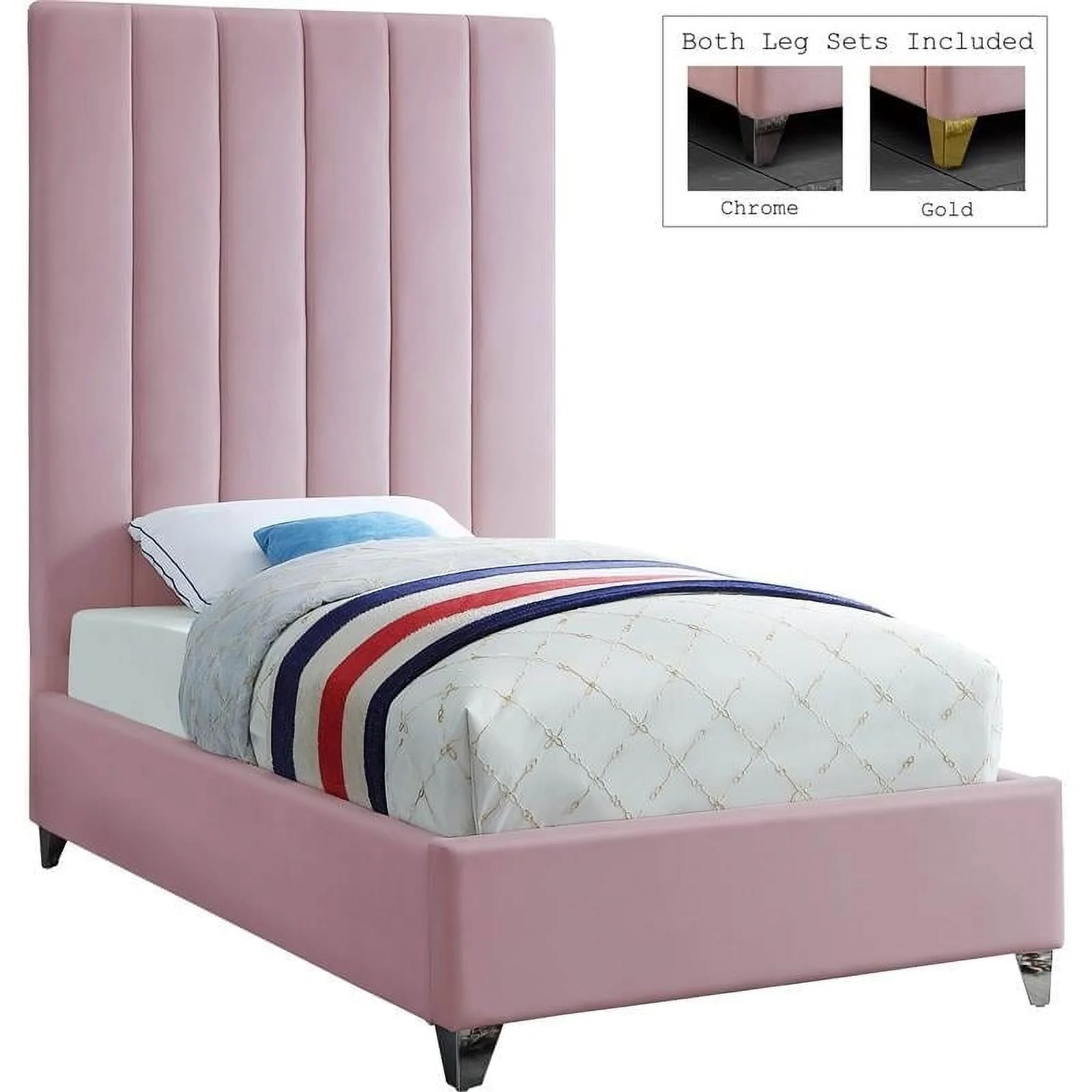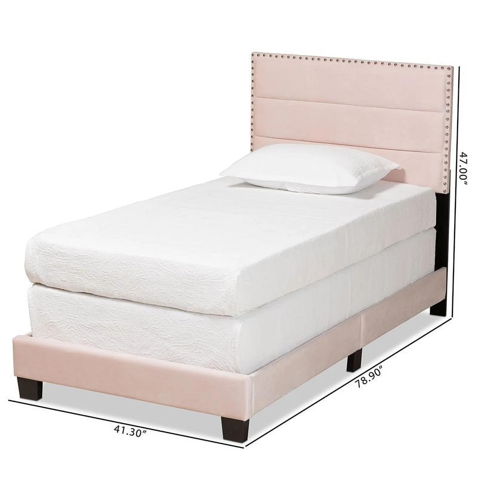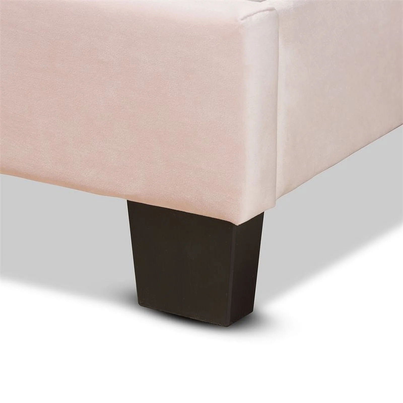 Bowery Hill Modern Velvet Fabric Upholstered Twin Size Panel Bed in Light Pink