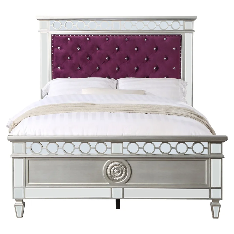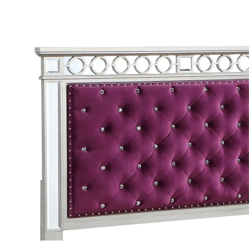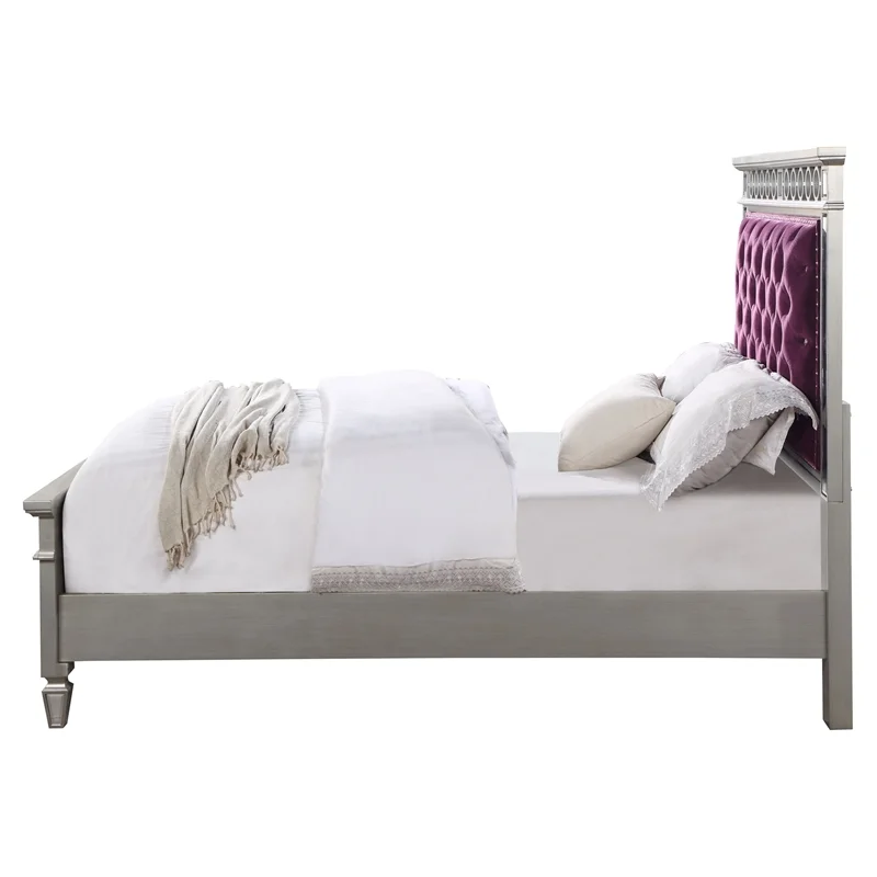 ACME Varian Tufted Velvet Upholstery Twin Bed in Burgundy and Silver