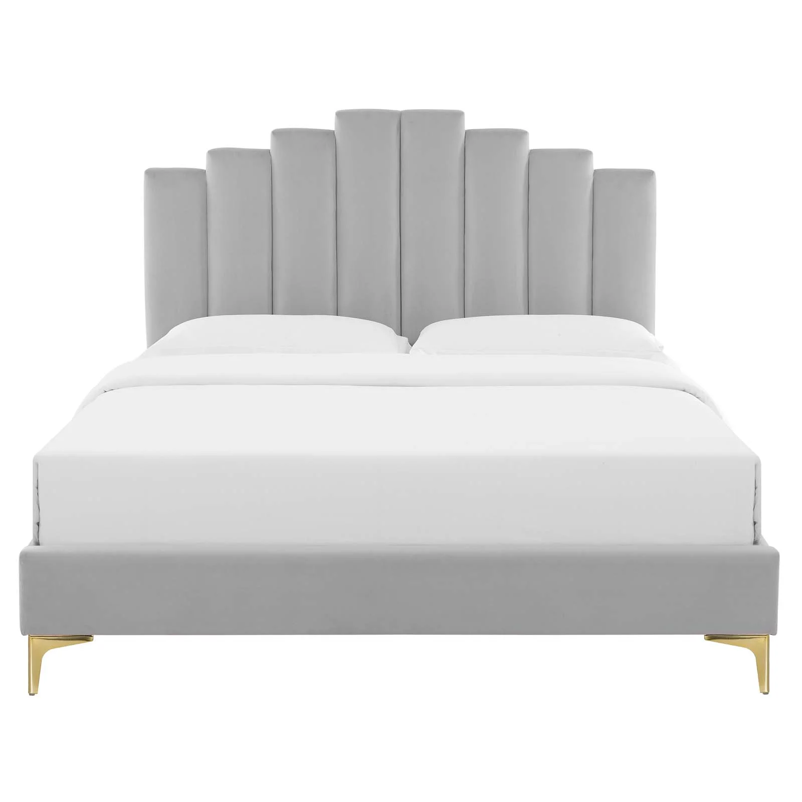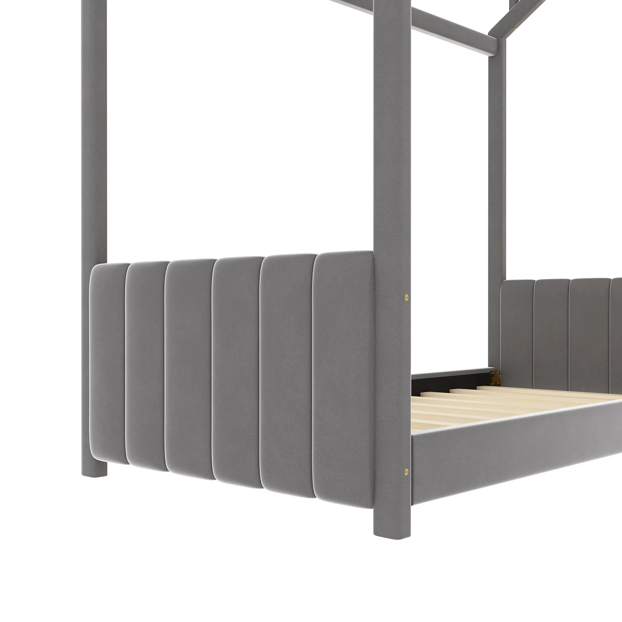 Bowery Hill Modern Velvet Fabric Upholstered Twin-Size Panel Bed in Gray