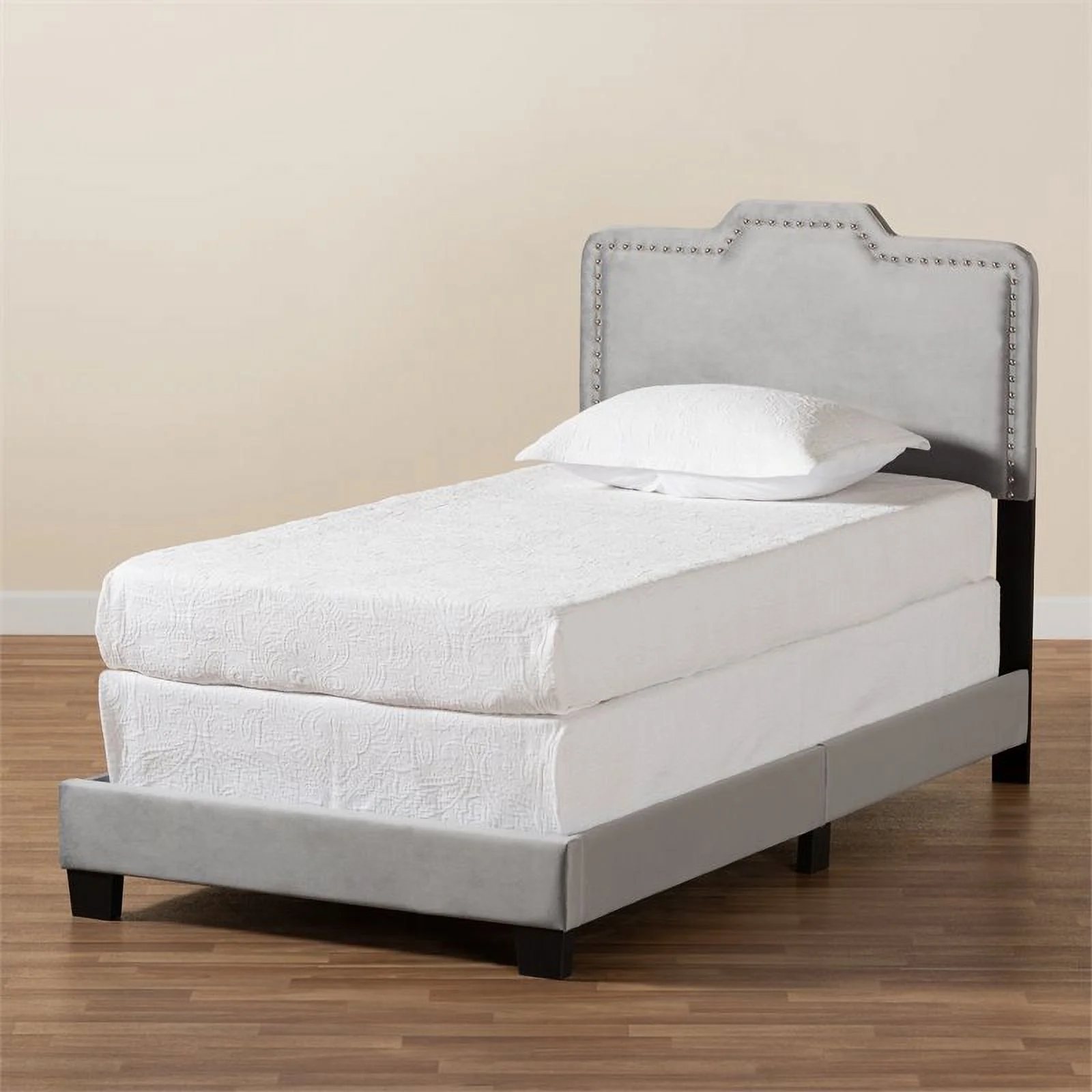 Baxton Studio Tamira Contemporary/Modern Velvet Tufted Panel Bed, Twin, Grey/Black