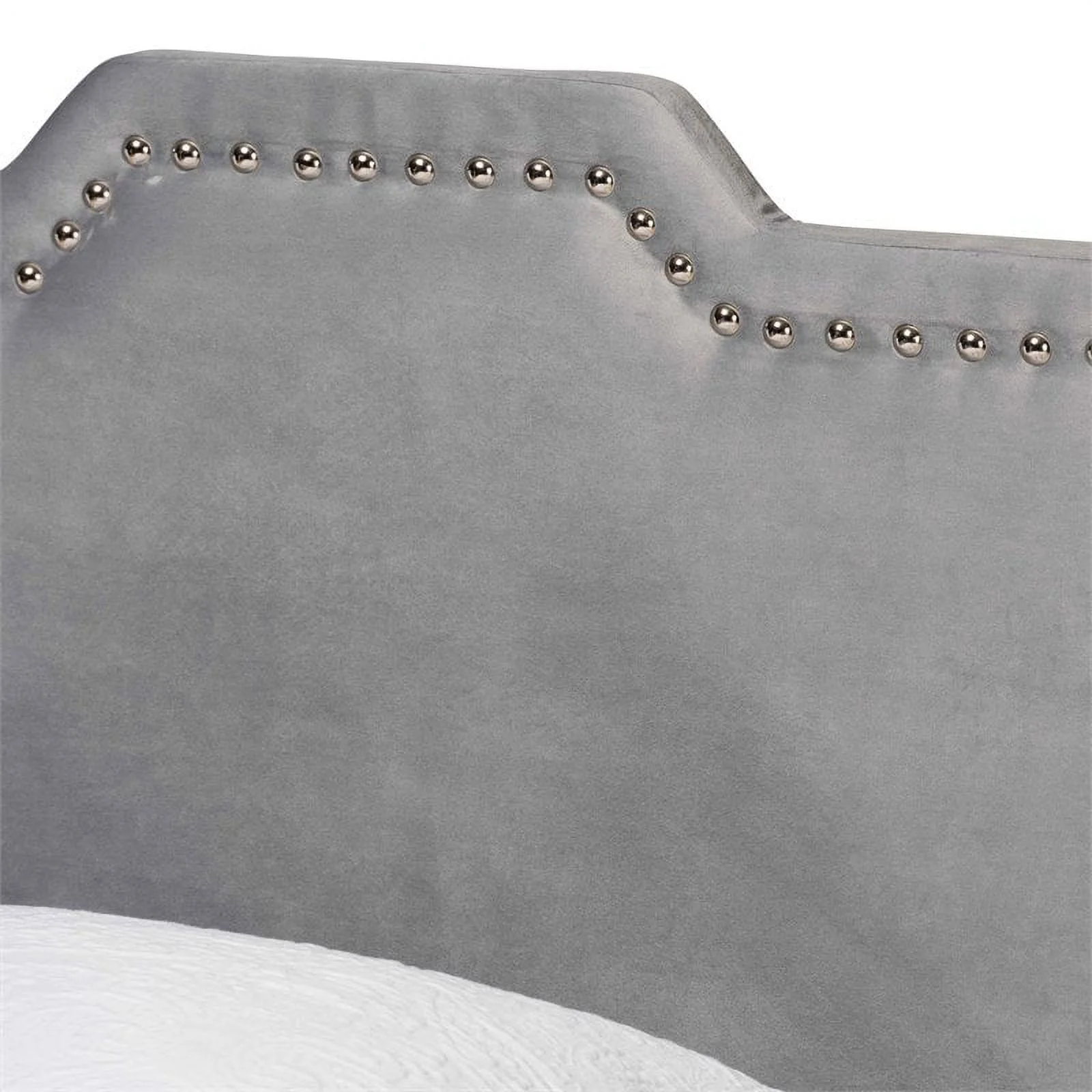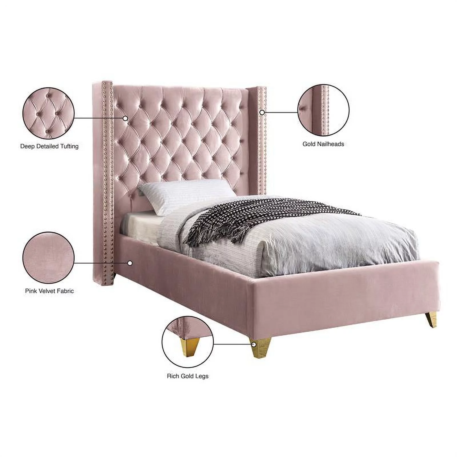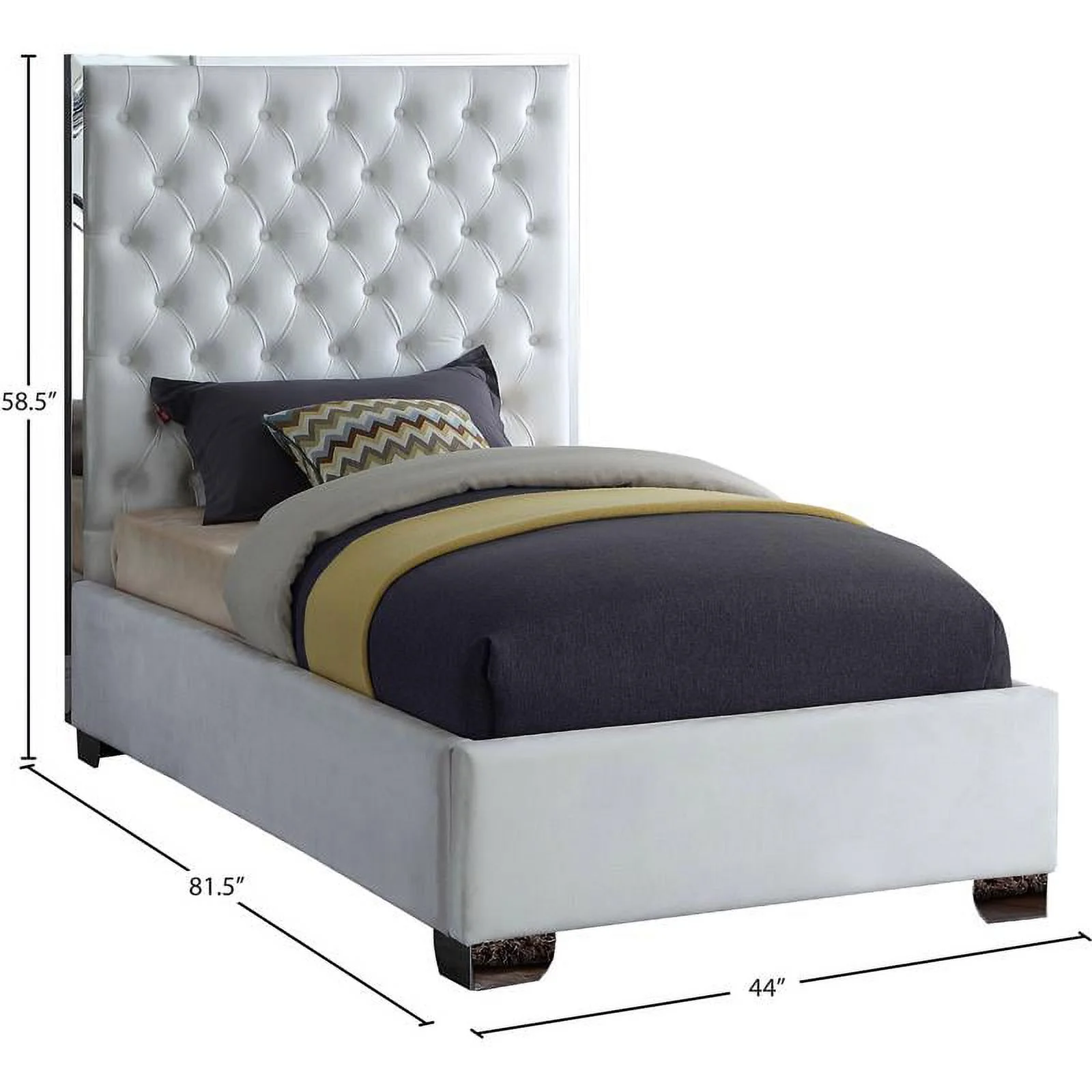 Maklaine 58.5''H x 44''W x 81.5''D Solid Wood and Velvet Twin Bed in White