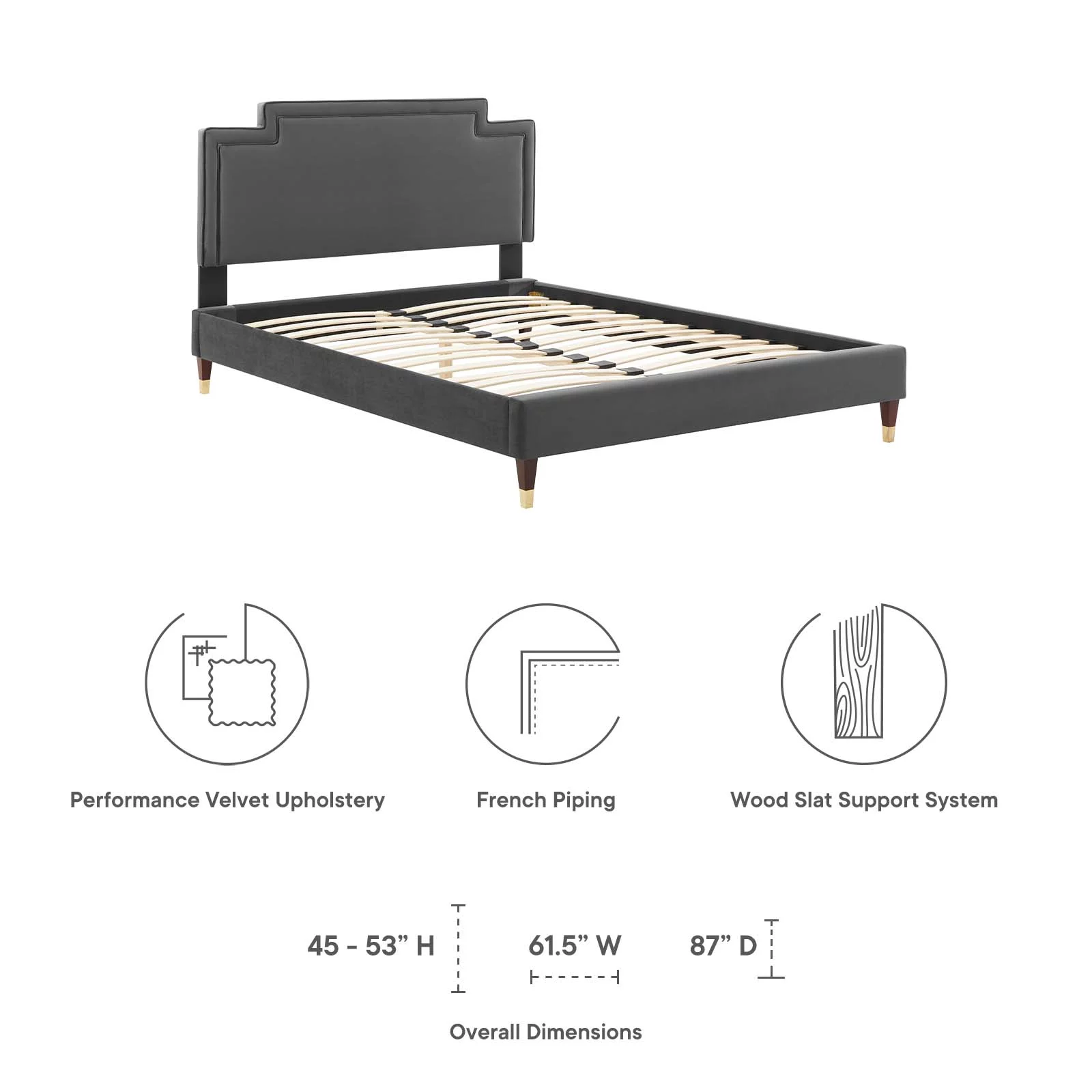 Platform Bed Frame, Twin Size, Grey Gray, Velvet, Modern Contemporary, Bedroom Master Guest Suite Room