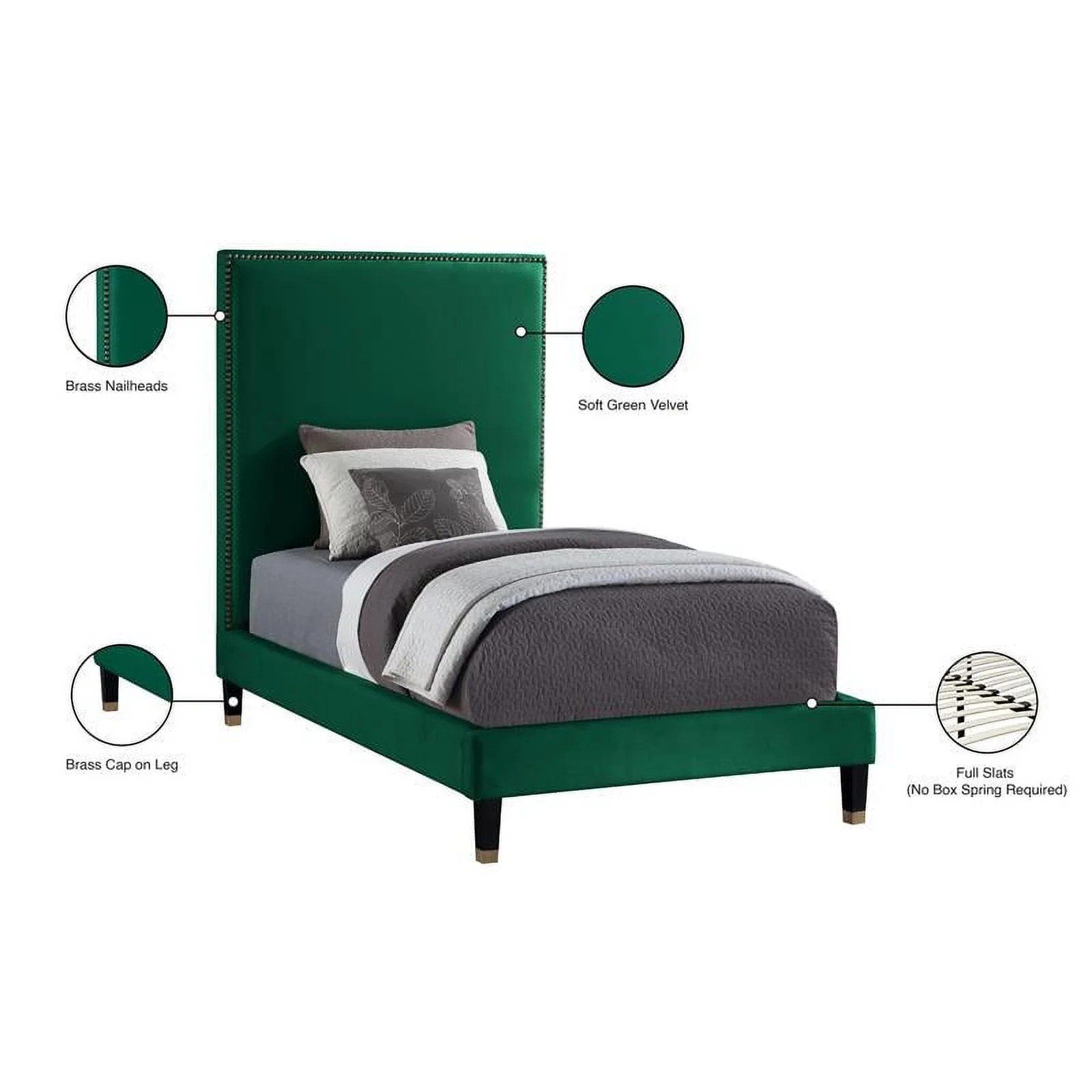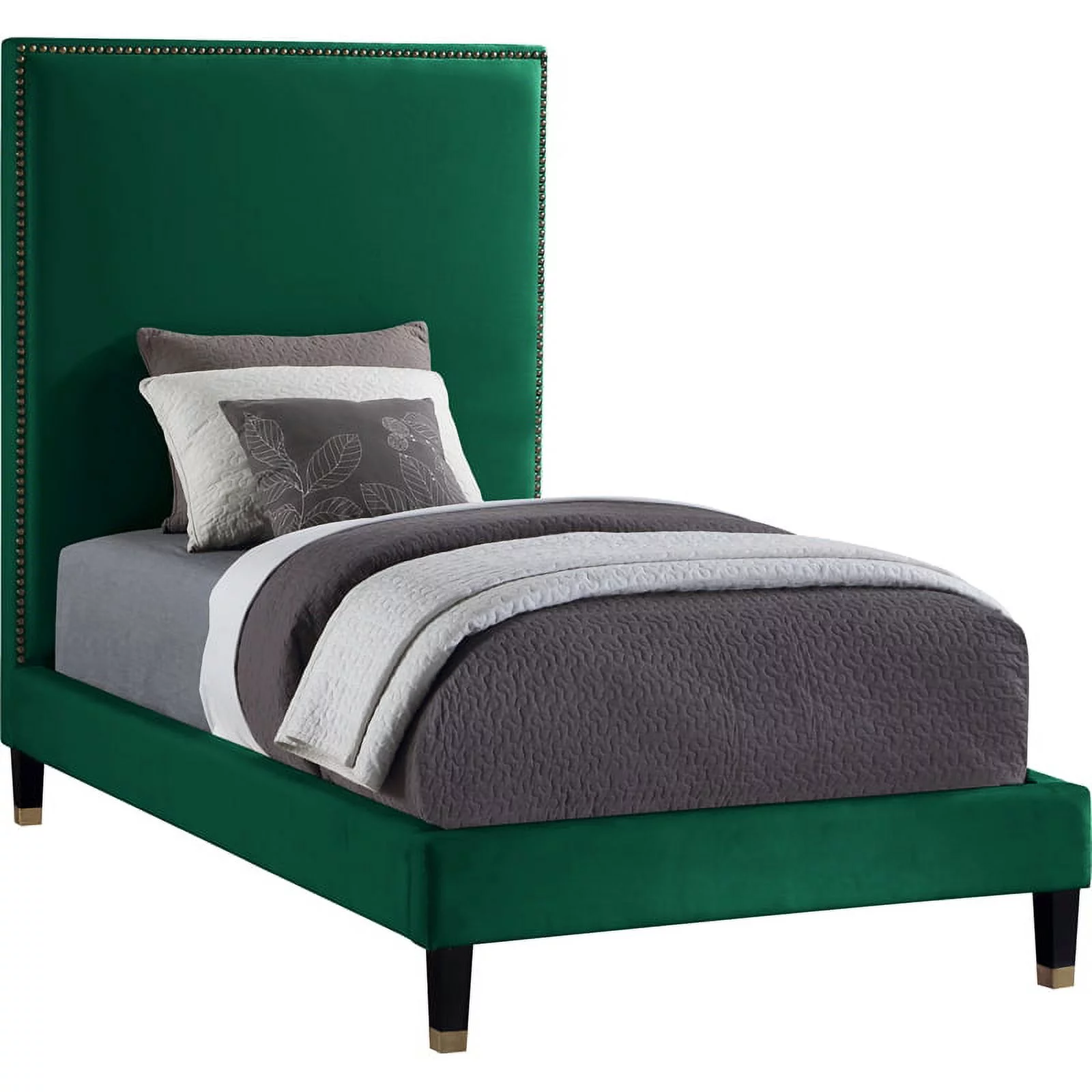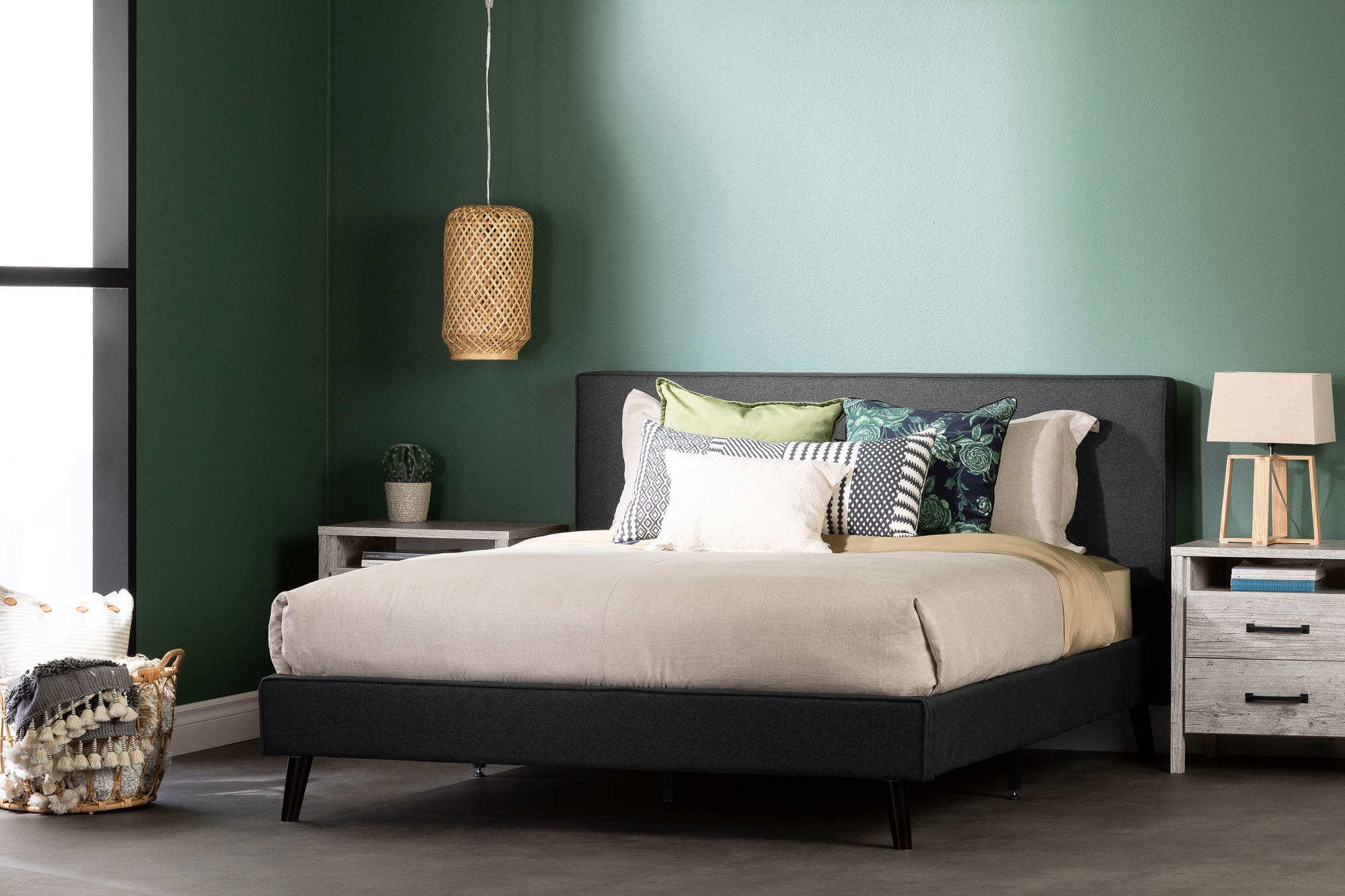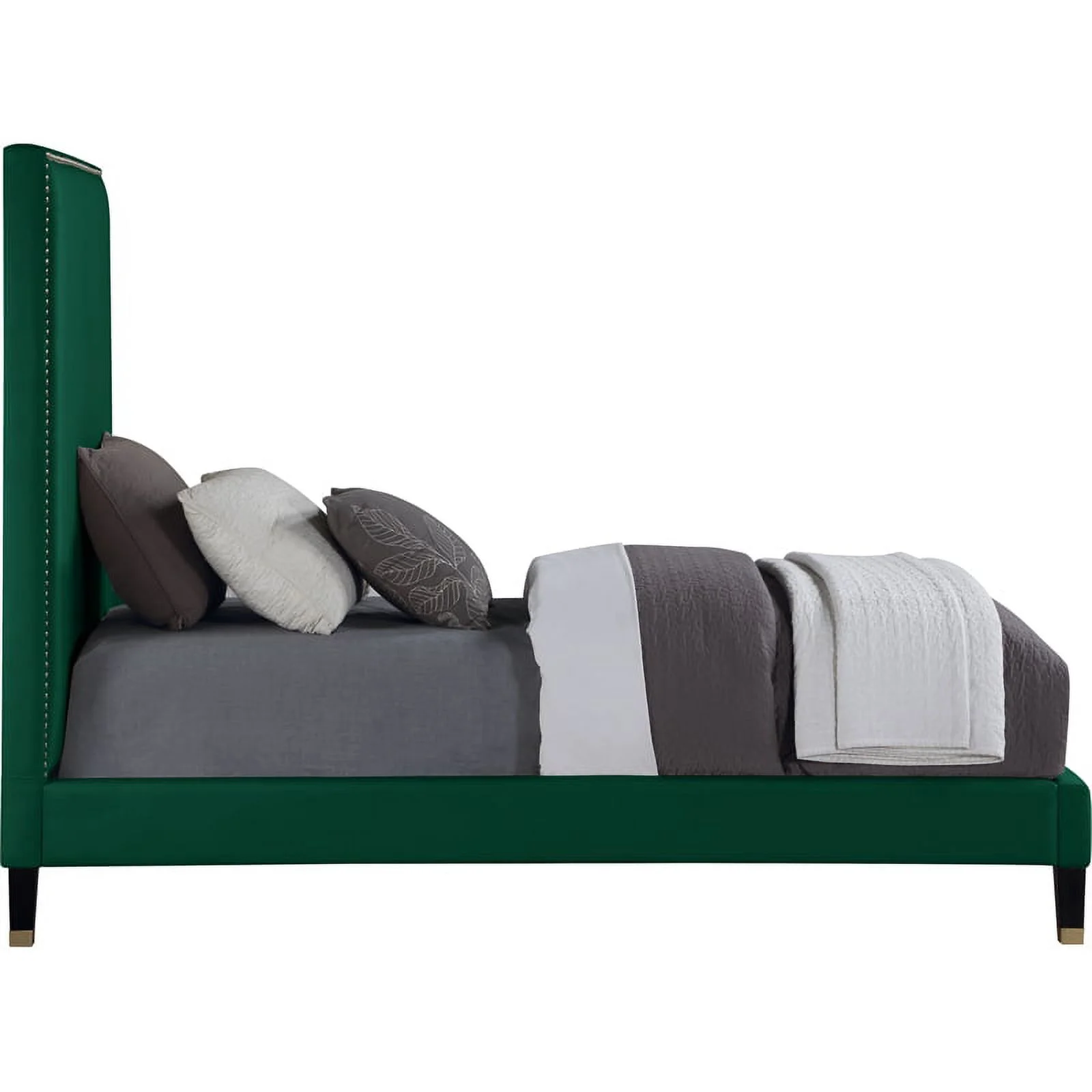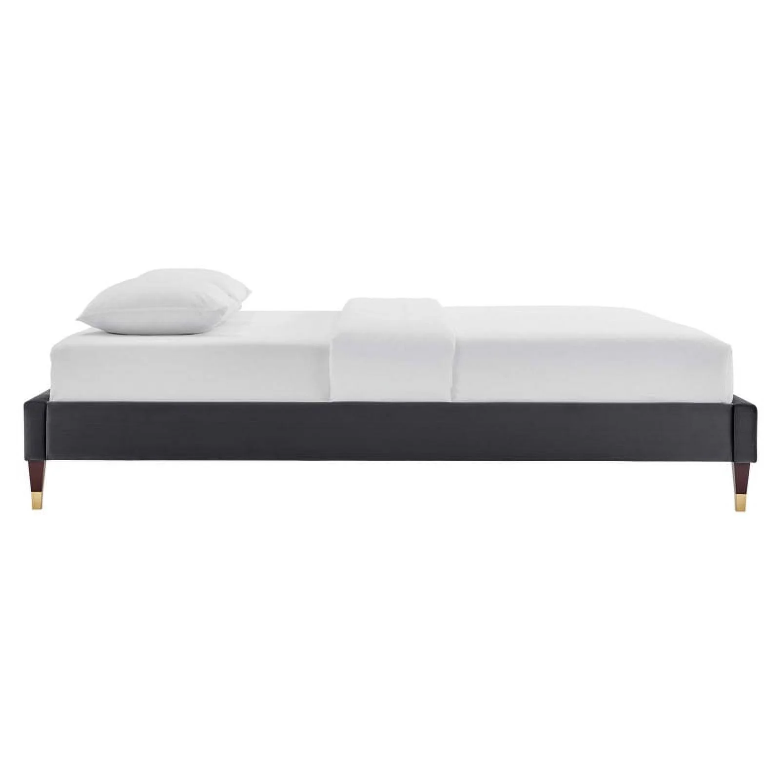 Pemberly Row Modern Performance Velvet Queen Platform Bed Frame in Charcoal