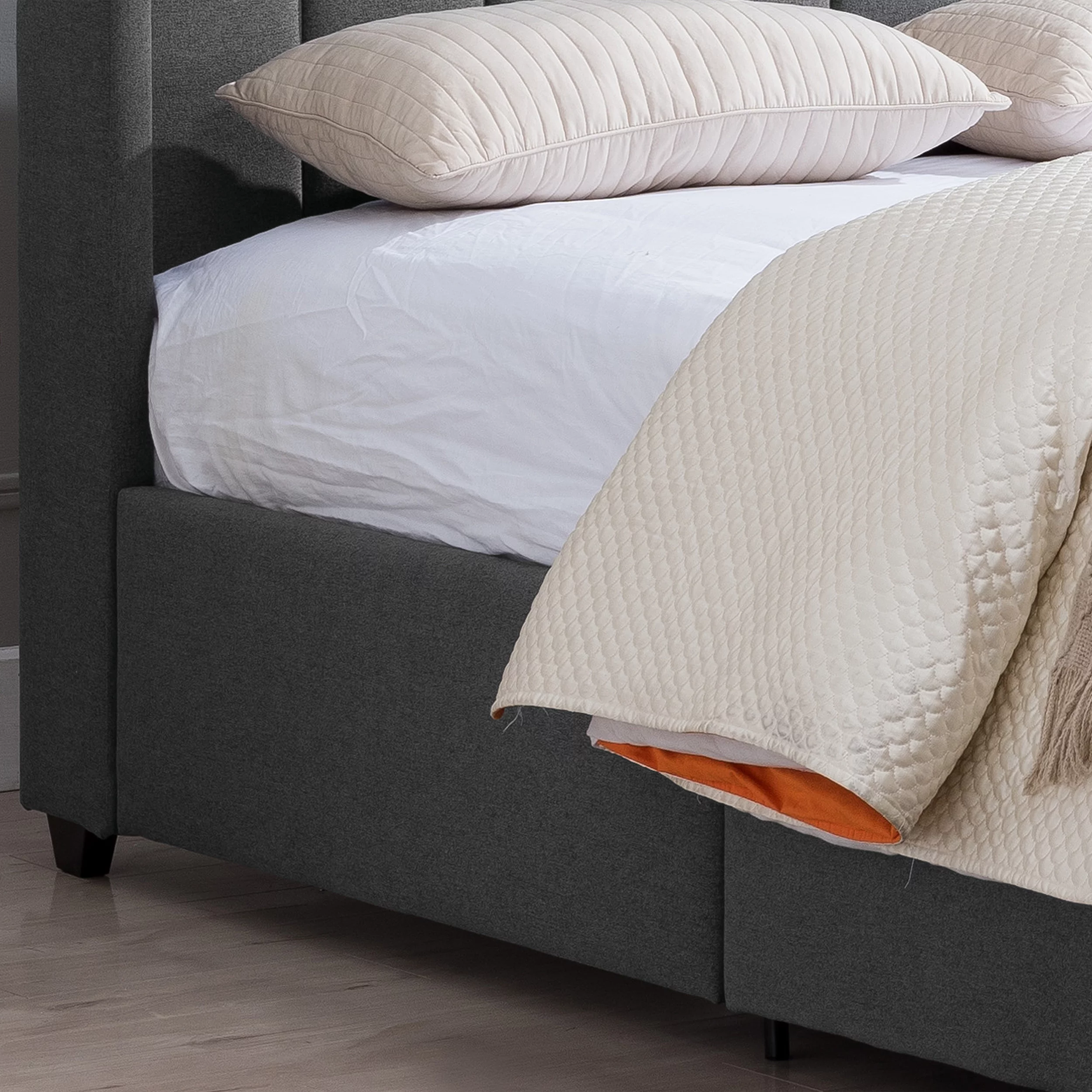 Charcoal Burlap Fabric Tufted Headboard Storage Footboard Full Size Bed 1pc Bedroom Furniture Particle Board