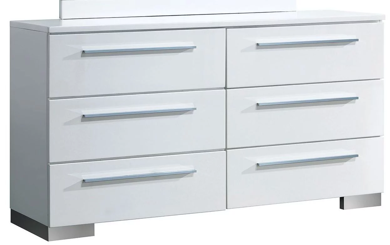 White Glossy Contemporary Queen Size Bed Dresser Mirror Nightstand Lacquer Coating Bedroom Furniture 4p Set