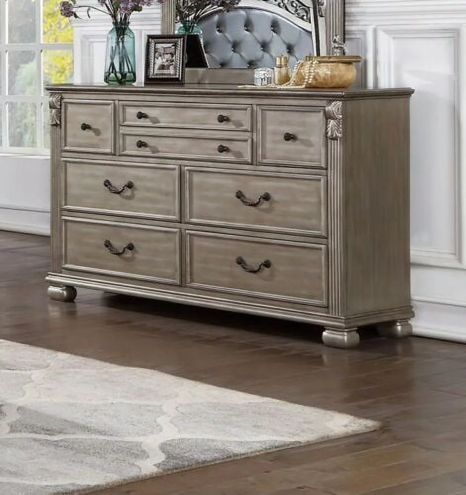 2 Piece Wooden Bedroom Set with Queen Panel Bed and 9 Drawer Dresser