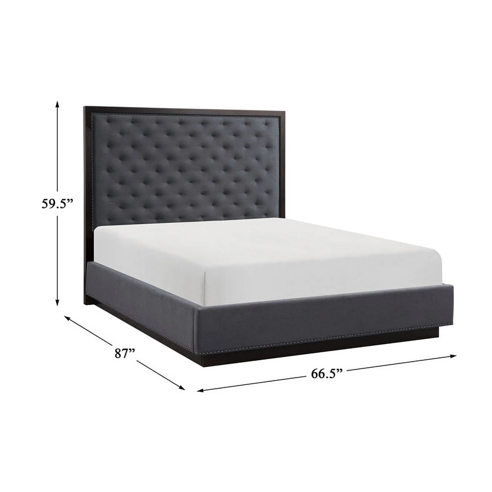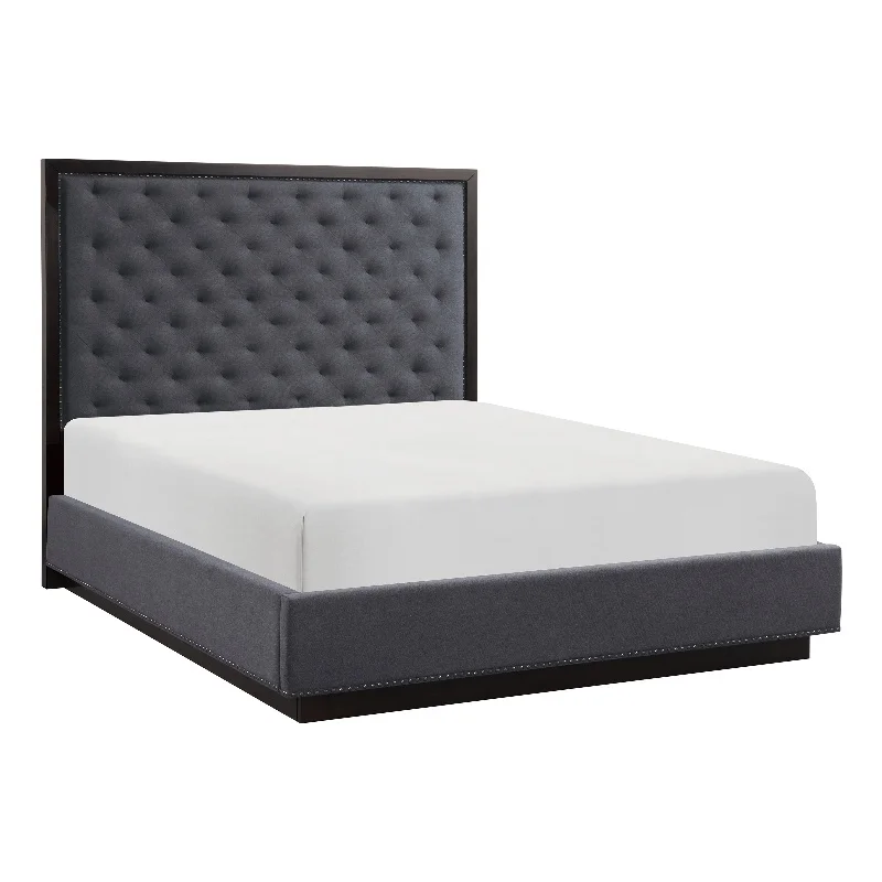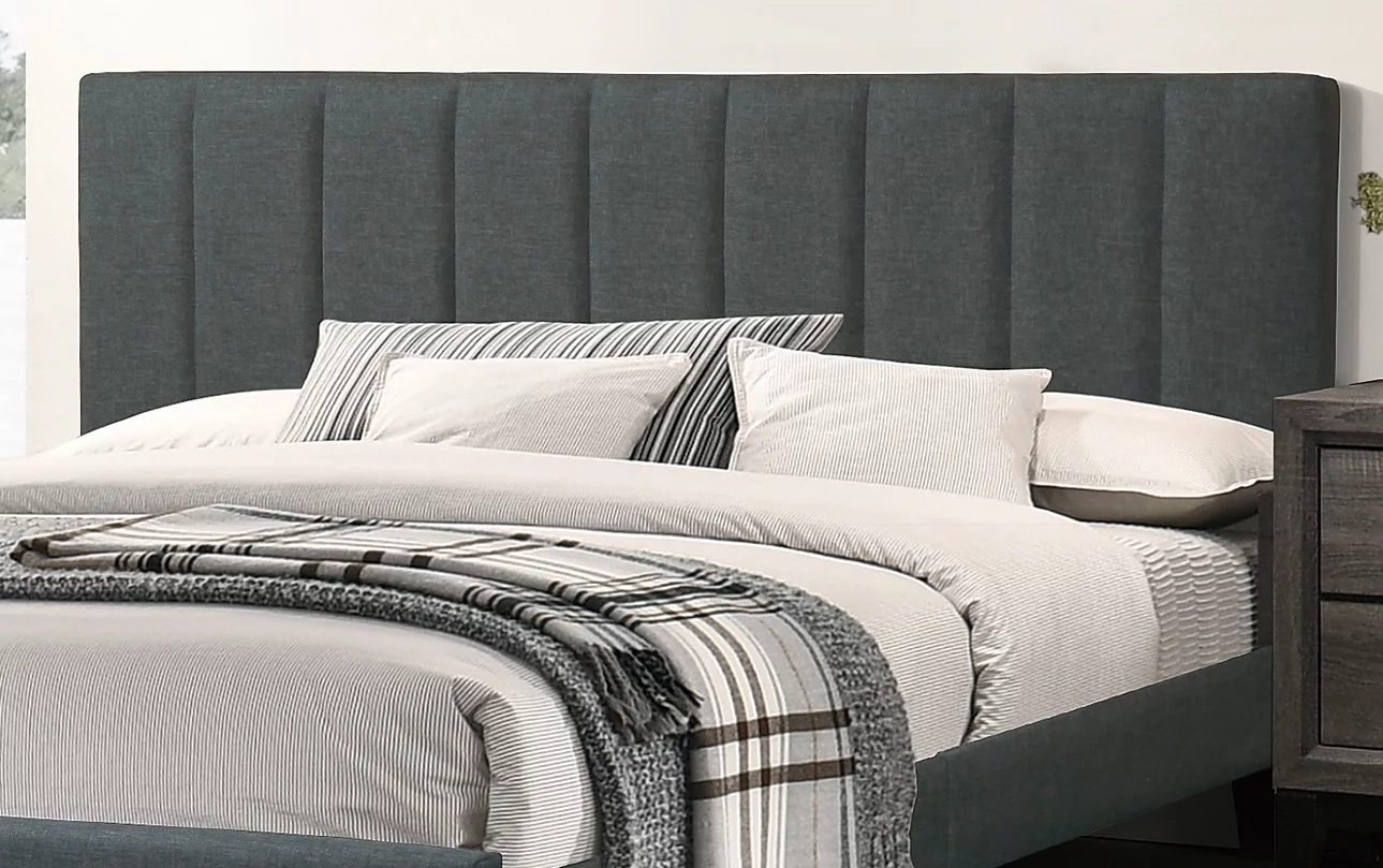 Simple Unique QUEEN SIZE BED Solid wood Bedframe Slats Charcoal Polyfiber Headboard w vertical Tufting Bedroom 1pc Bed