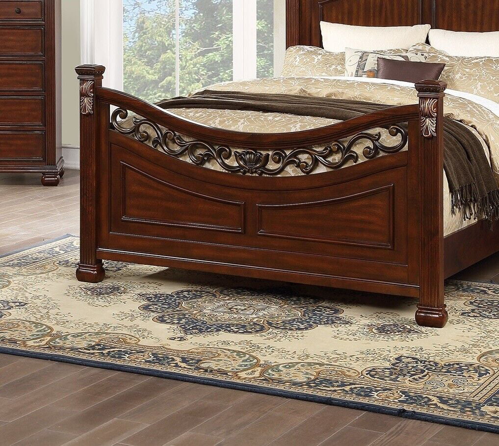 Formal Traditional Style Bedroom 4pc Cherry Finish Queen Bed Dresser Nightstand Mirror Set