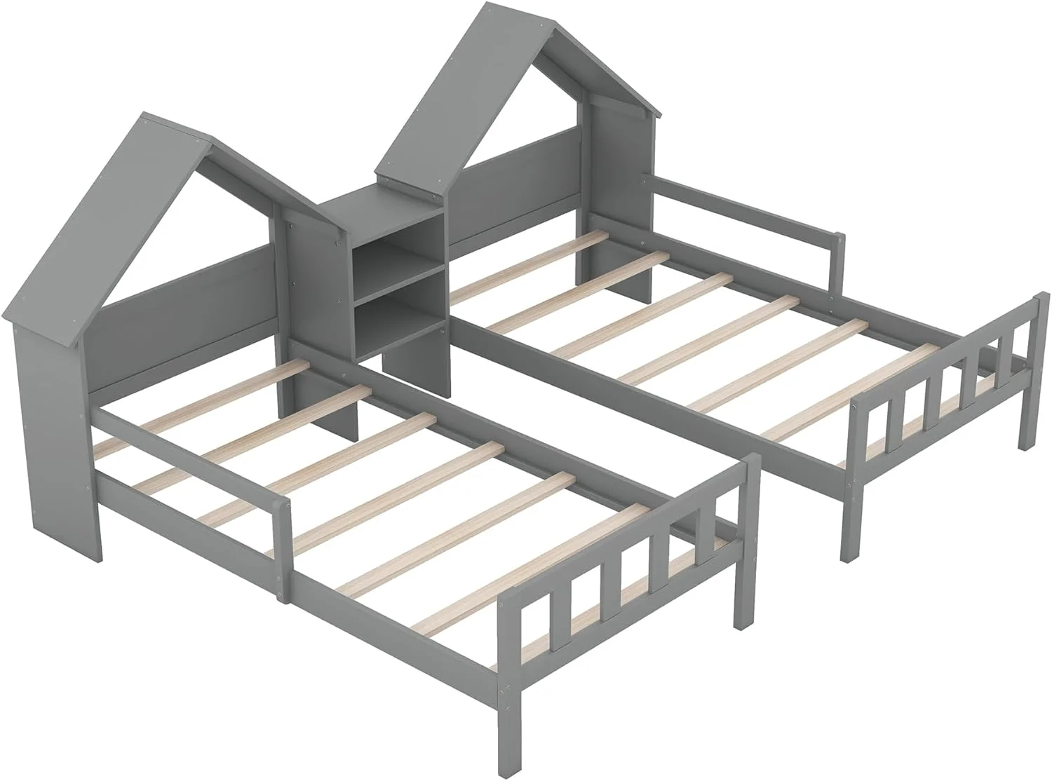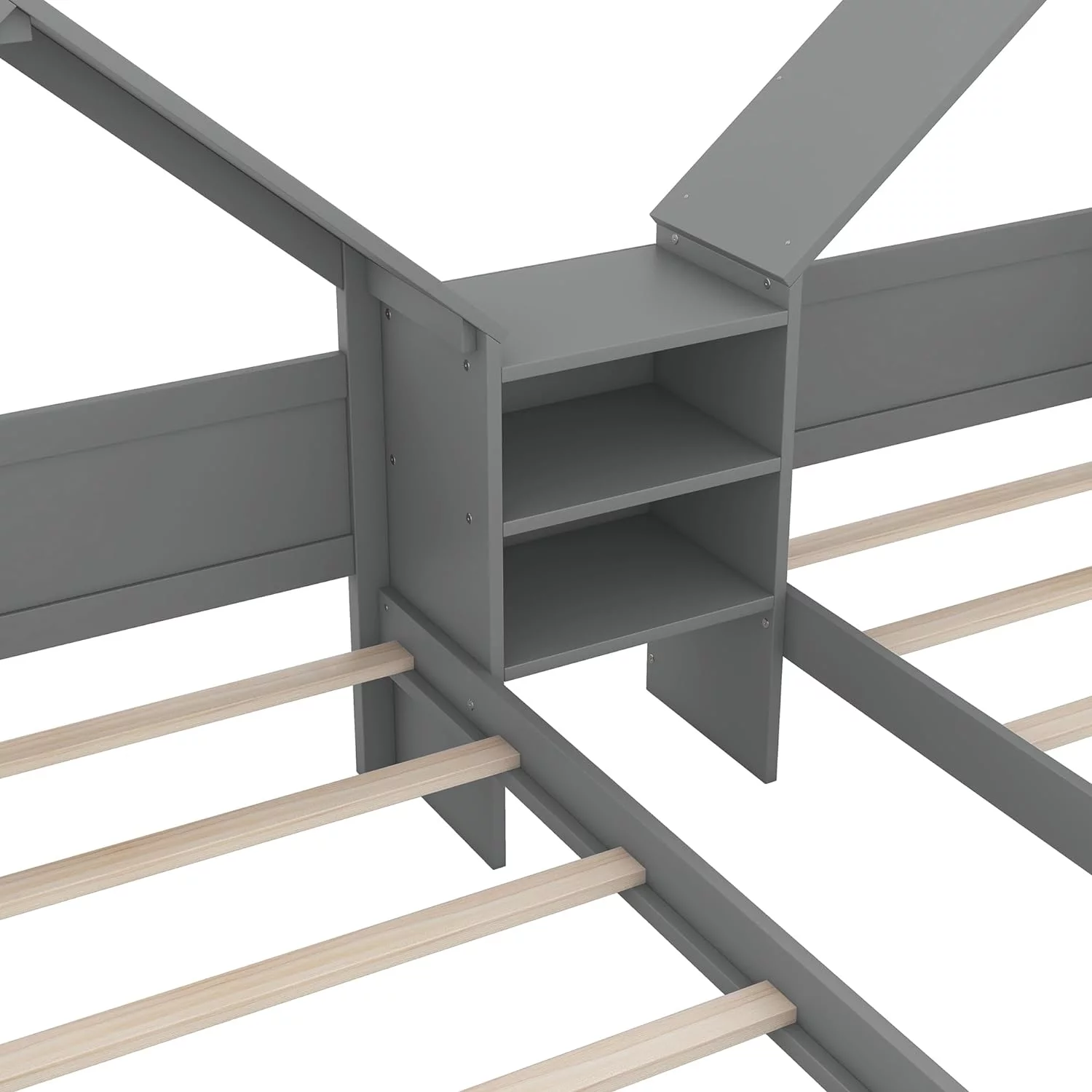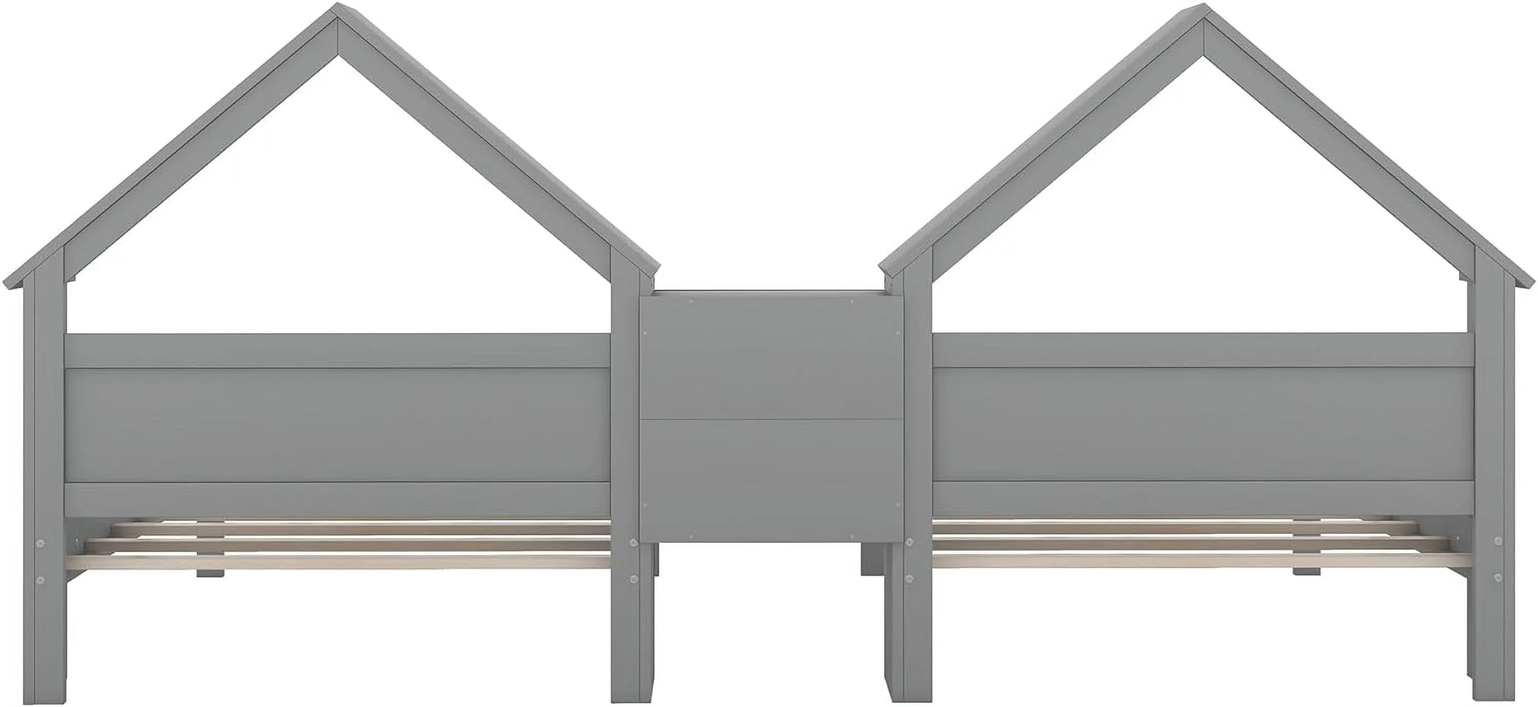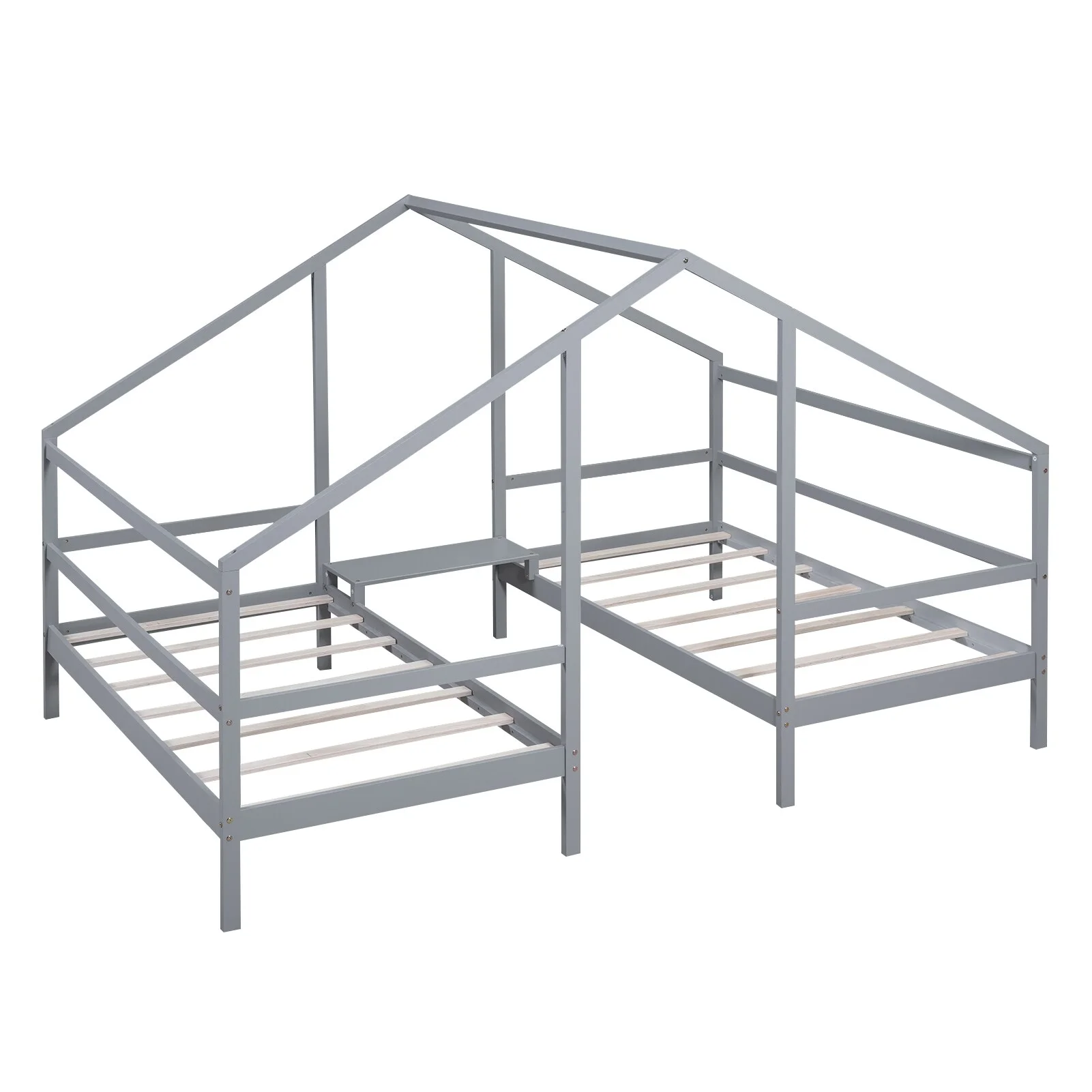 Nestfair Twin Size Double Triangular House Beds with Built-in Table Grey