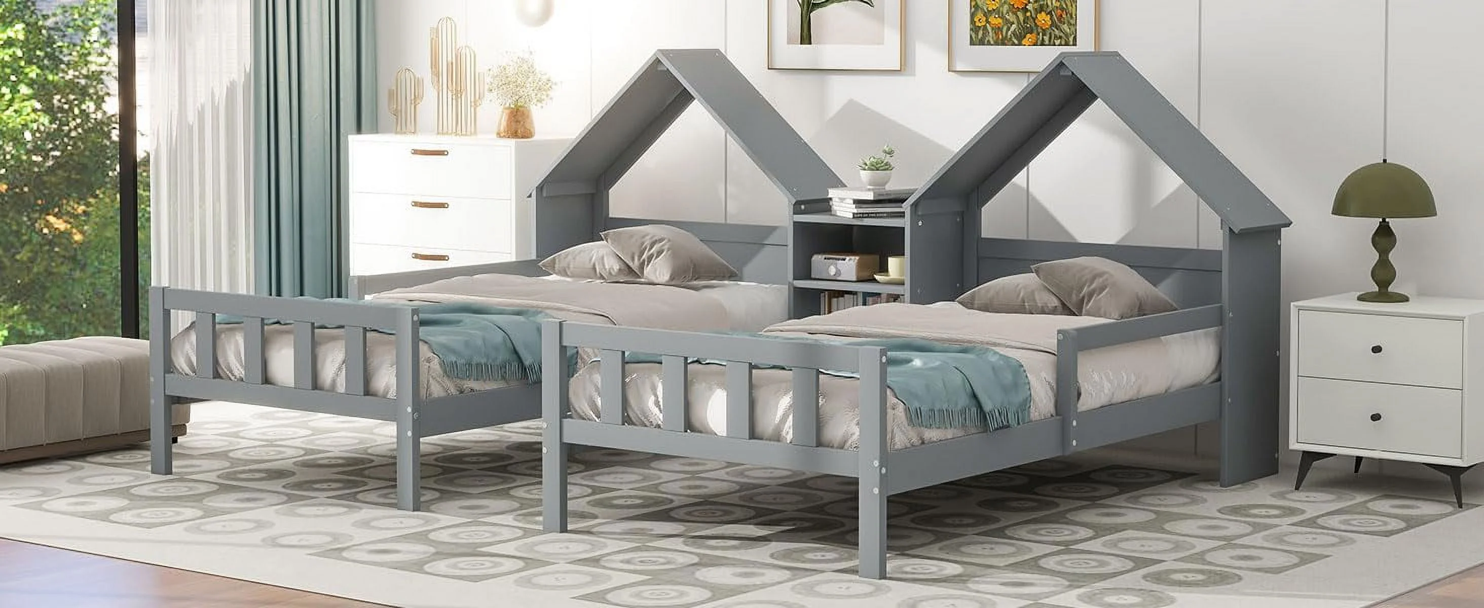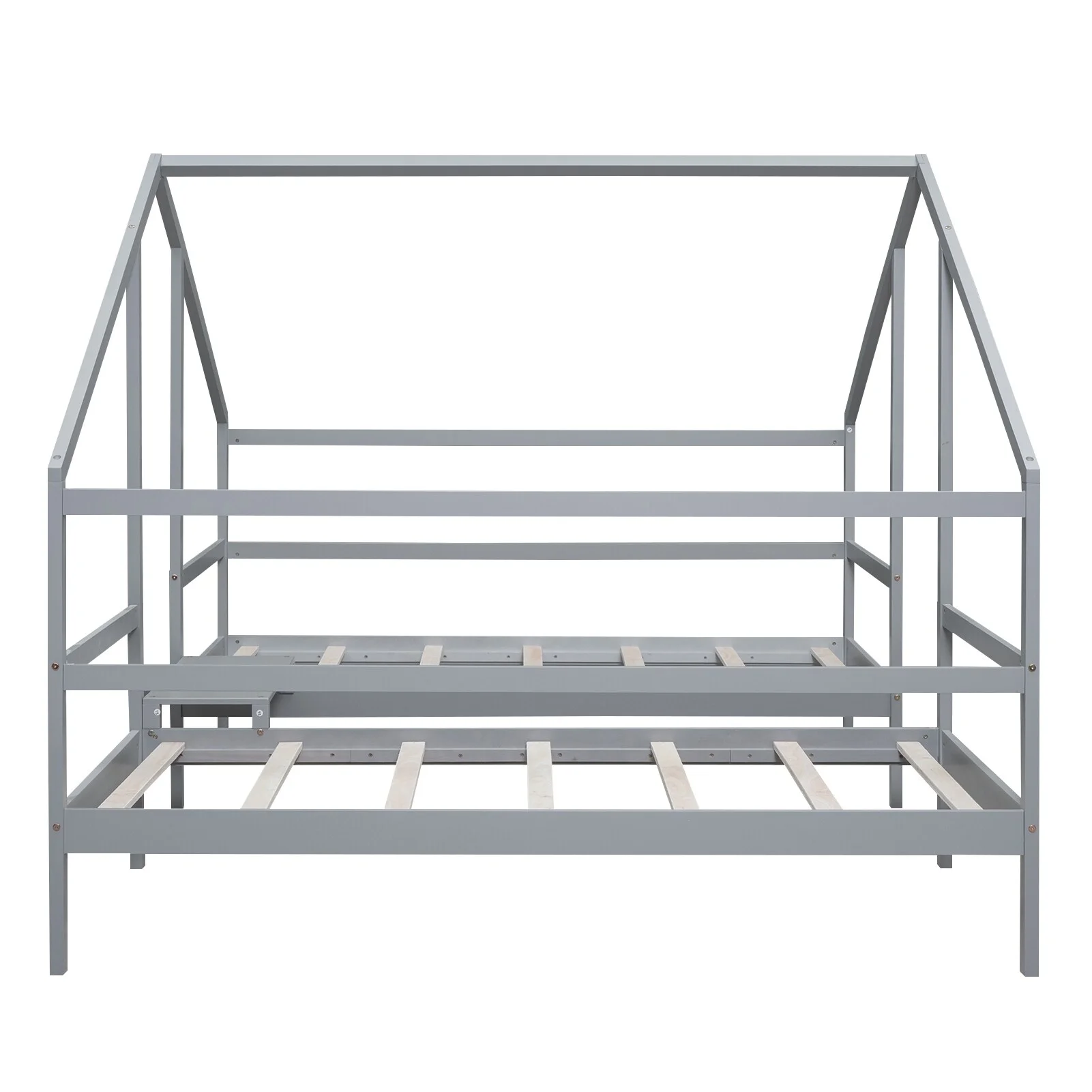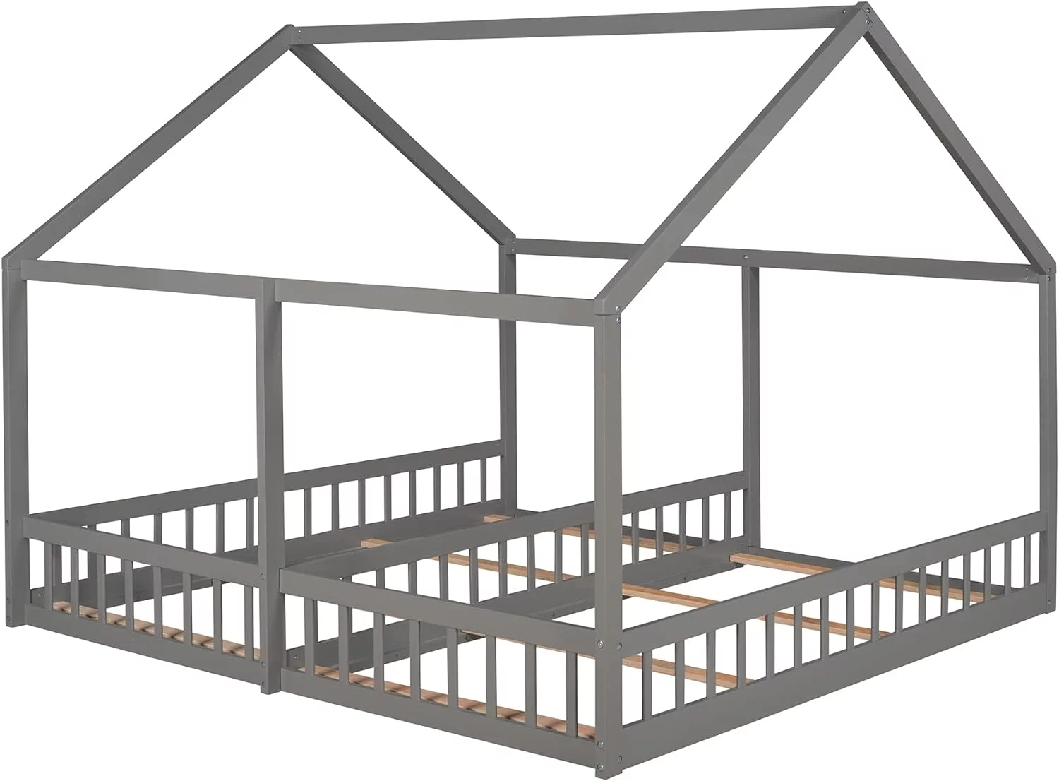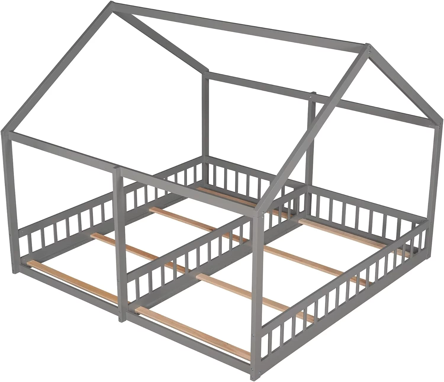 Nestfair Twin Size Double Triangular House Beds with Built-in Table Grey