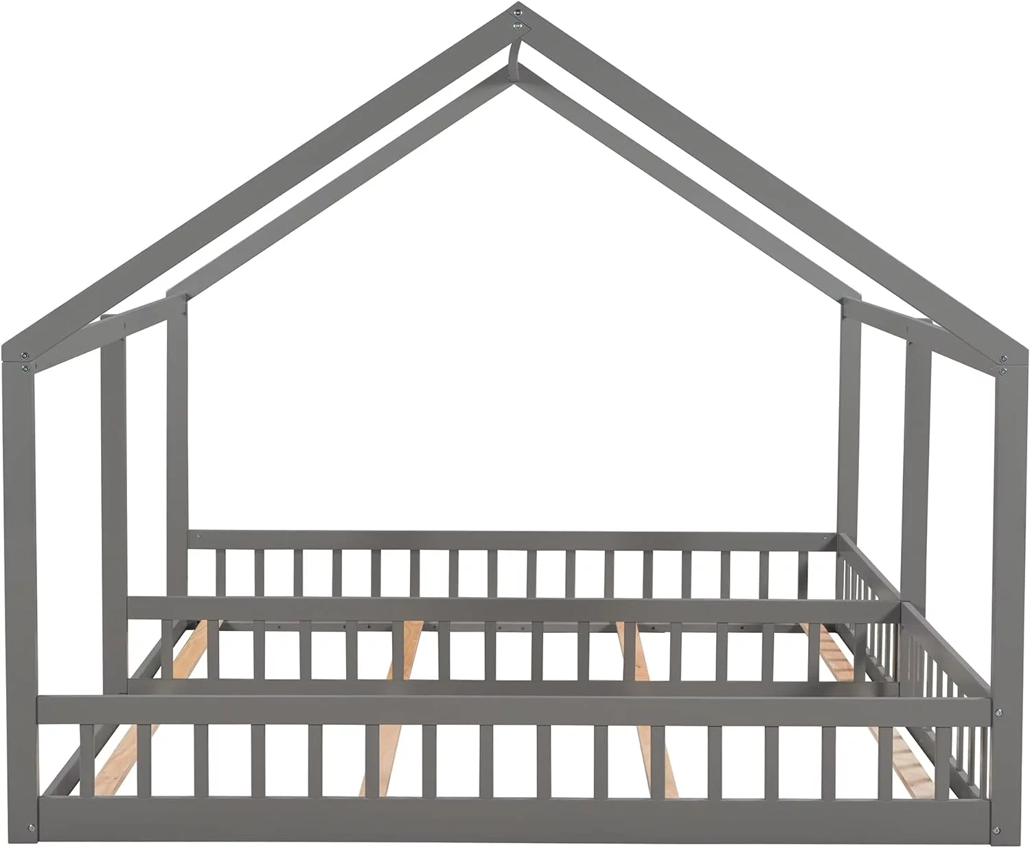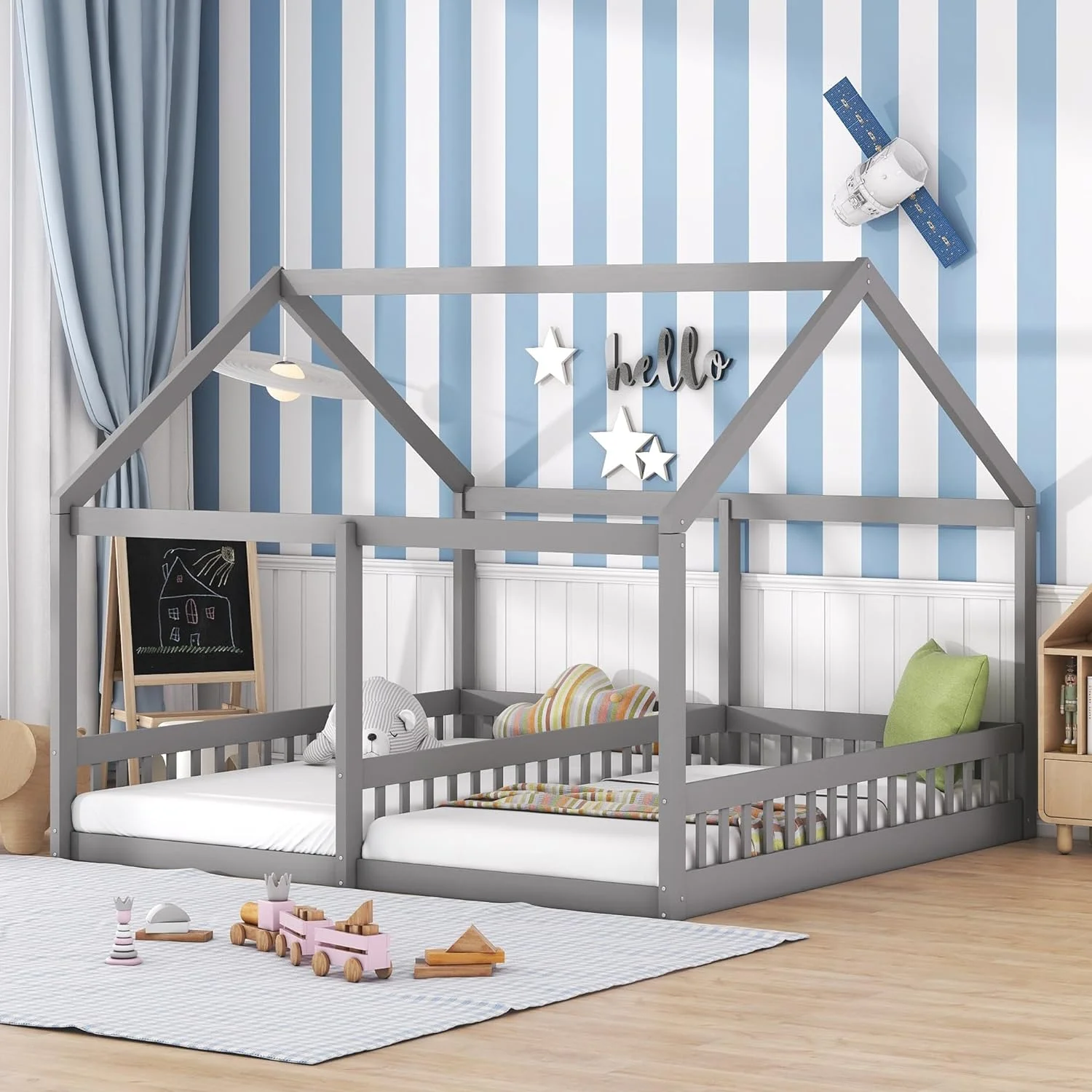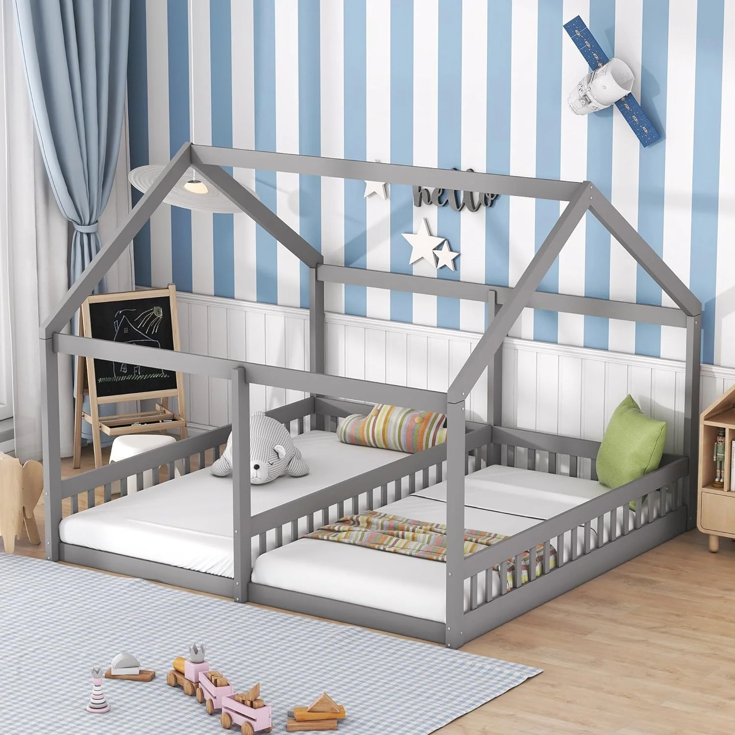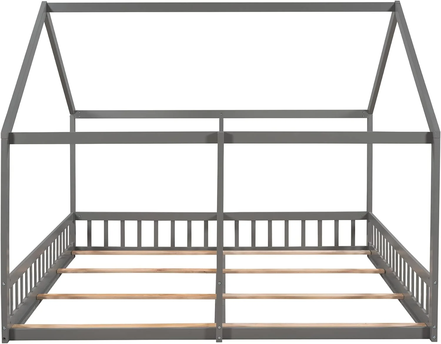 Nestfair Twin Size Double Triangular House Beds with Built-in Table Grey