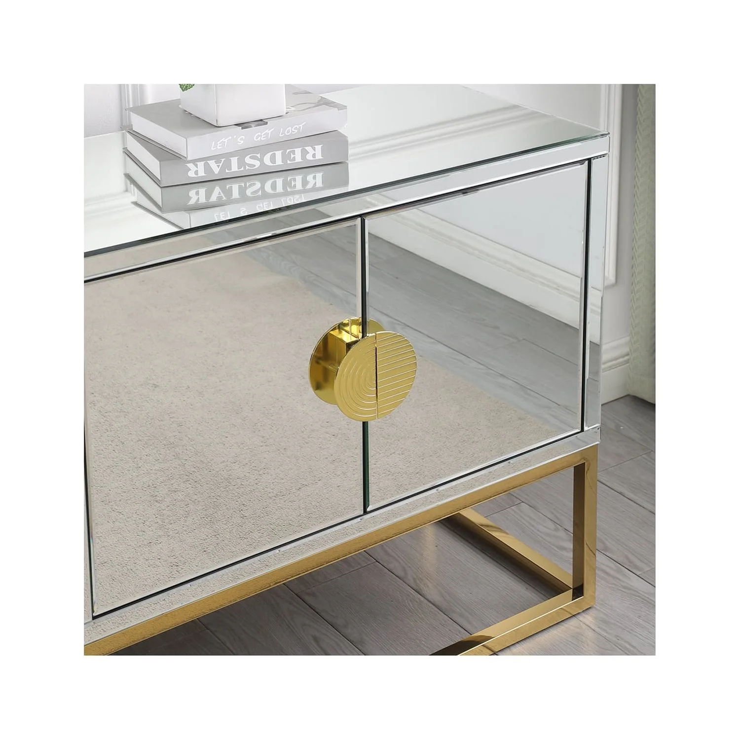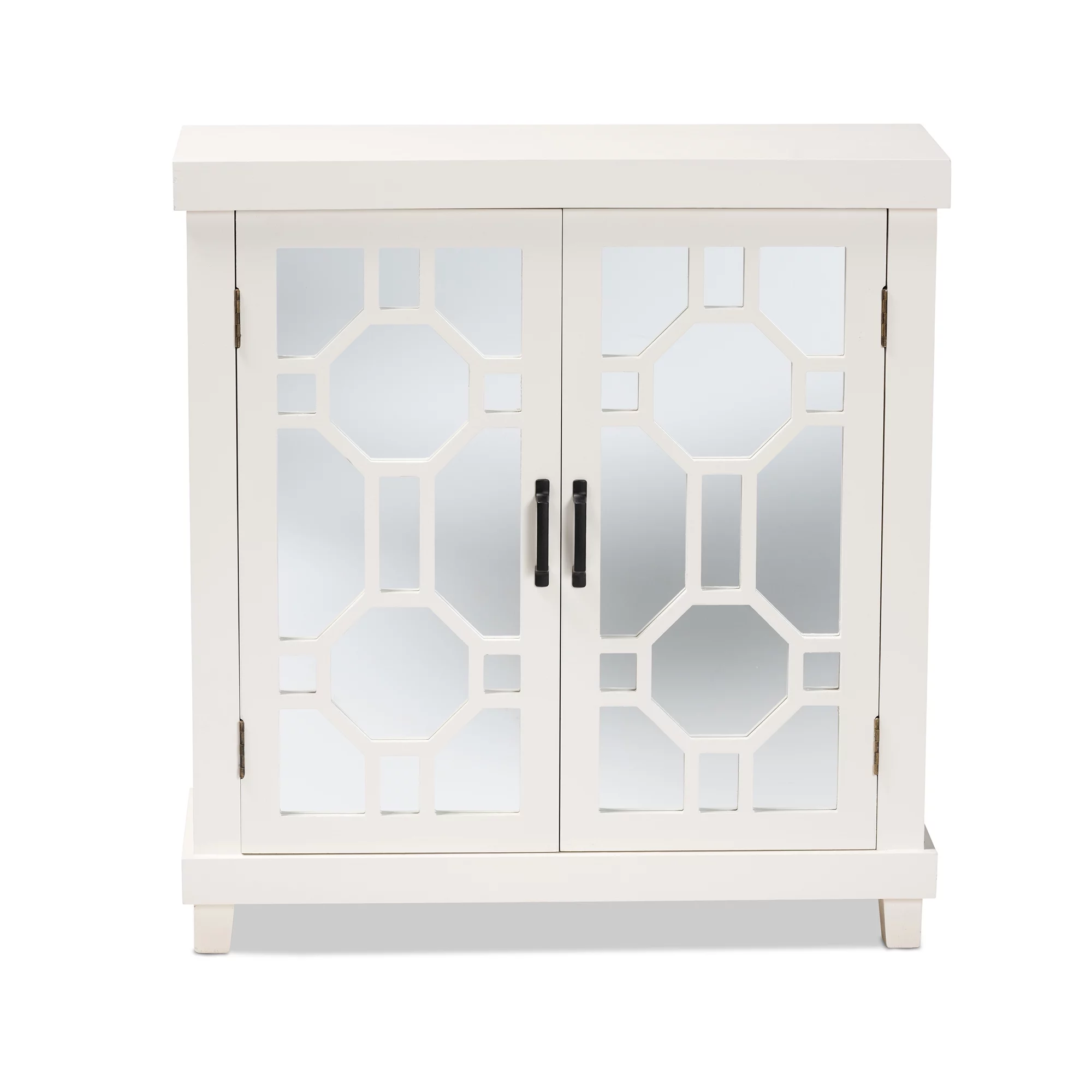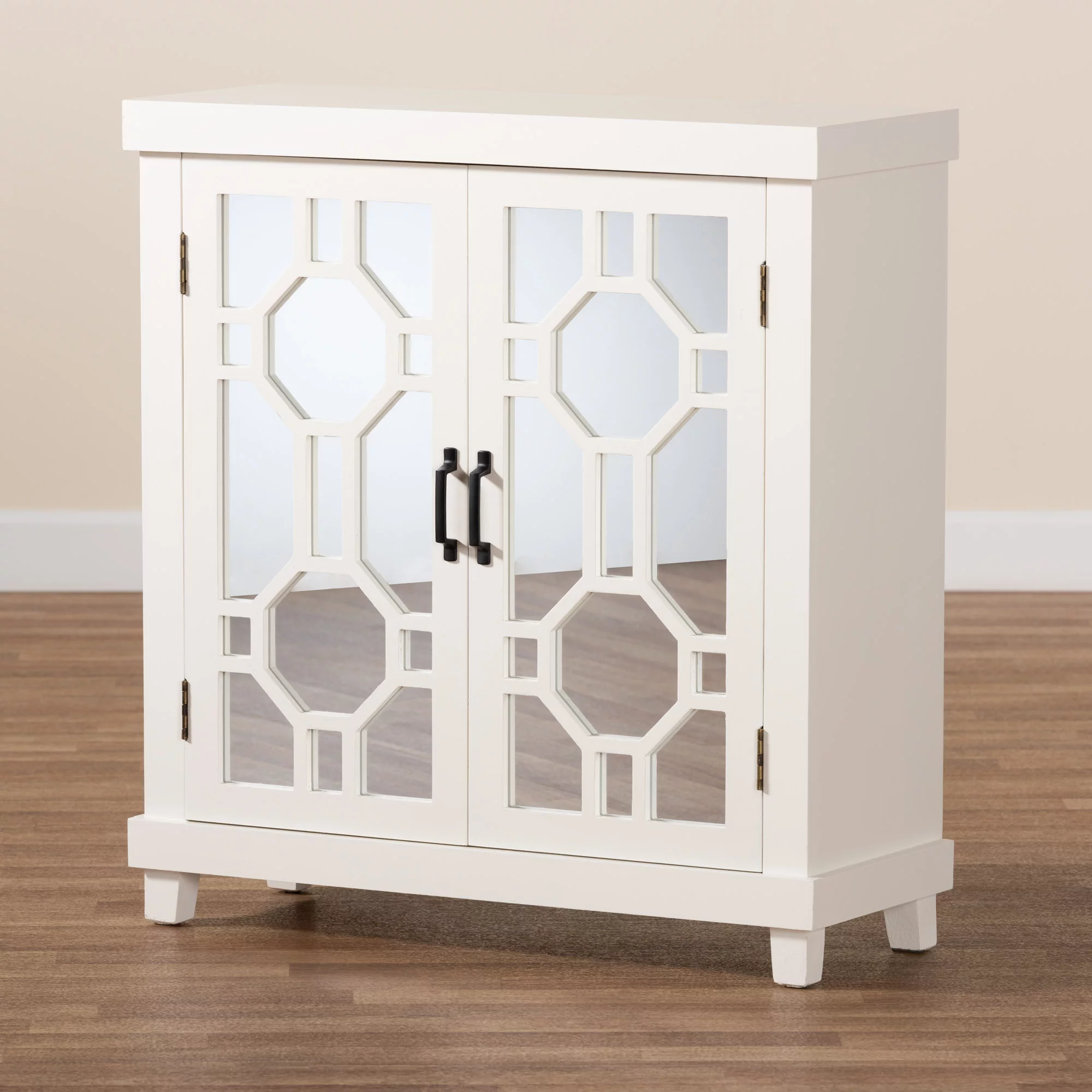 Baxton Studio Carlena Modern and Contemporary White Finished Wood and Mirrored Glass 2-Door Sideboard