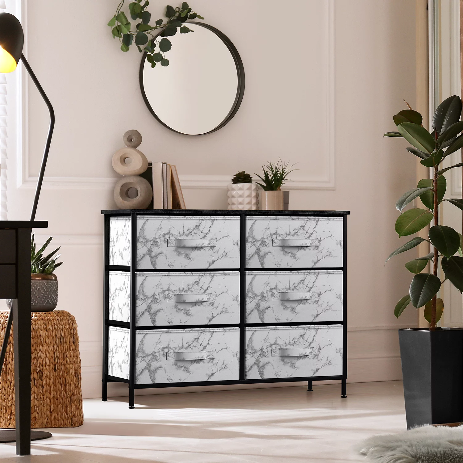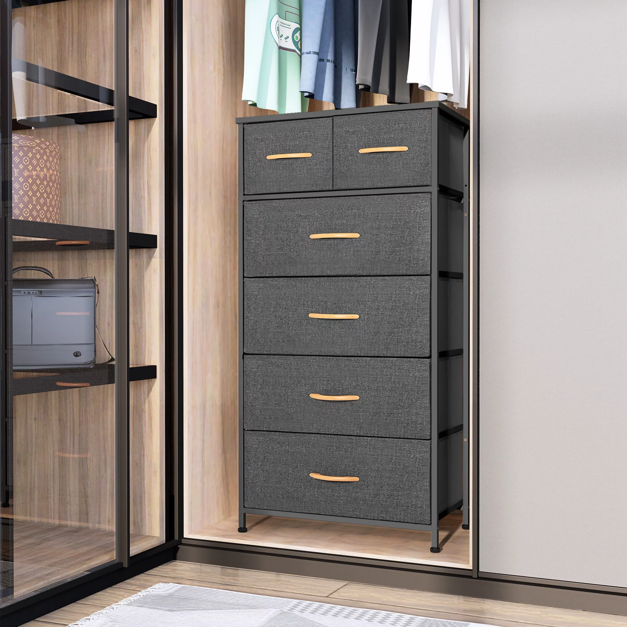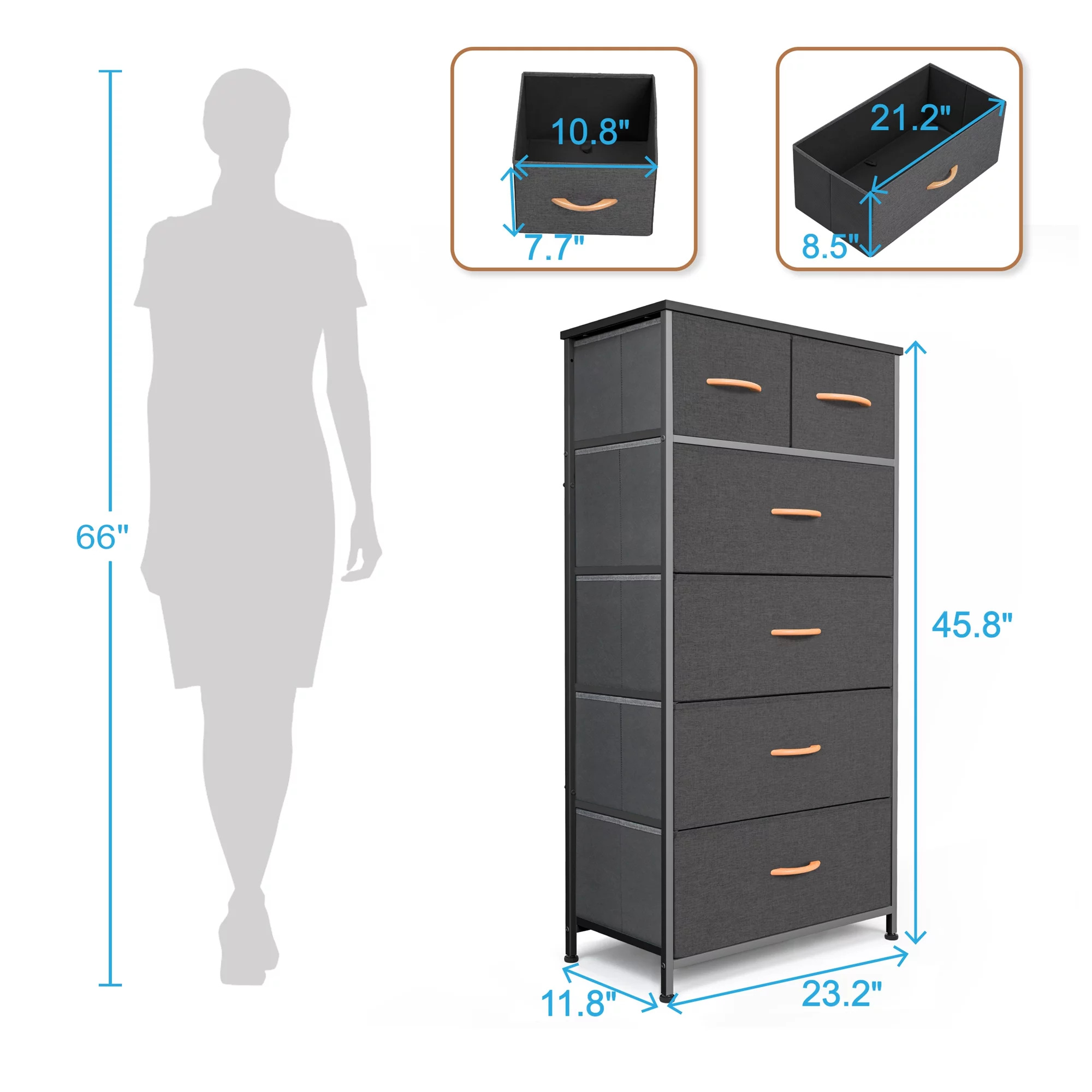 Sorbus Adult Medium-Density Fibreboard 6 Drawers Storage Chest, Black and Gray, Height 24.62"