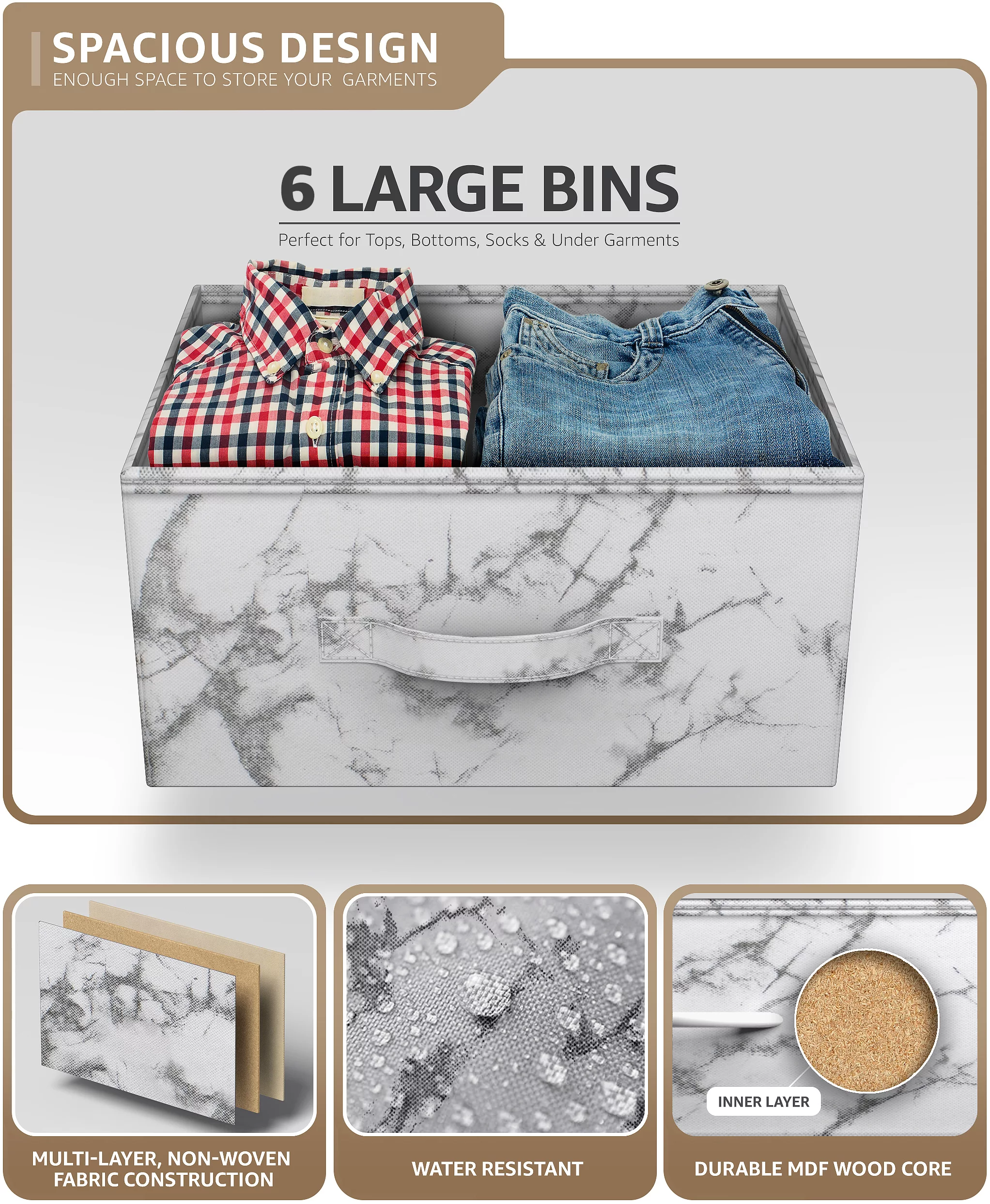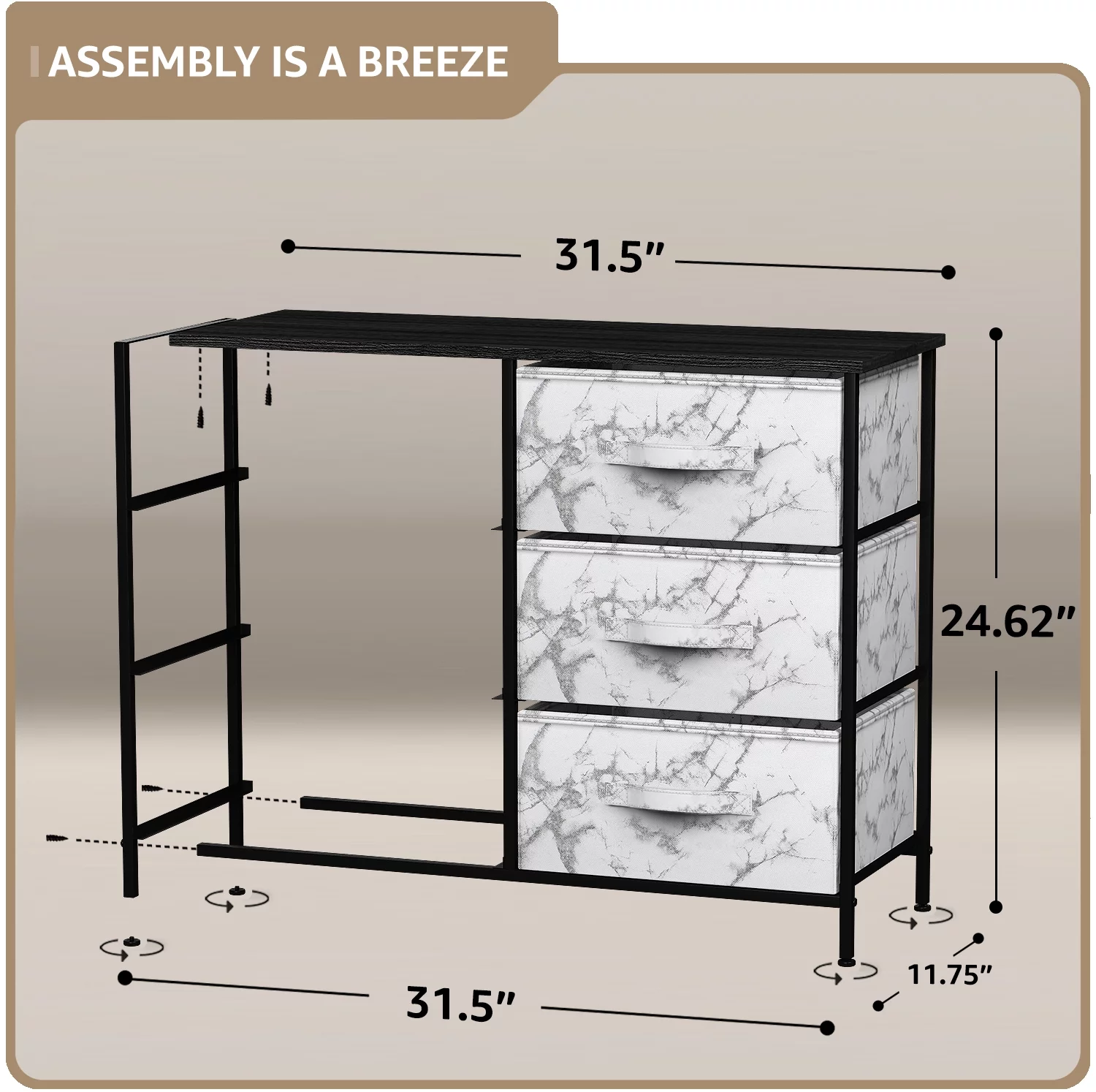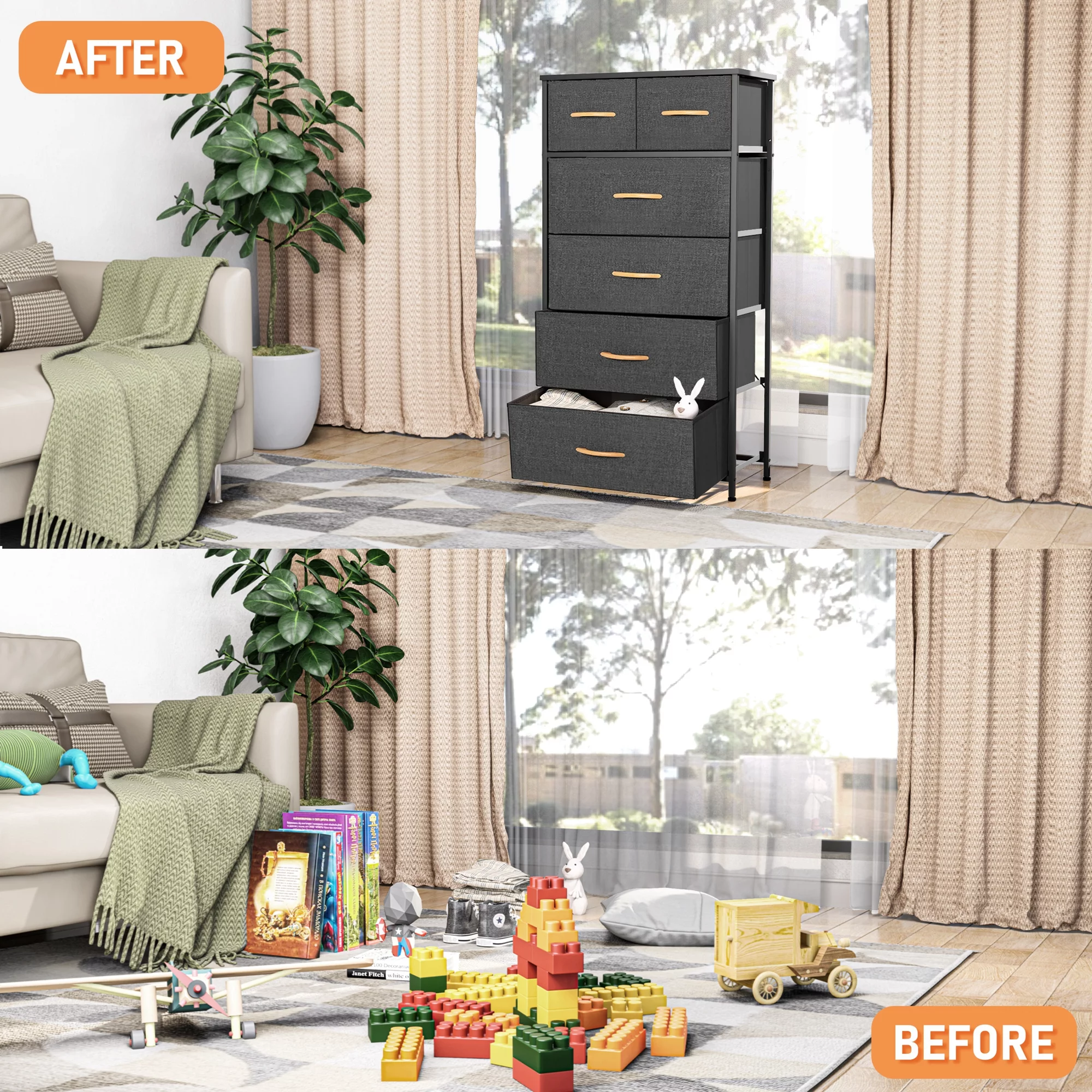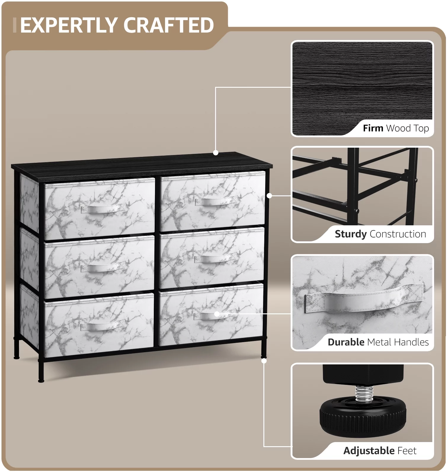 Sorbus Adult Medium-Density Fibreboard 6 Drawers Storage Chest, Black and Gray, Height 24.62"
