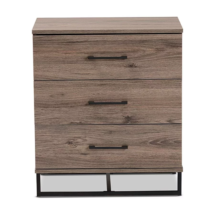 Baxton Studio Daxton Modern and Contemporary Rustic Oak Finished Wood 3-Drawer Storage Chest