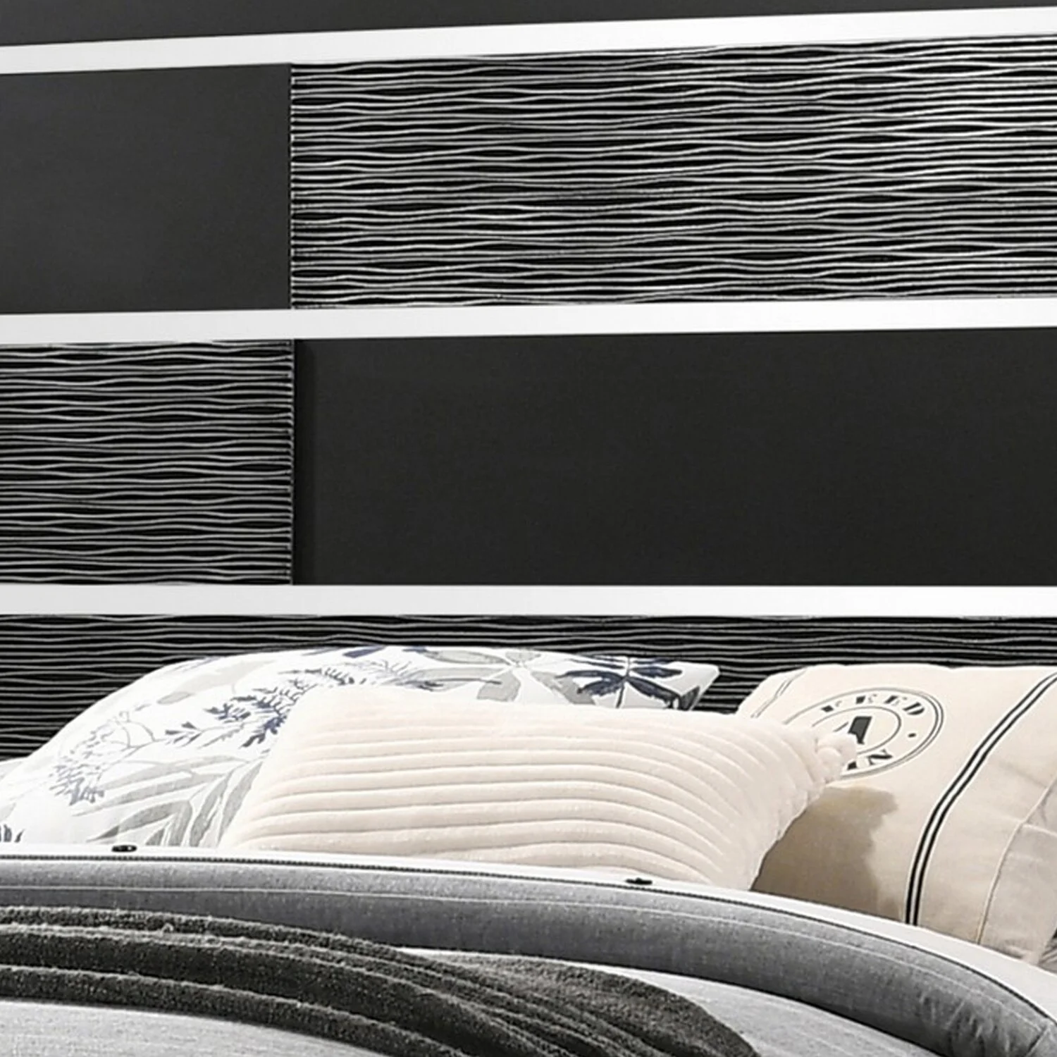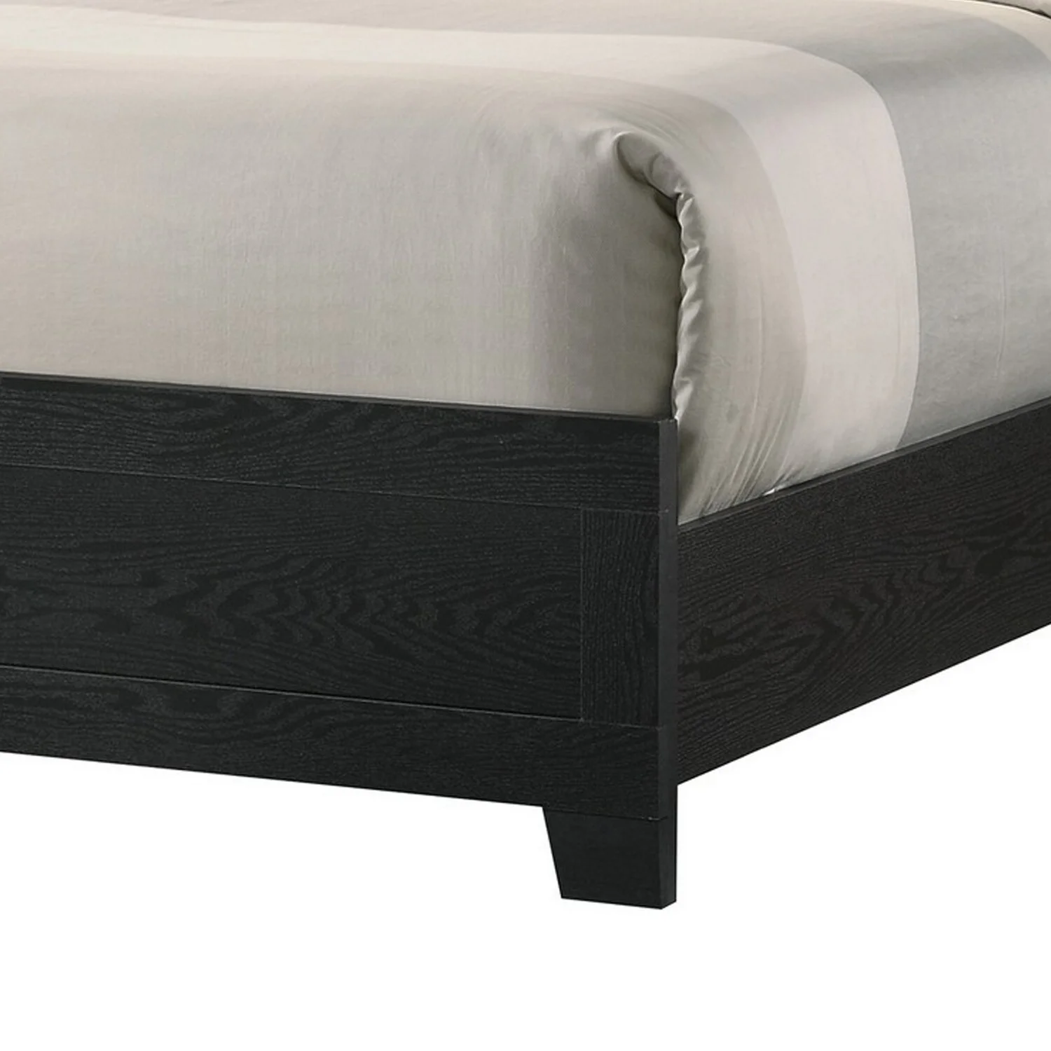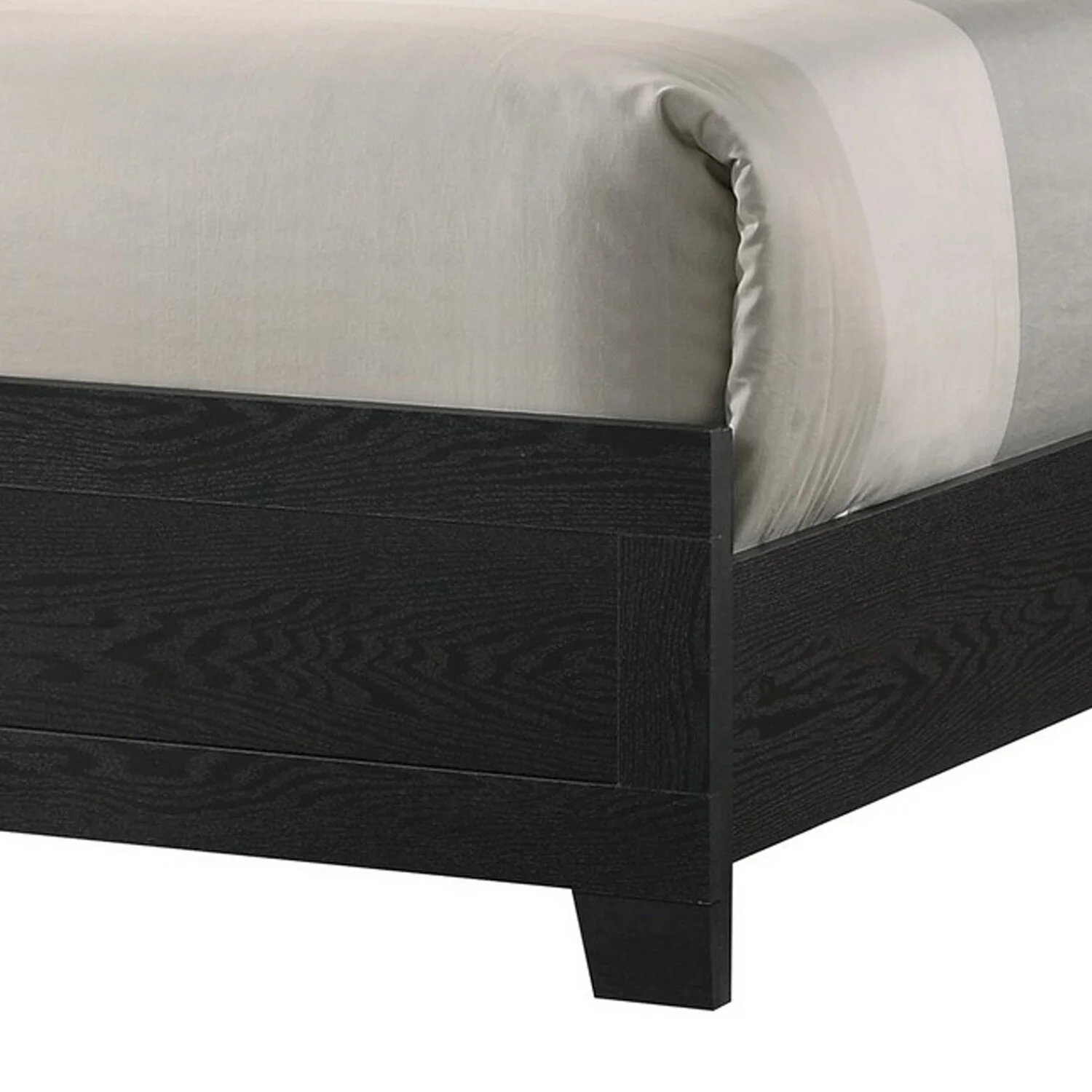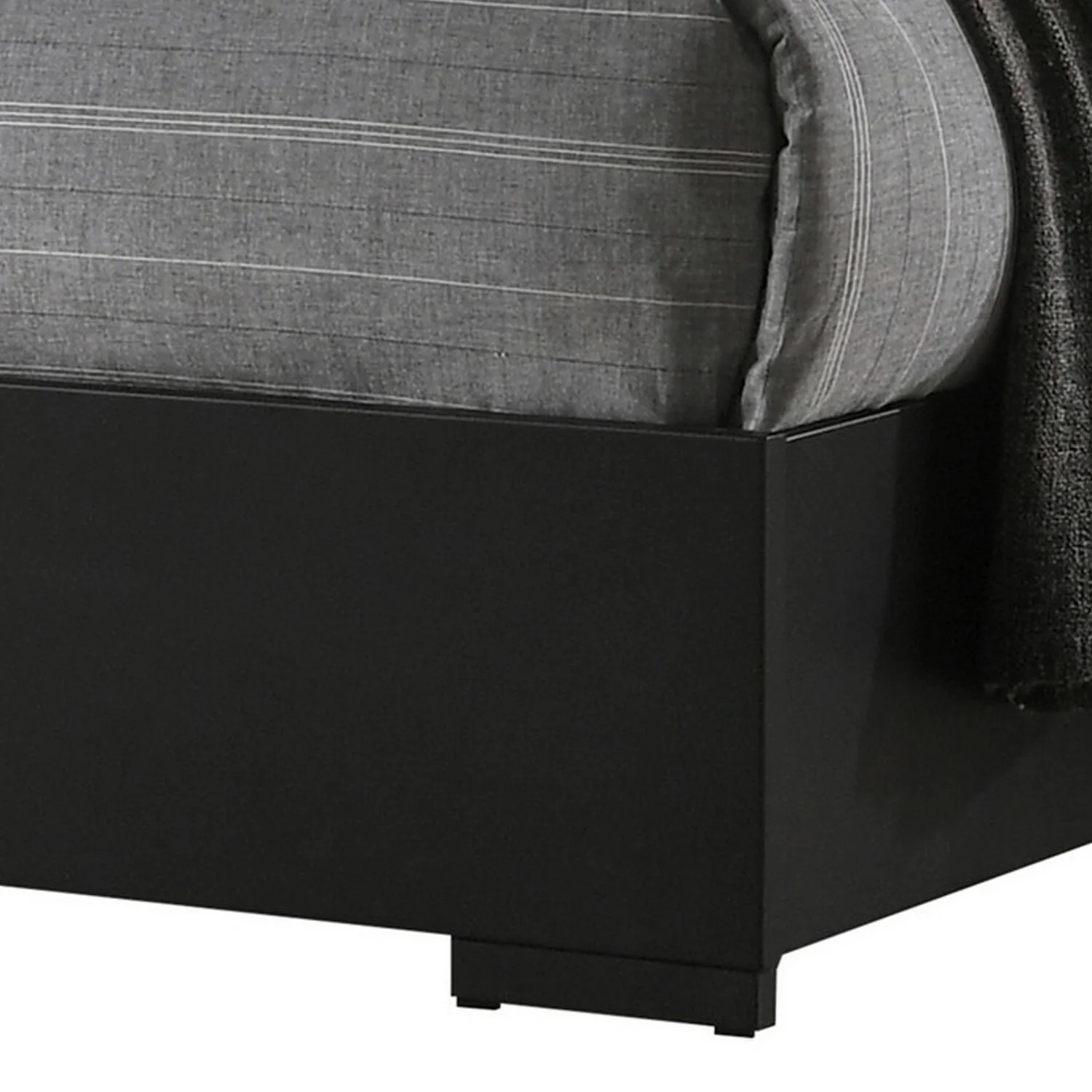 Benjara BM302864 Mirror Accents Chambered Trim On Headboard Reza King Size Panel Bed, Black & Chrome