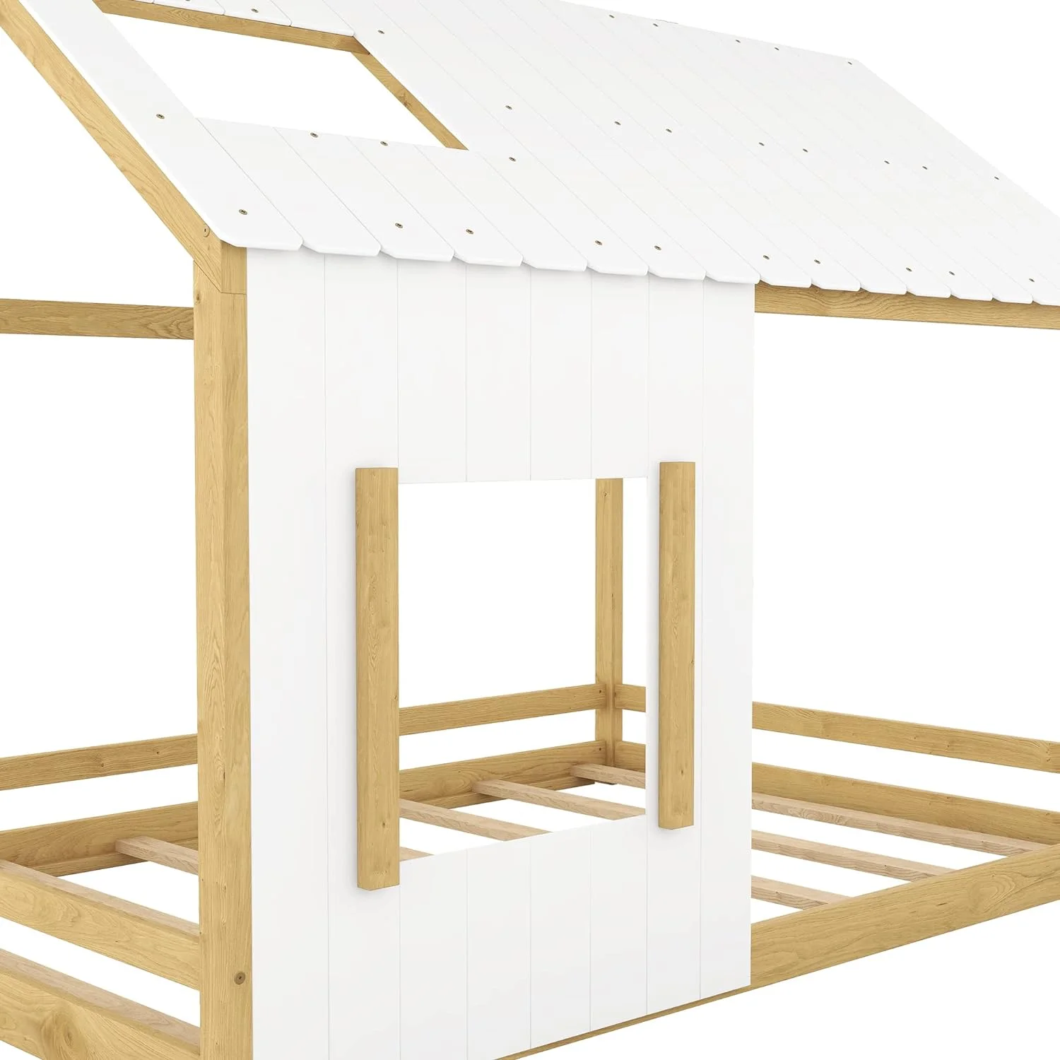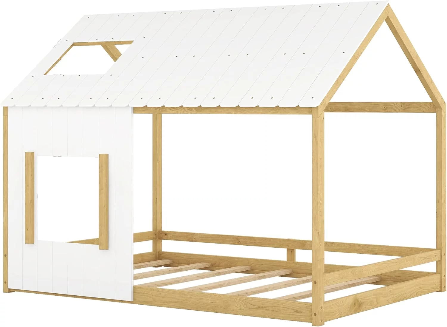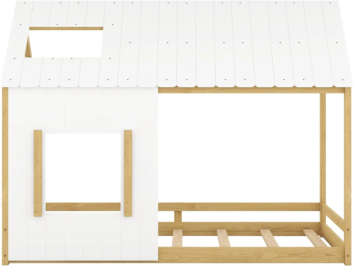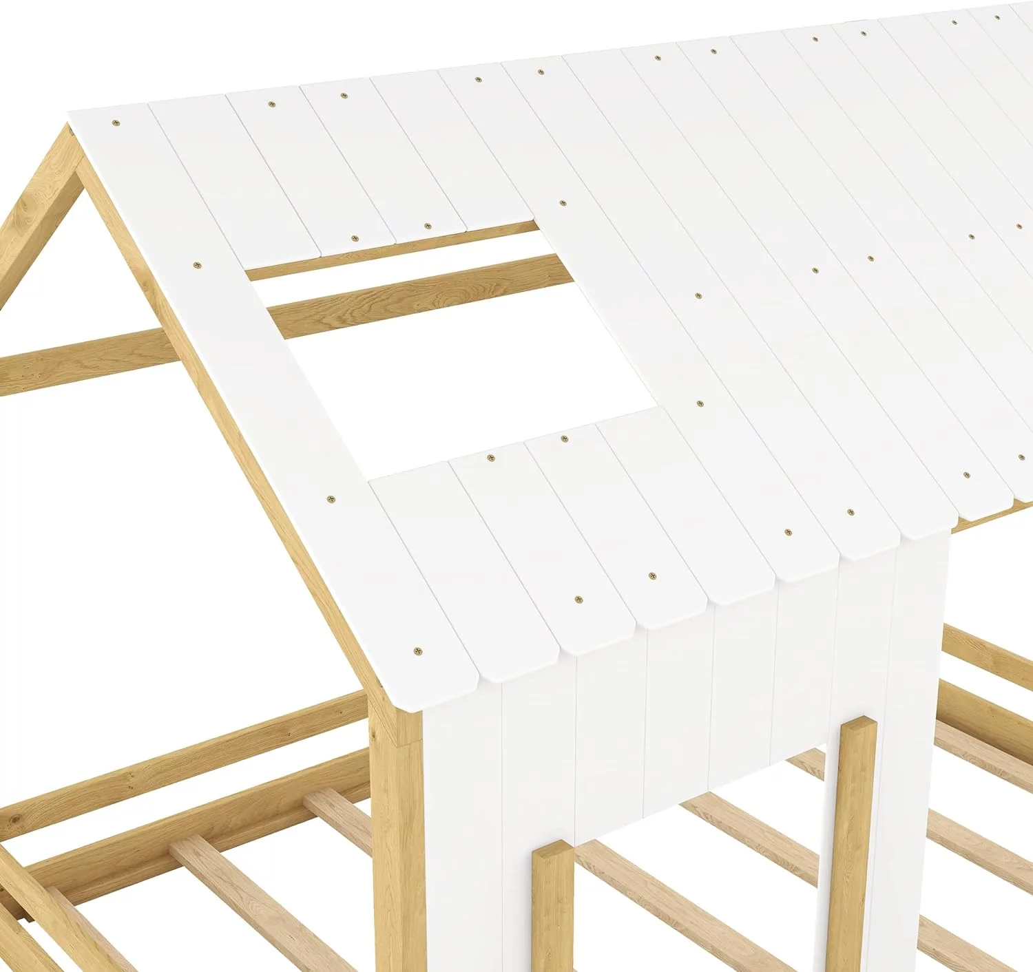 House Bed For Kids, Wood Size Wood With Wood Roof, Cabin Bed, Floor Bed For Kids, Teens (White, Size)