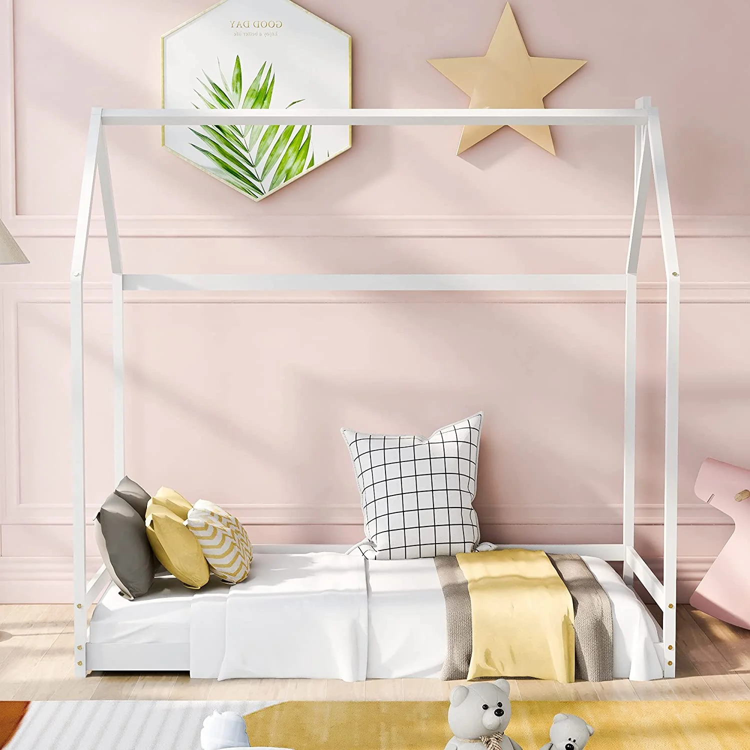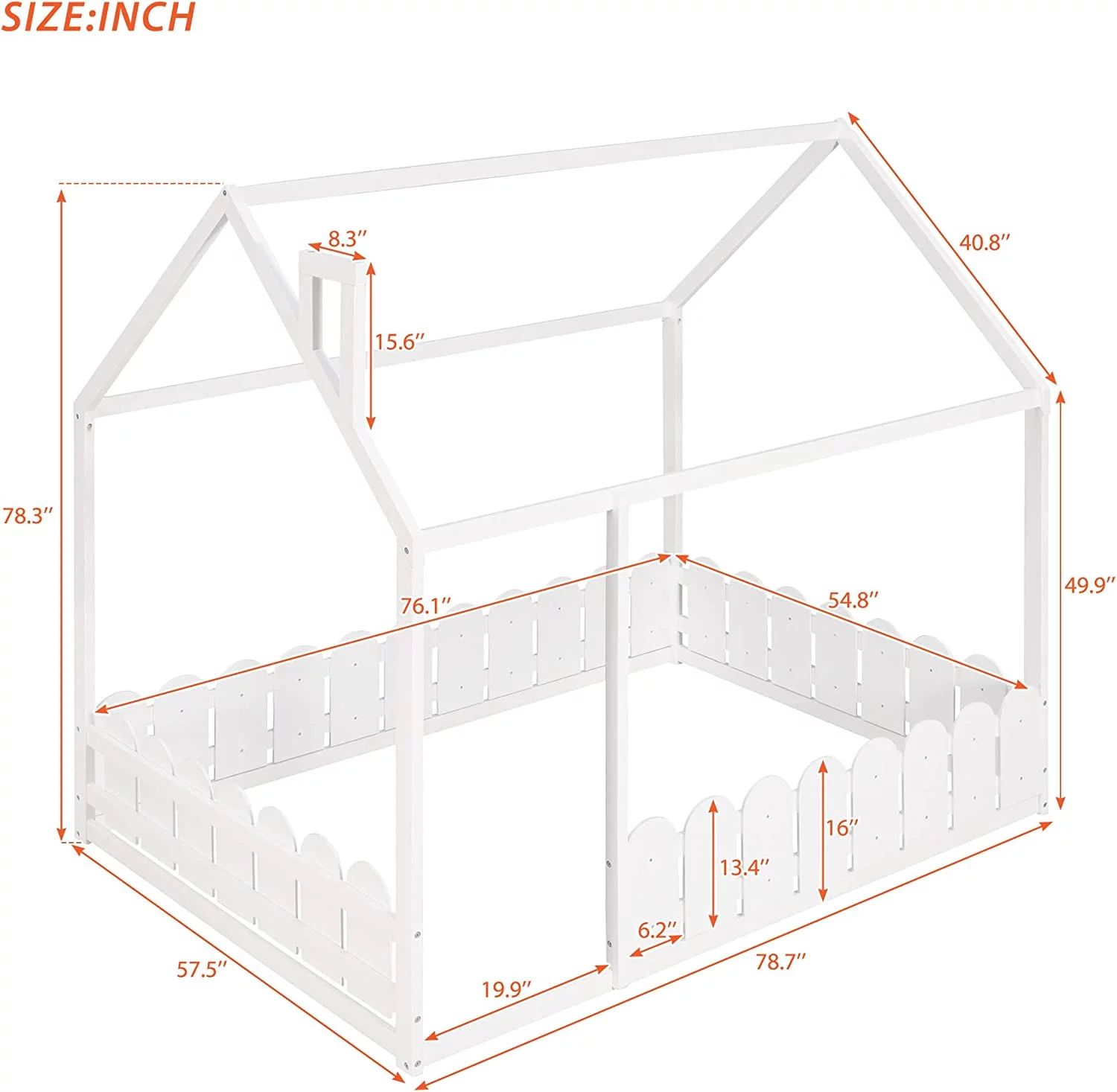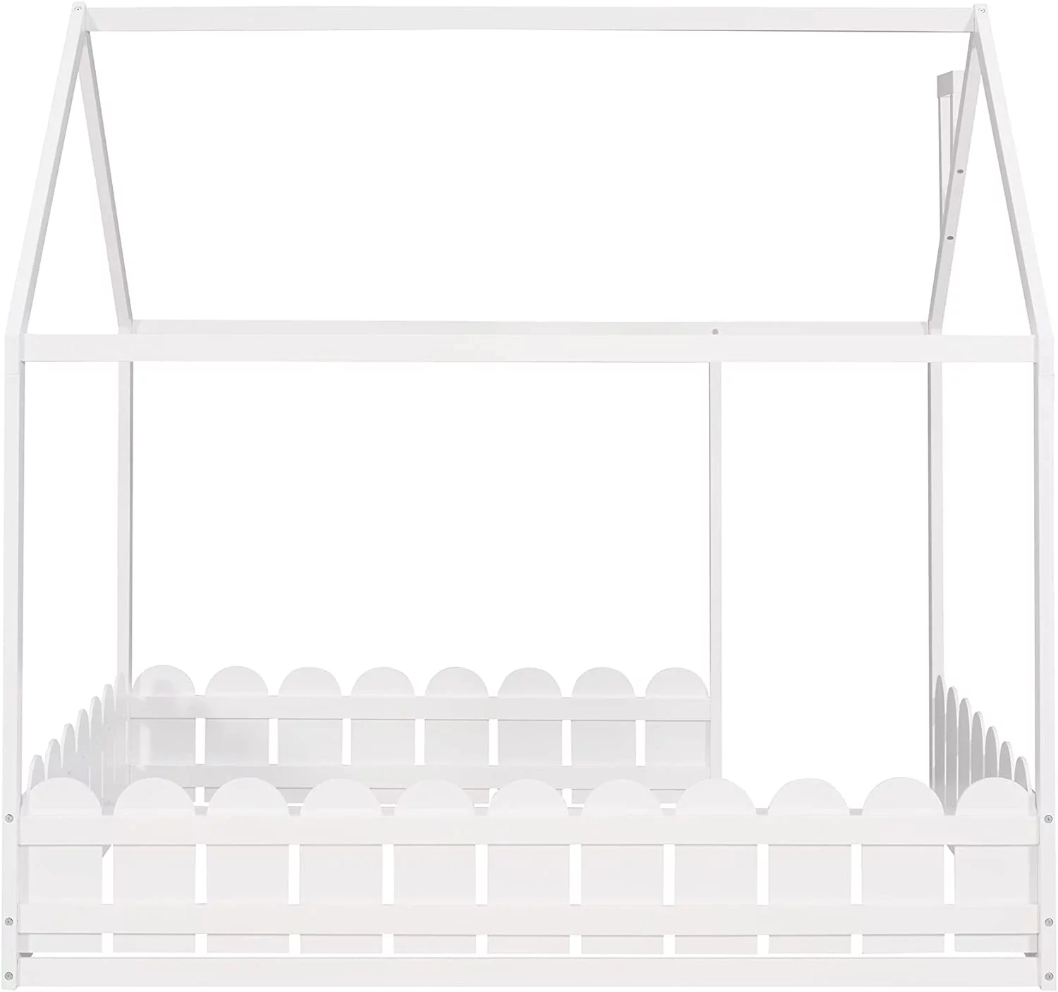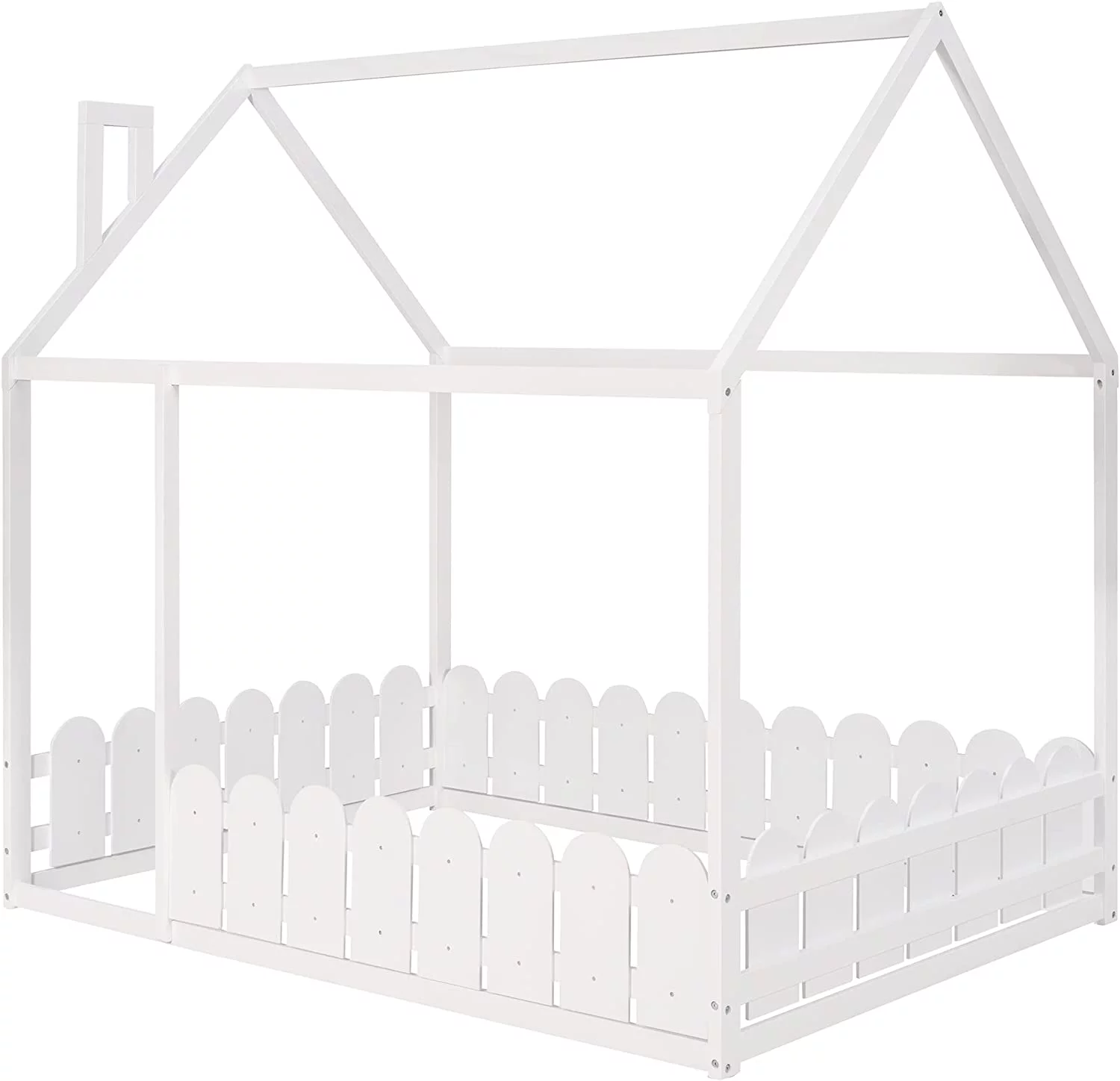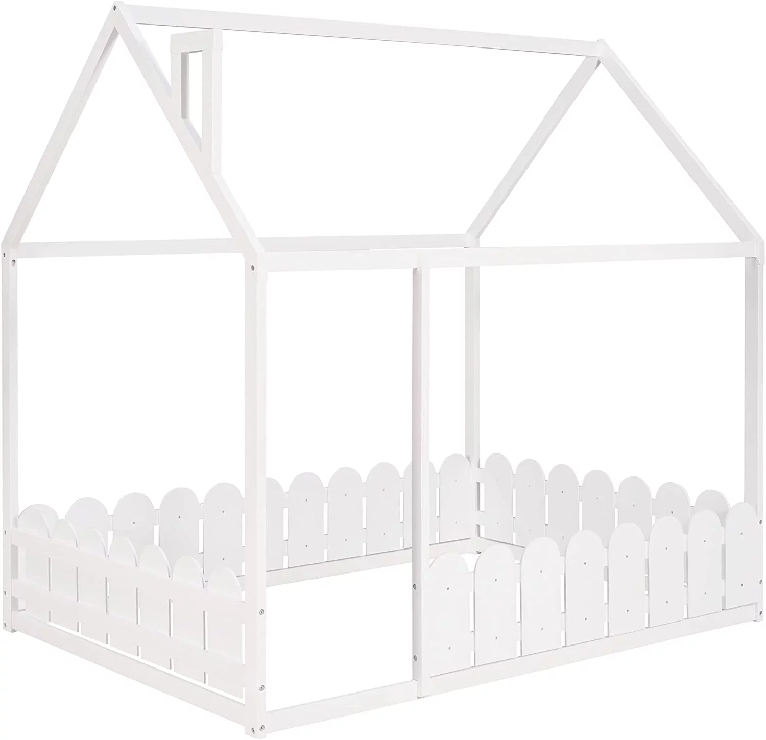 House Bed For Kids, Wood Size Wood With Wood Roof, Cabin Bed, Floor Bed For Kids, Teens (White, Size)