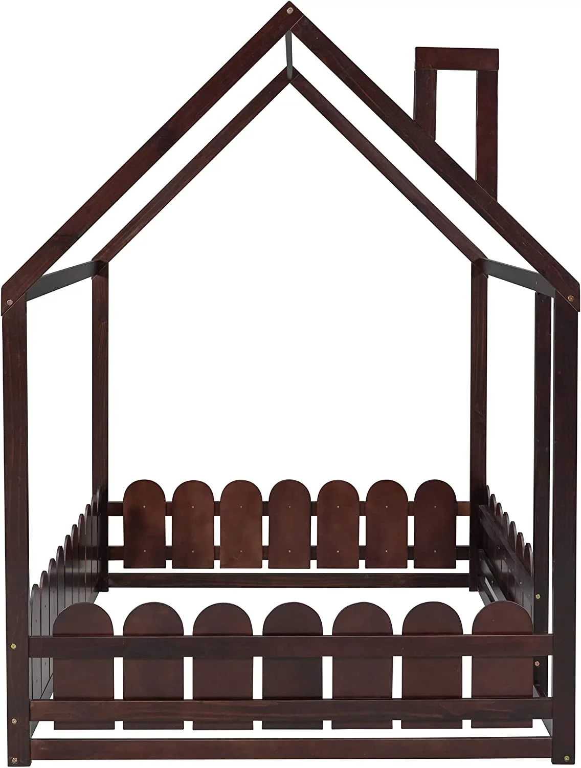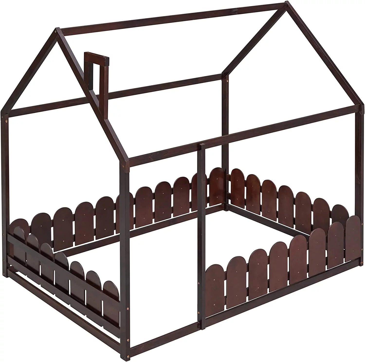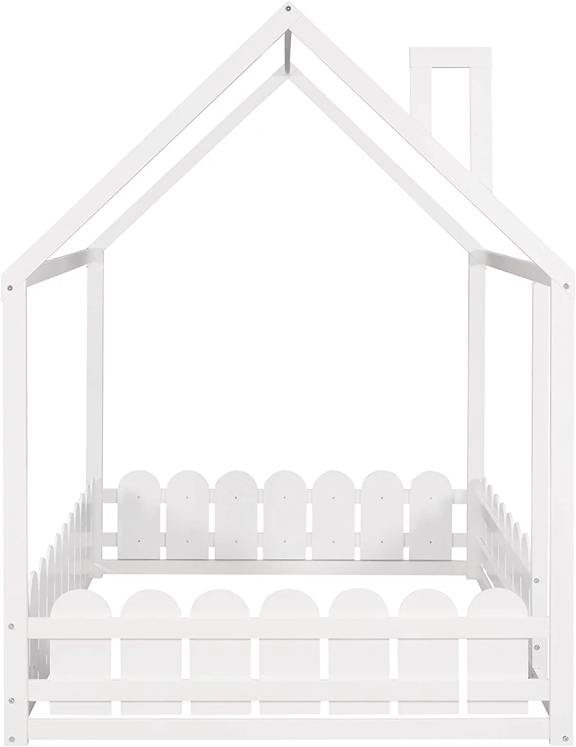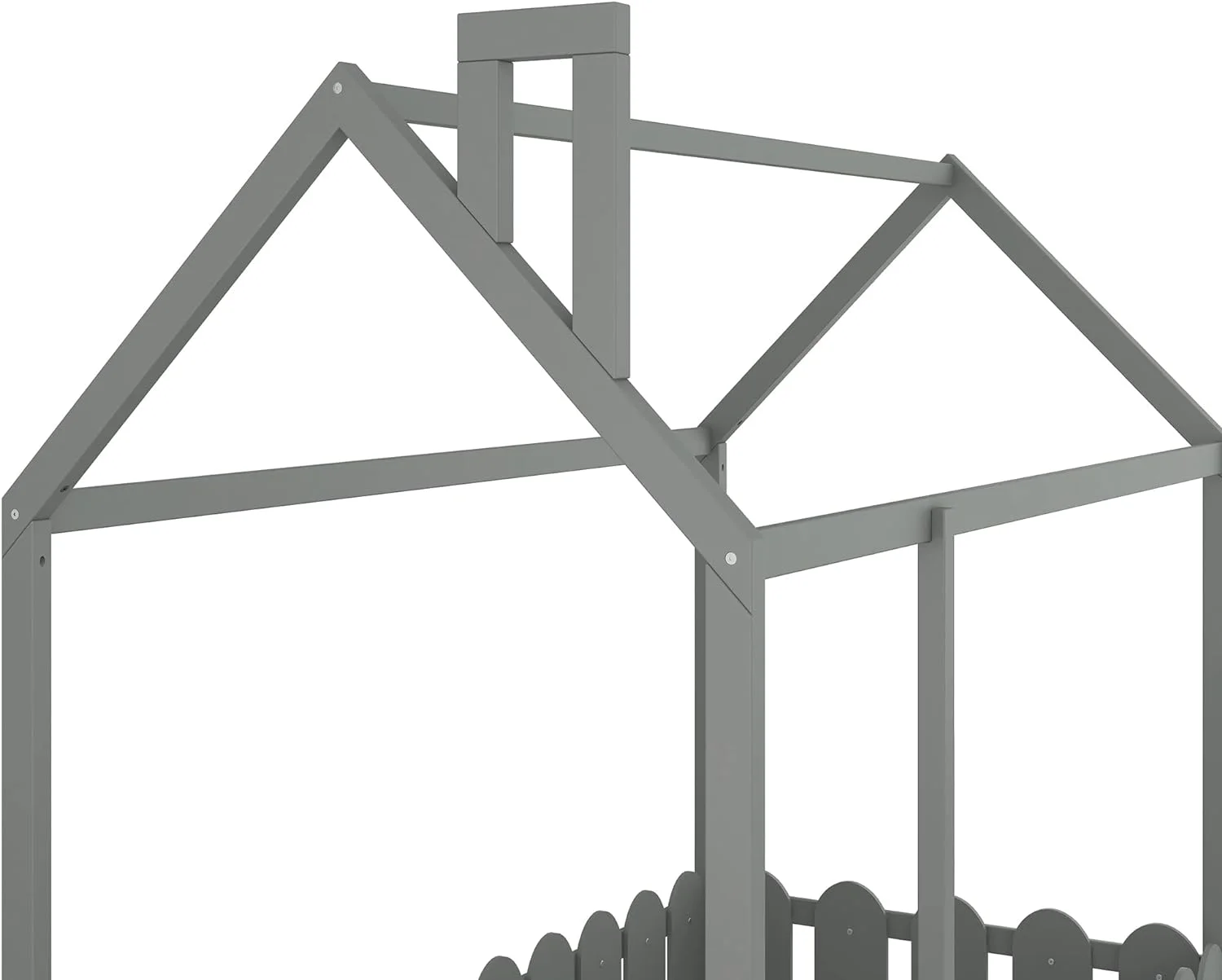 Size House Bed With Fence, House Floor Bed Frame With Roof And Chimney, Wooden Cabin Bed For Kids And Teens (Gray)