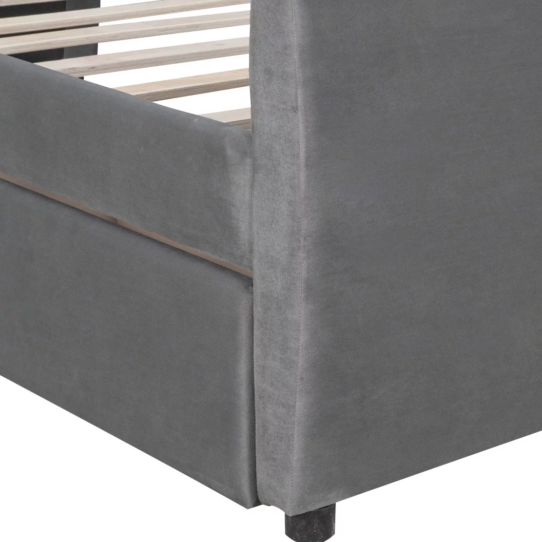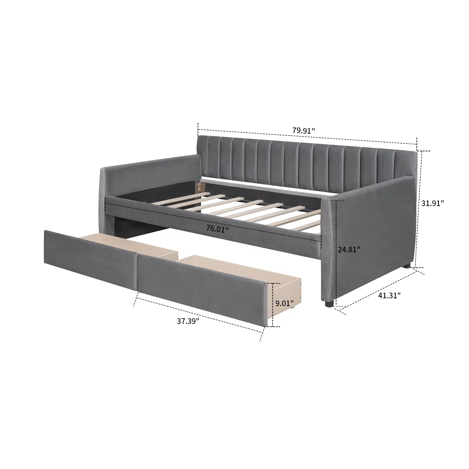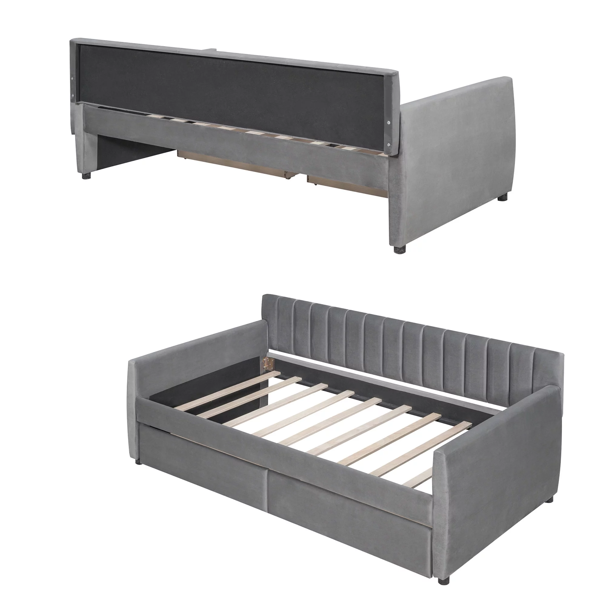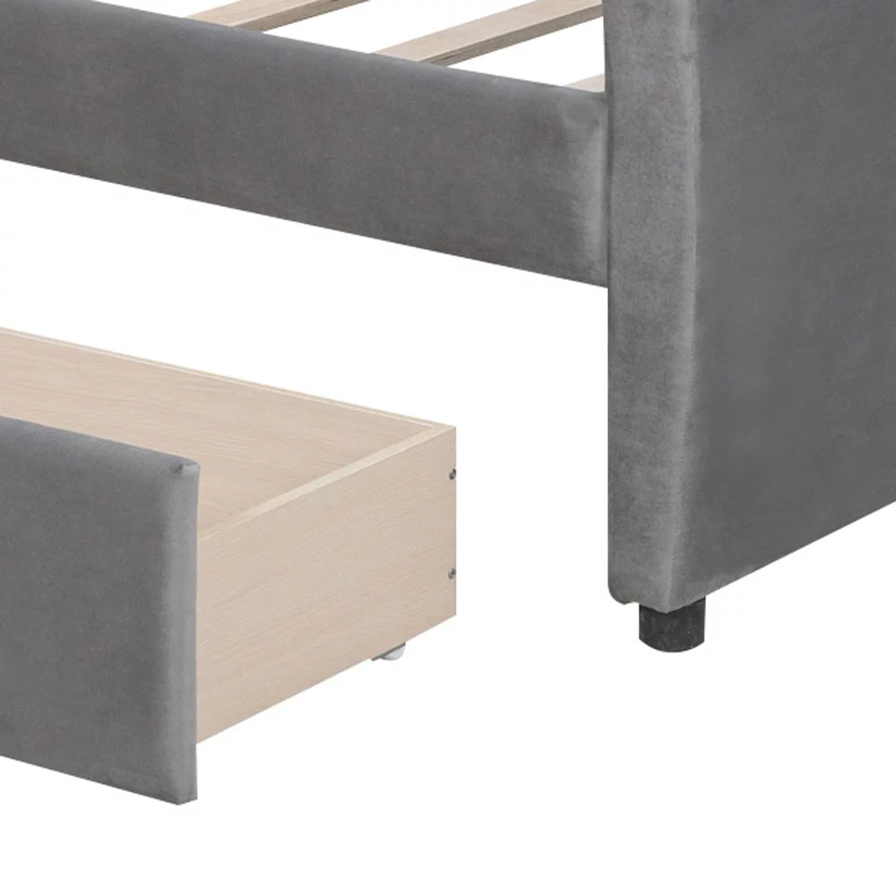 Elegant and Comfortable Velvet Fabric Twin Size Upholstered Daybed with Two Storage Drawers, Gray