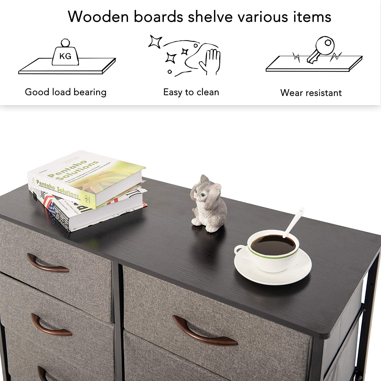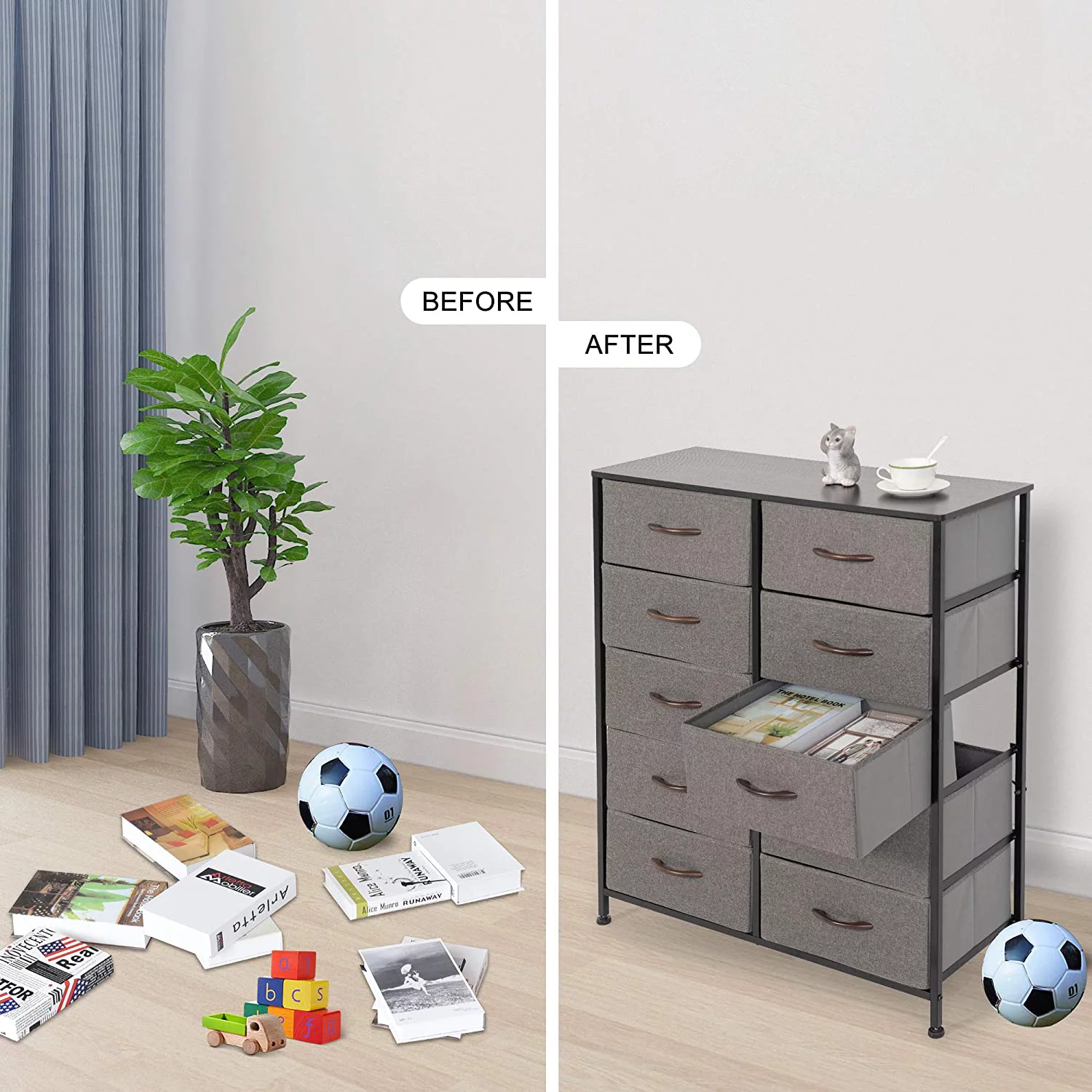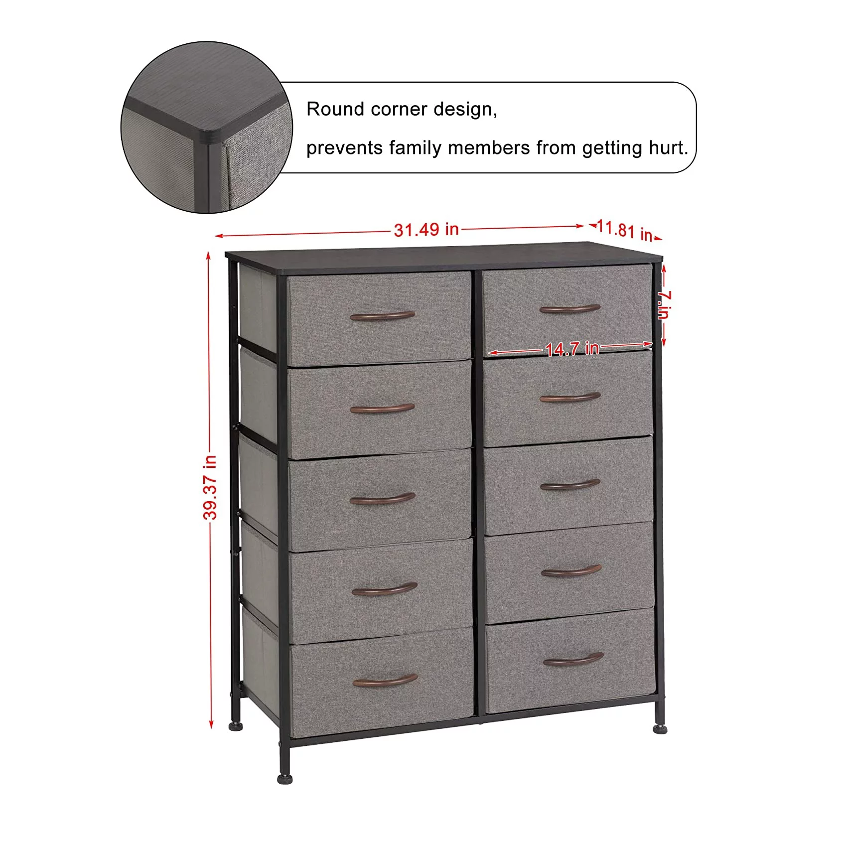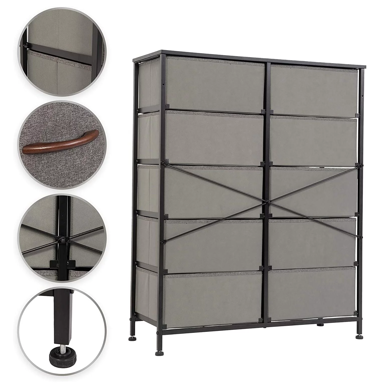 Dresser for Bedroom Chest of 10 Drawers Storage Tower Steel Frame Closet Fabric Cabinet Organizer in Home Gray