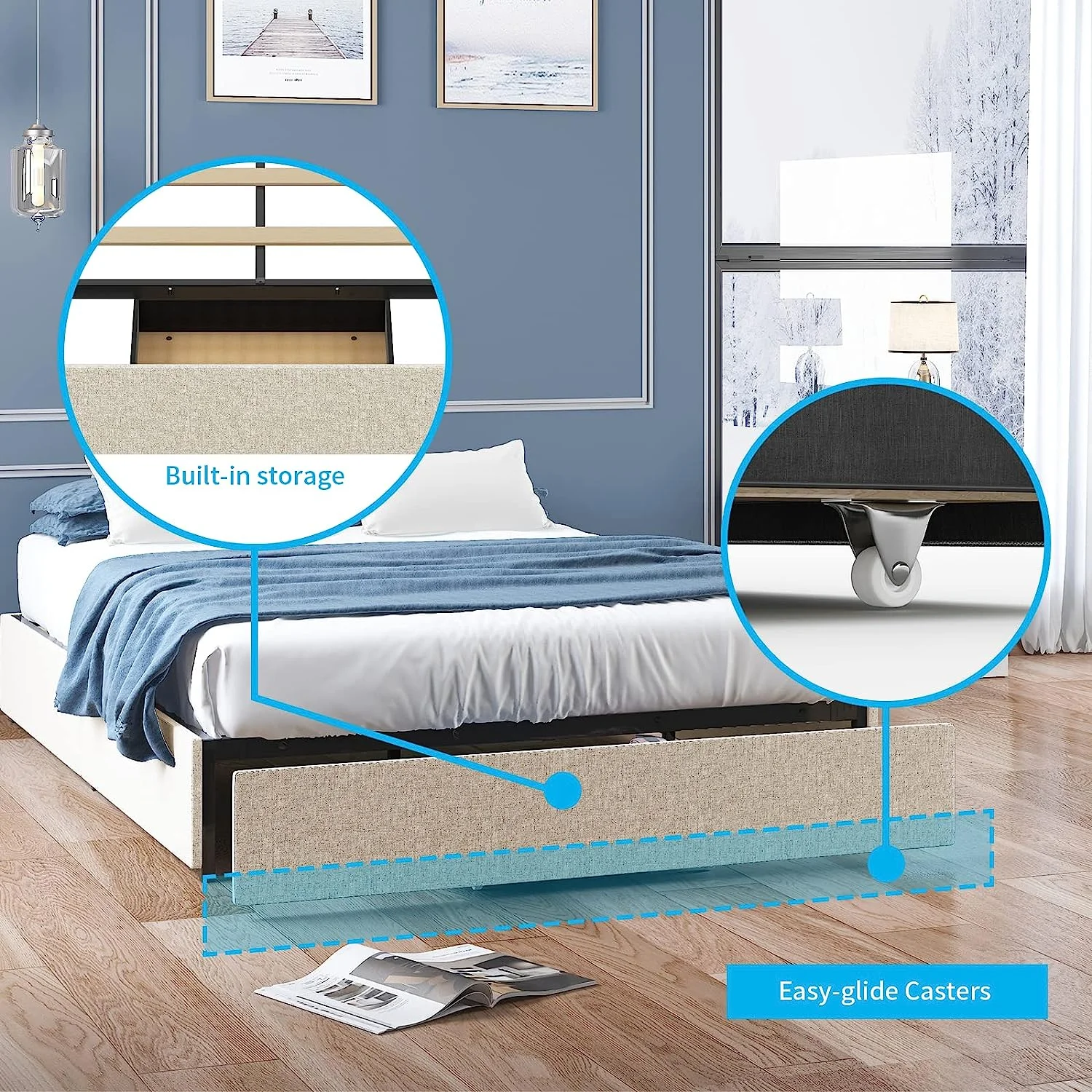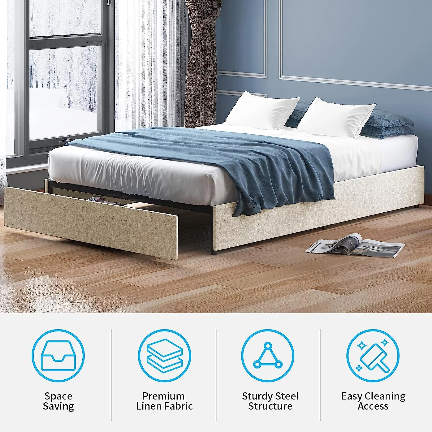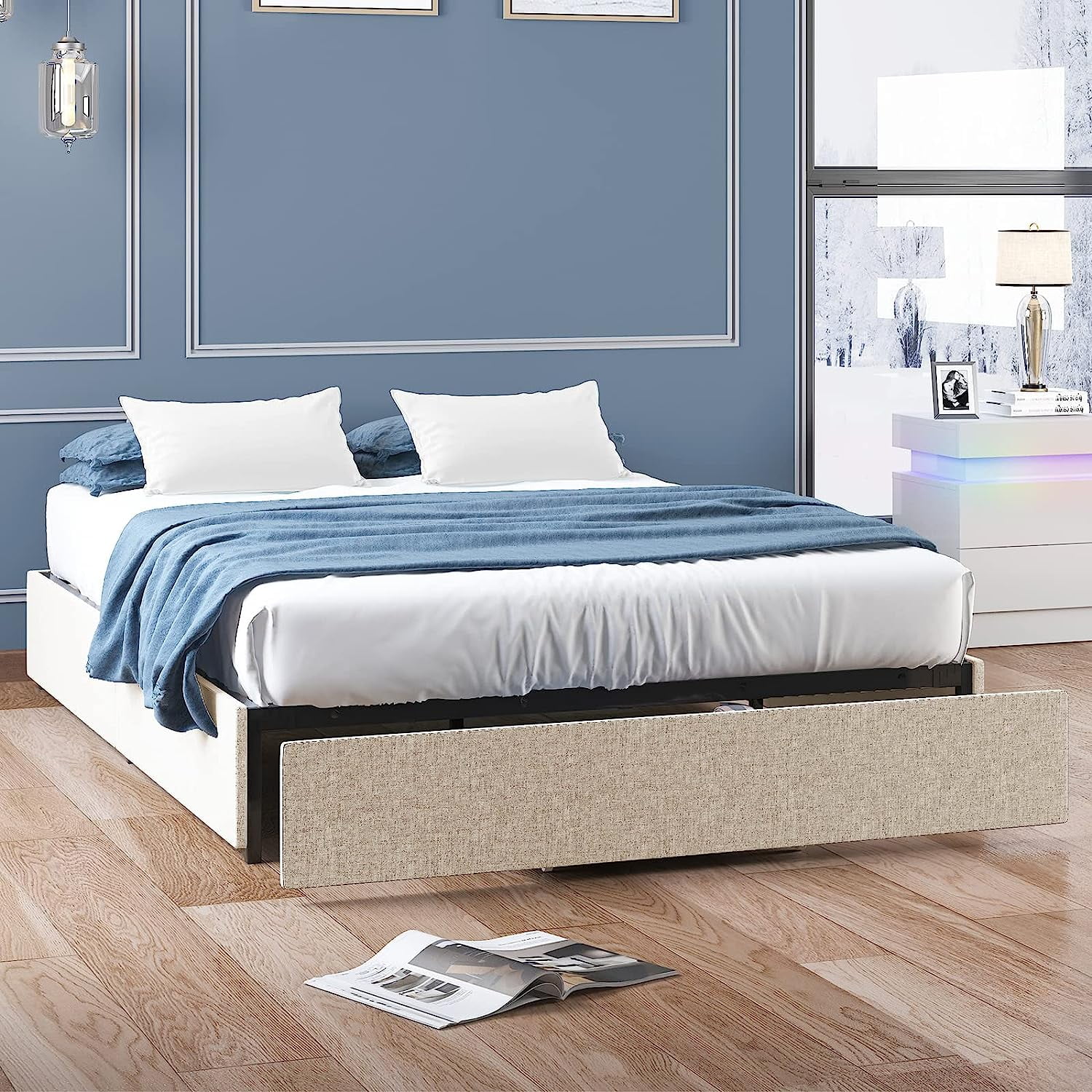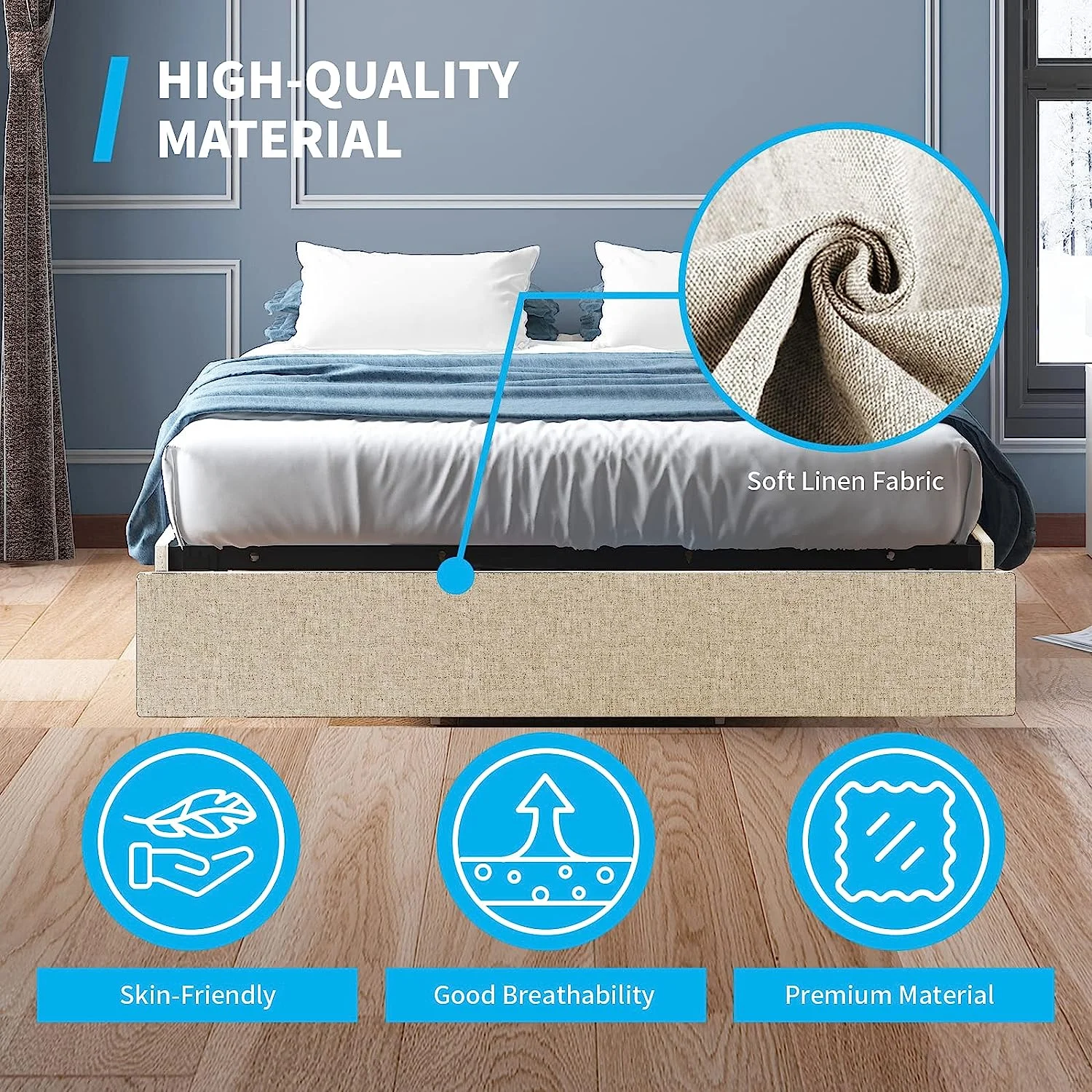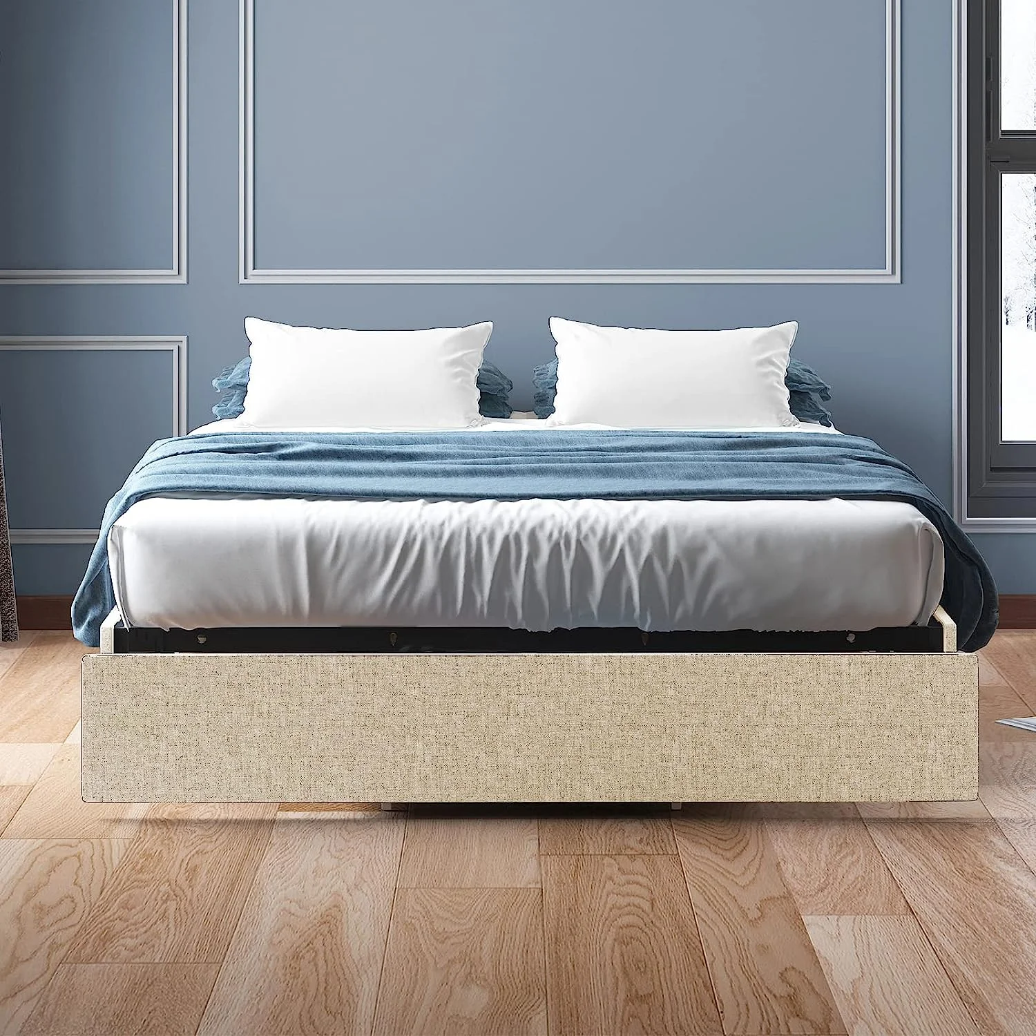 1Pc Silver Finish Full Size Panel Upholstered Button Tufted Headboard Bed Wooden Bedroom Furniture