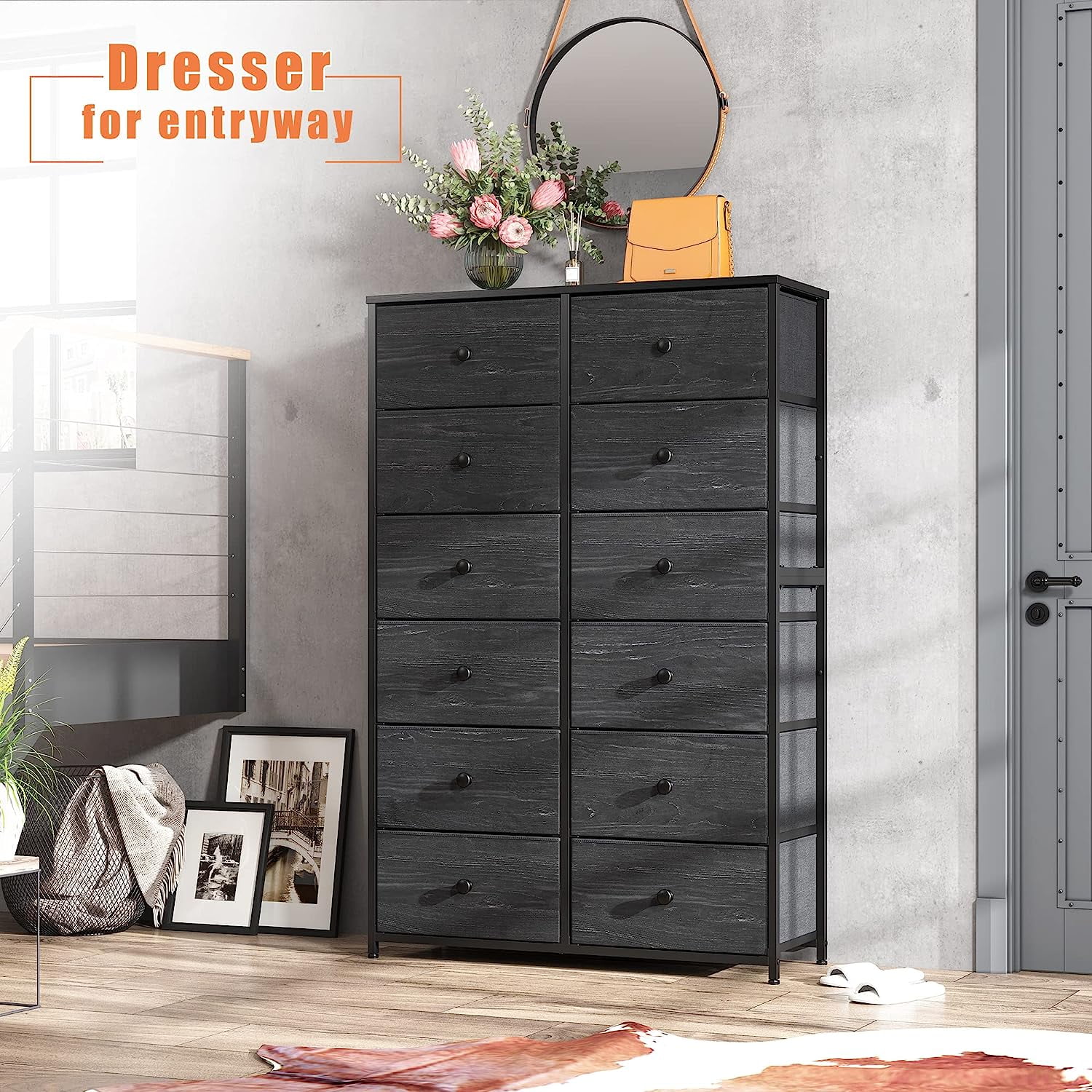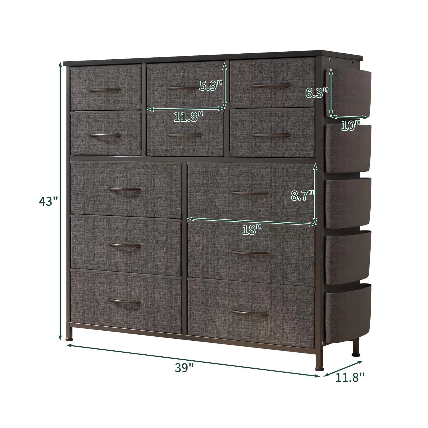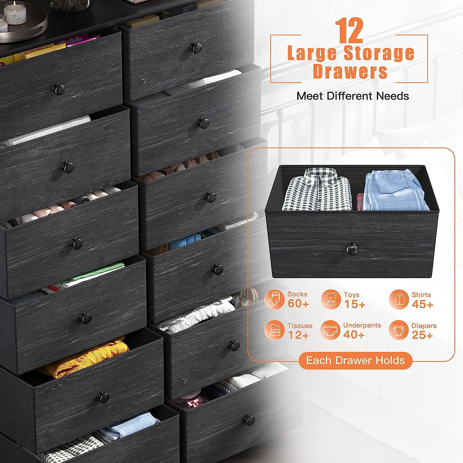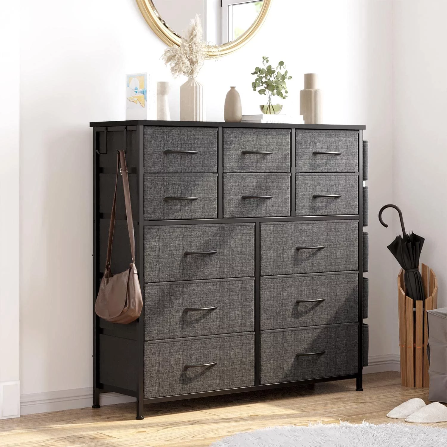 JINYUZHOU INC 12 Drawer Dresser Tall Fabric Chests of Drawers Closet for Bedroom Rustic Brown - 12-drawer