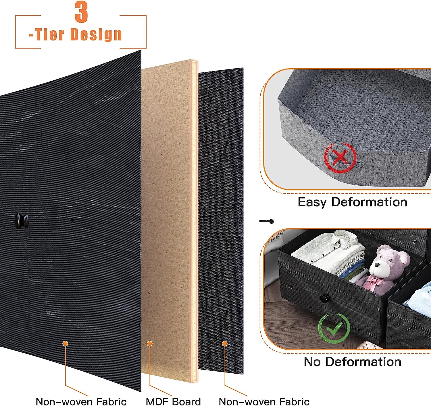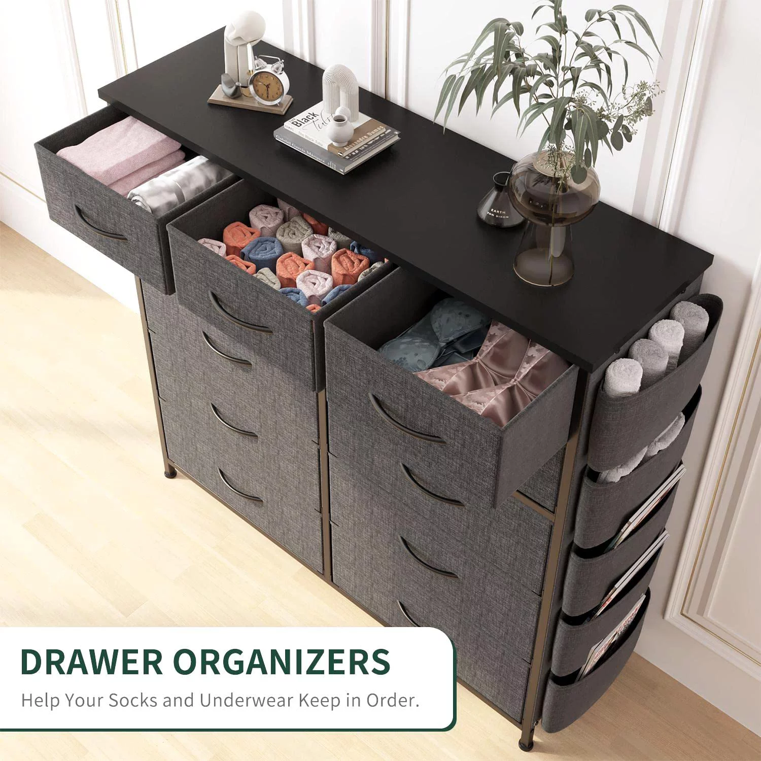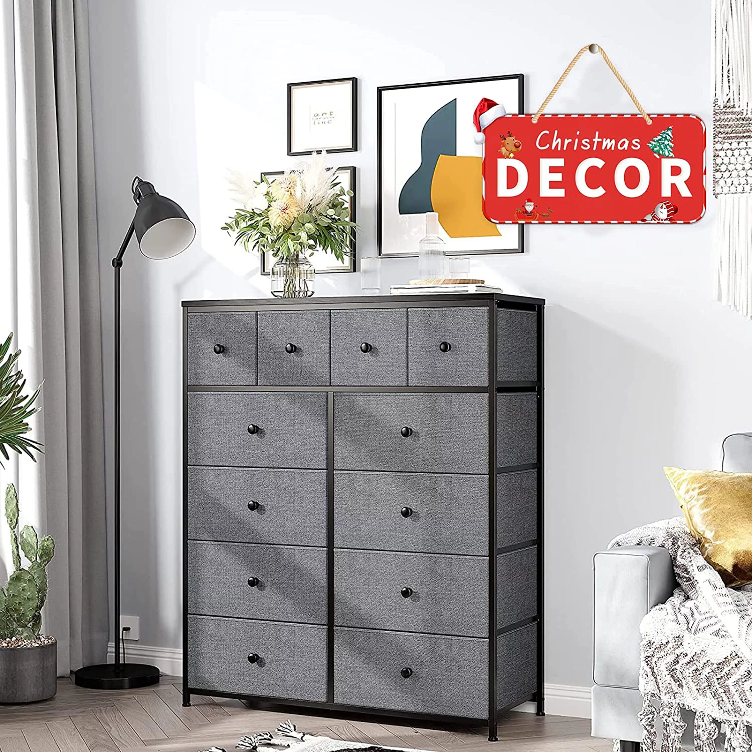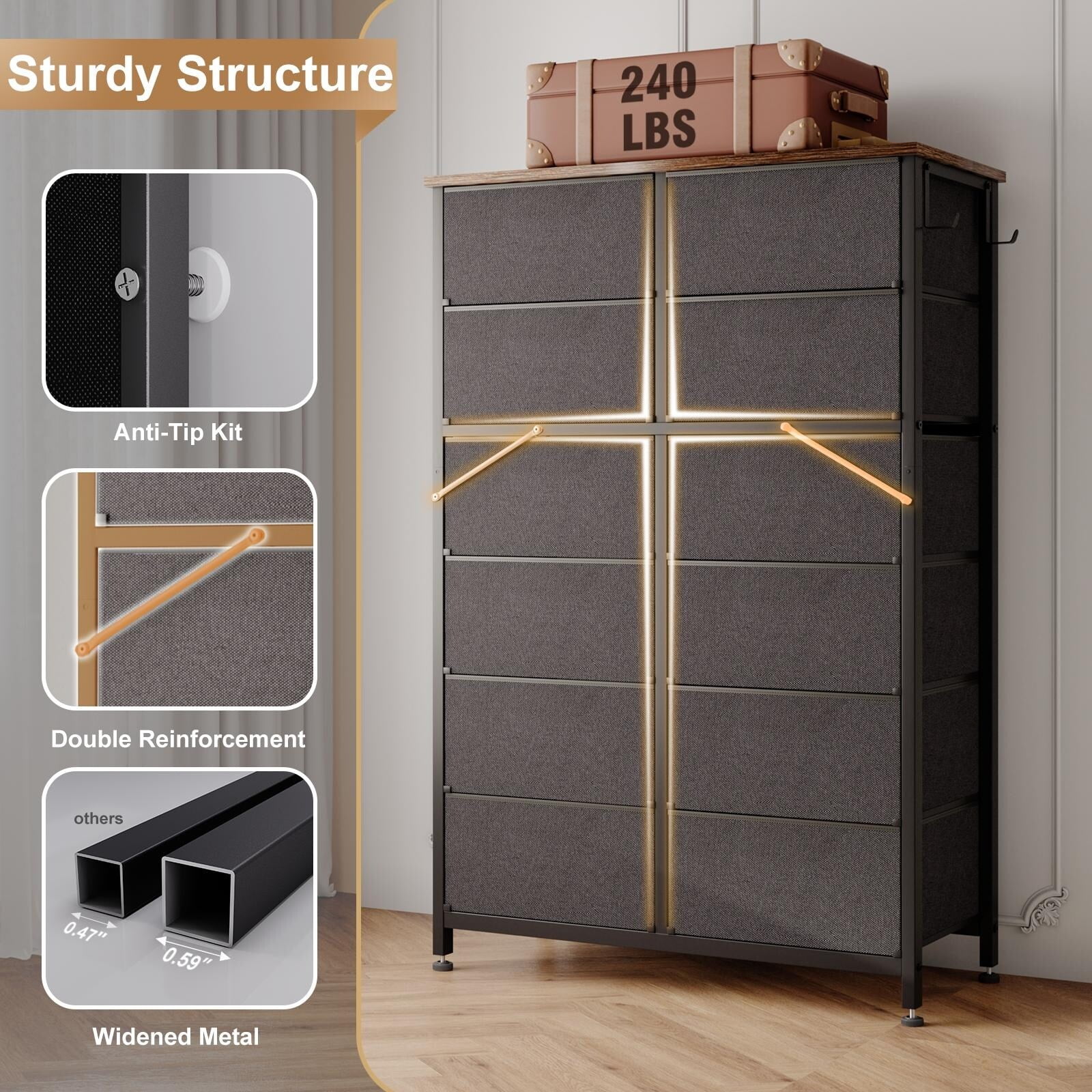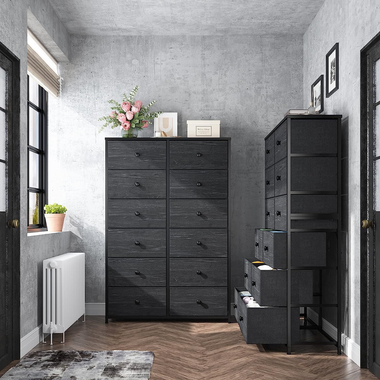 JINYUZHOU INC 12 Drawer Dresser Tall Fabric Chests of Drawers Closet for Bedroom Rustic Brown - 12-drawer