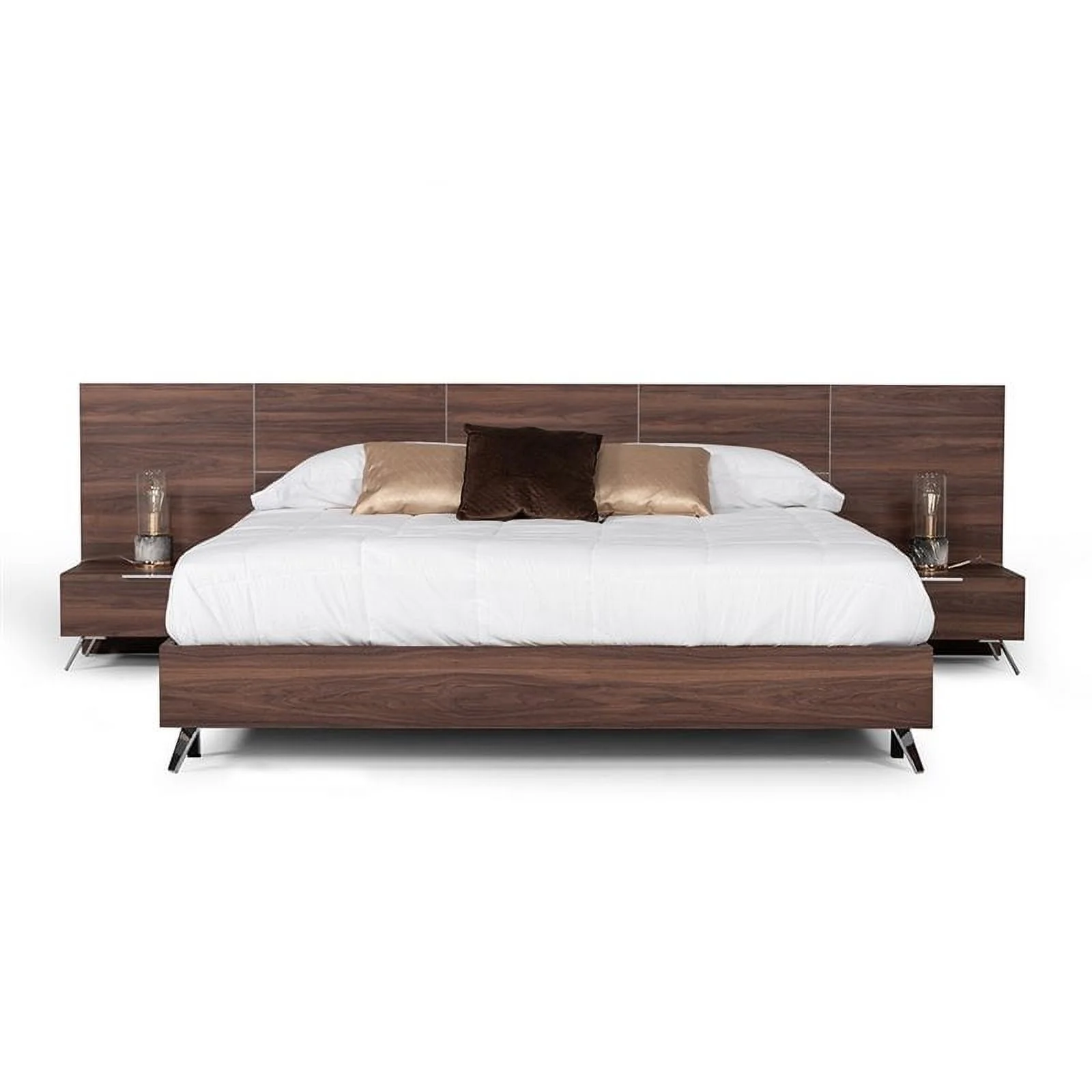 Modrest Brooklyn 112x83" Modern Laminate Wood & Metal Queen Bed in Walnut