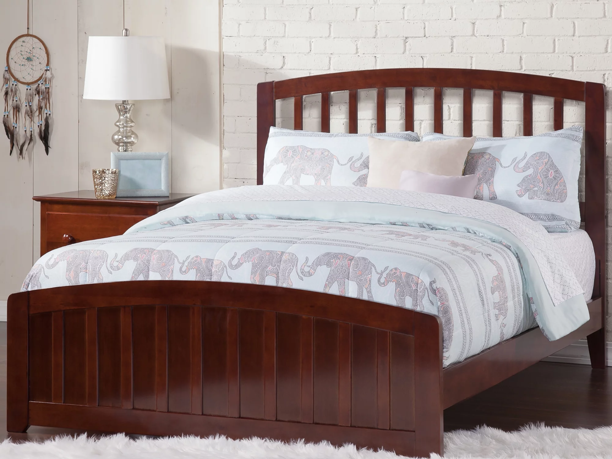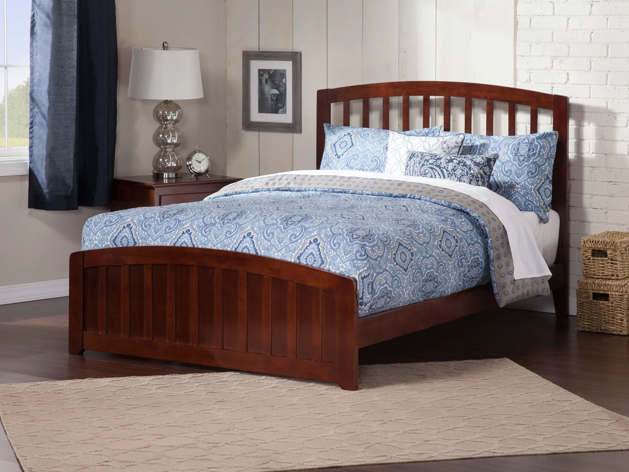 AFI Richmond Queen Wood Platform Bed with Slatted Headboard and Footboard, Walnut