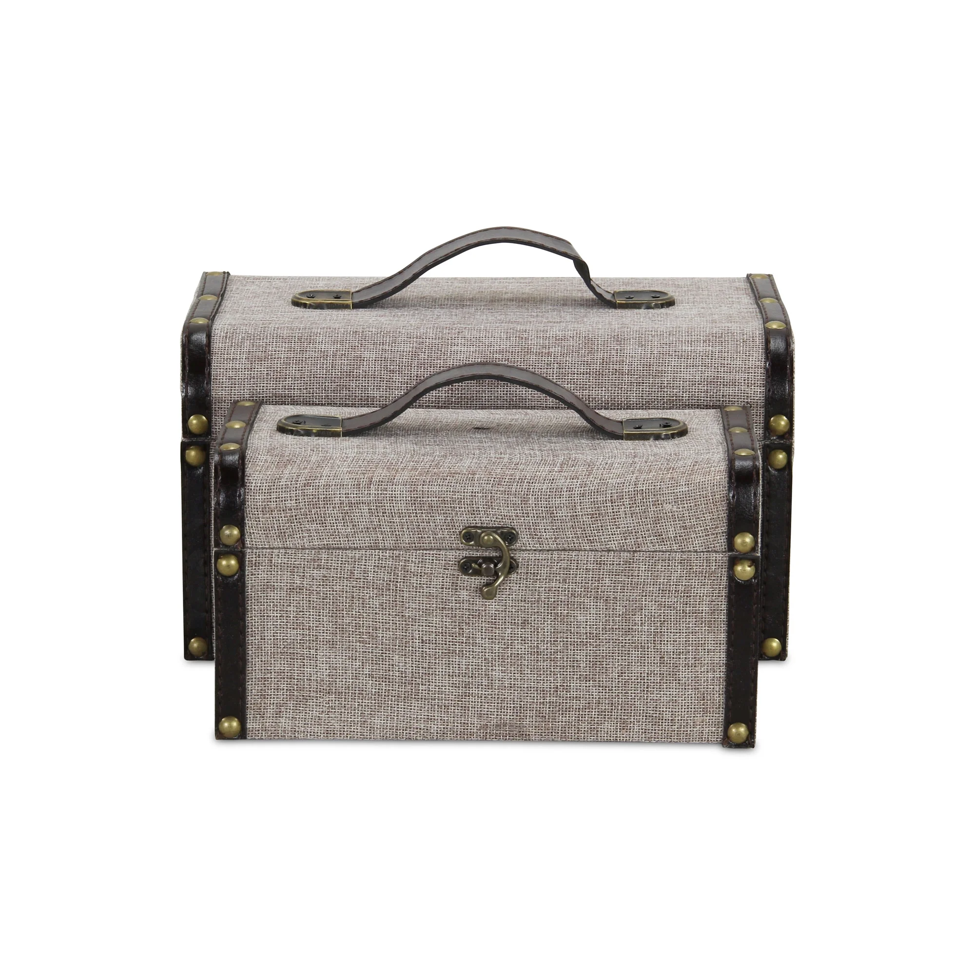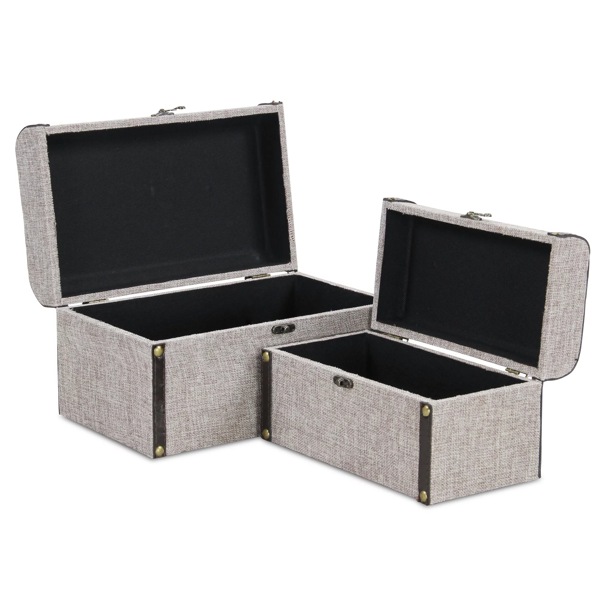 Contemporary Home Living Set of 2 Gray and Black Baggage Style Trunk Storage, 11.75"
