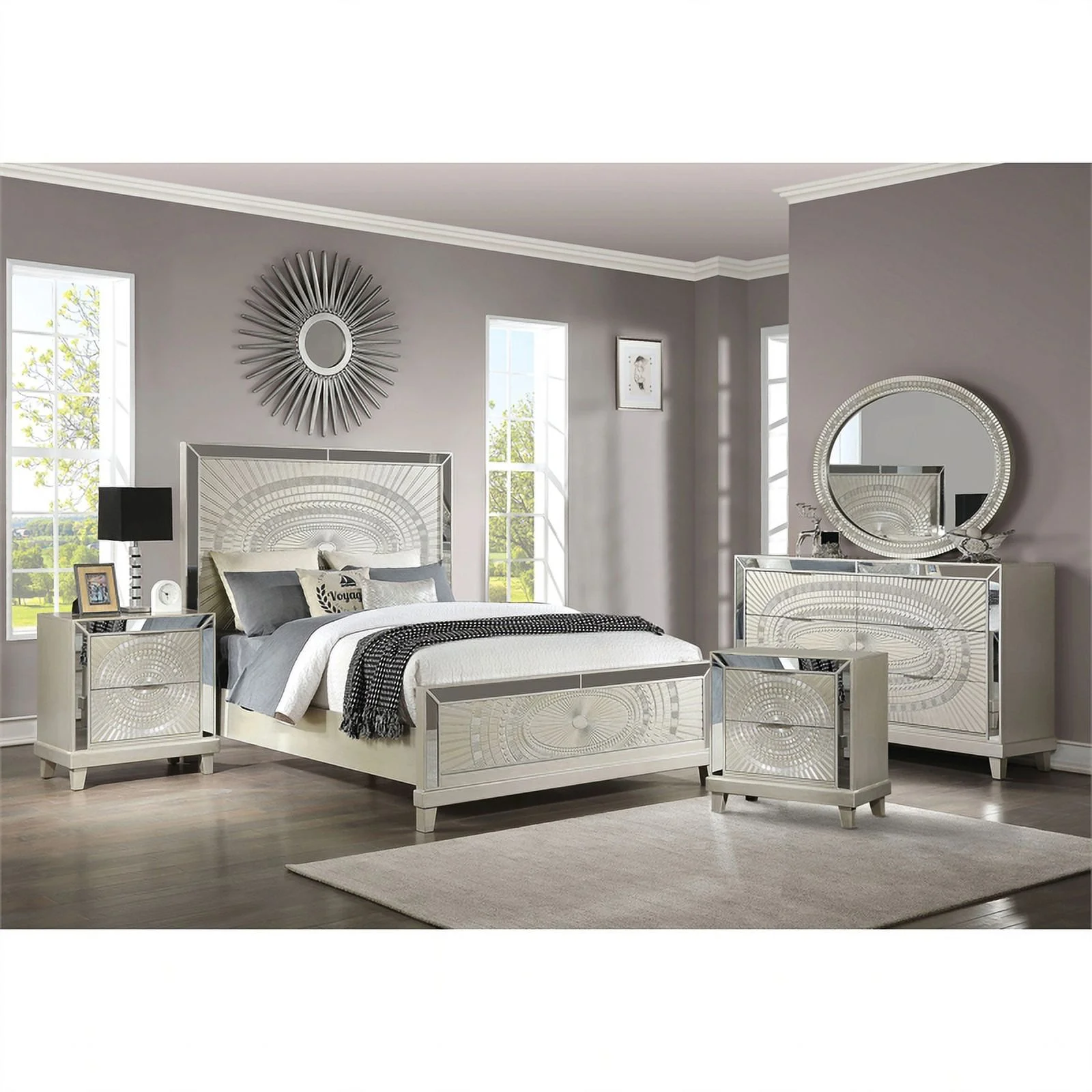 FOA Emegine 3-Piece Silver Wood Bedroom Set - Queen + Nightstand + Dresser