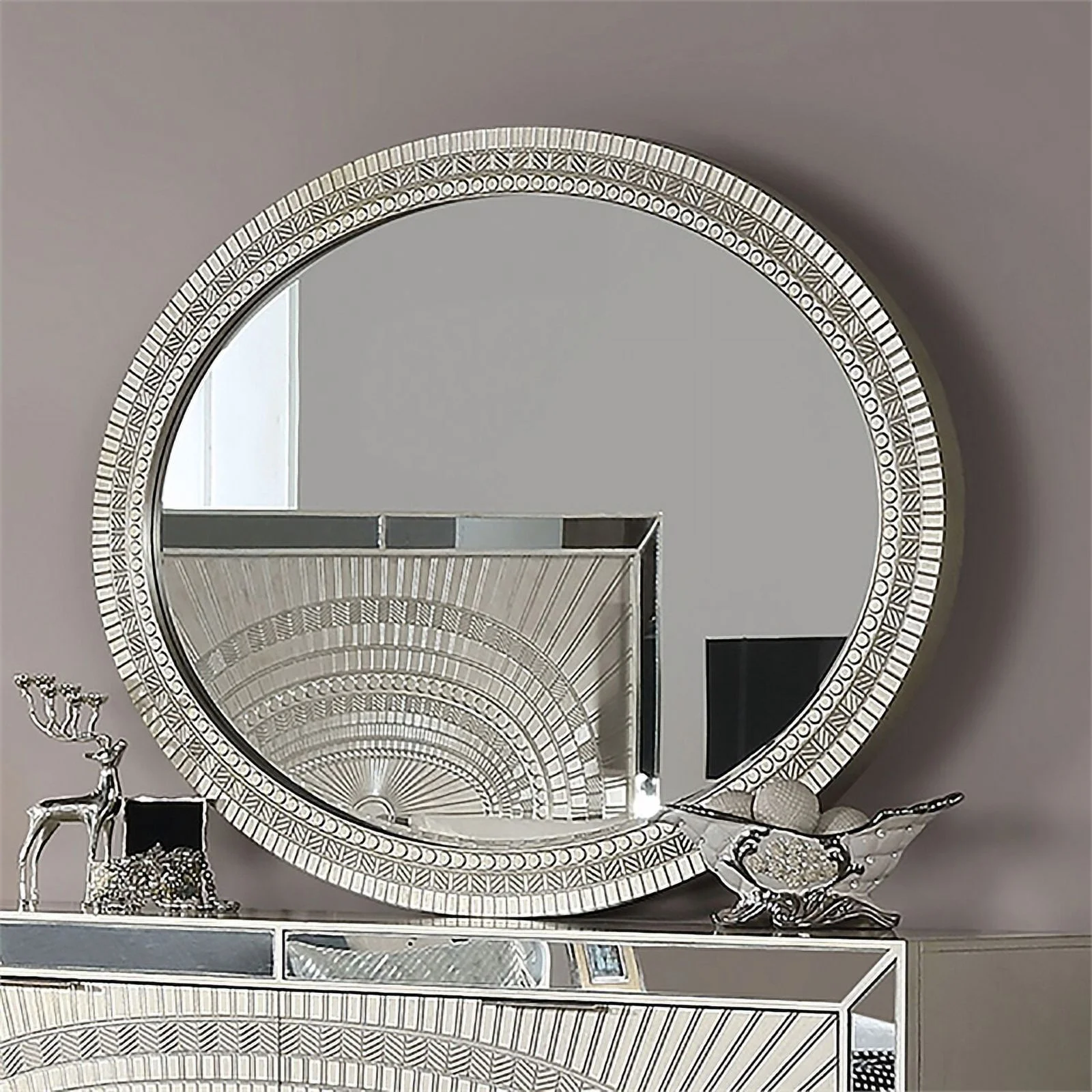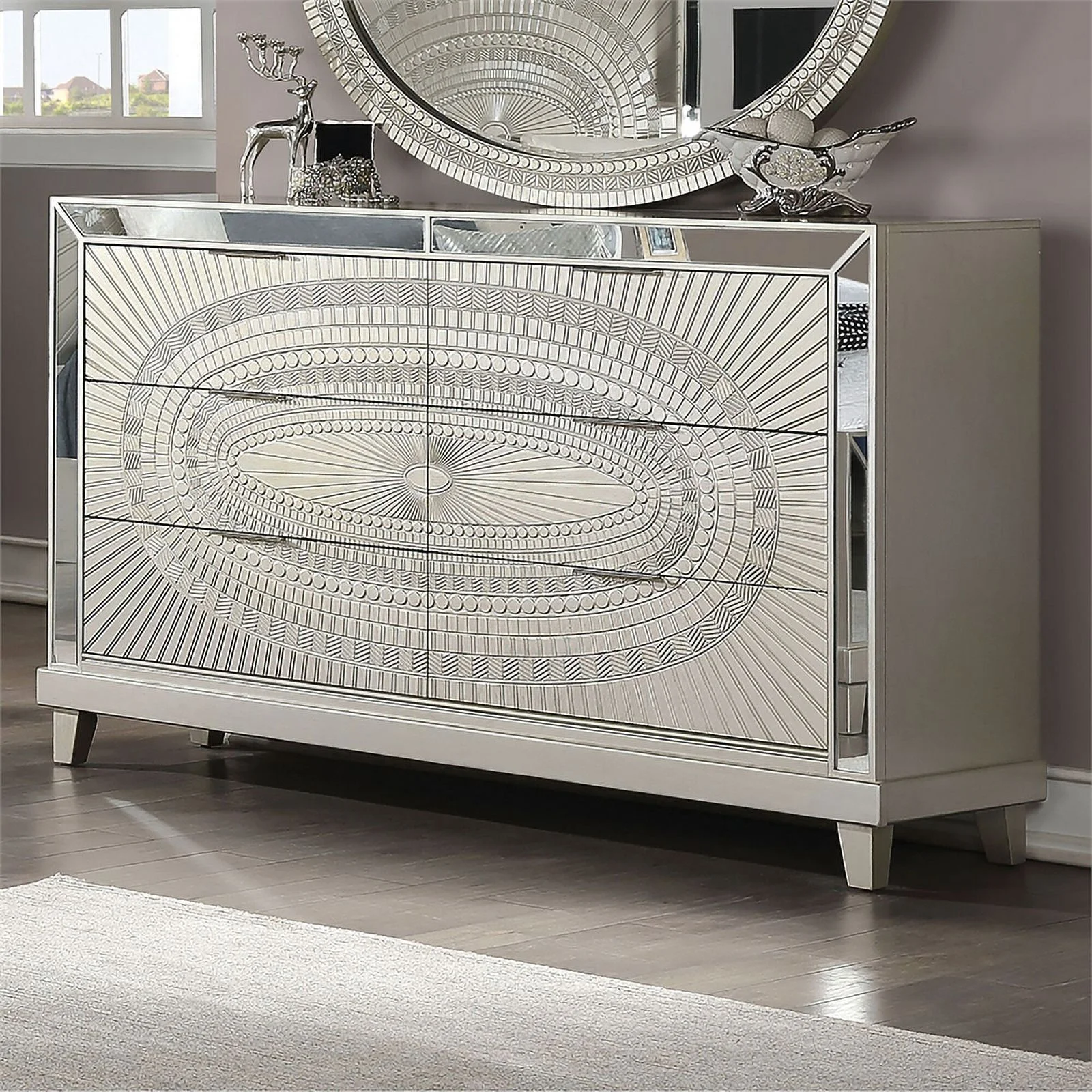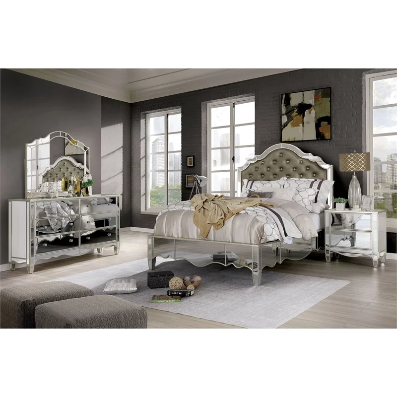 FOA Gavvi Glam 3-Piece Silver Wood Bedroom Set - Cal King + Nightstand + Dresser