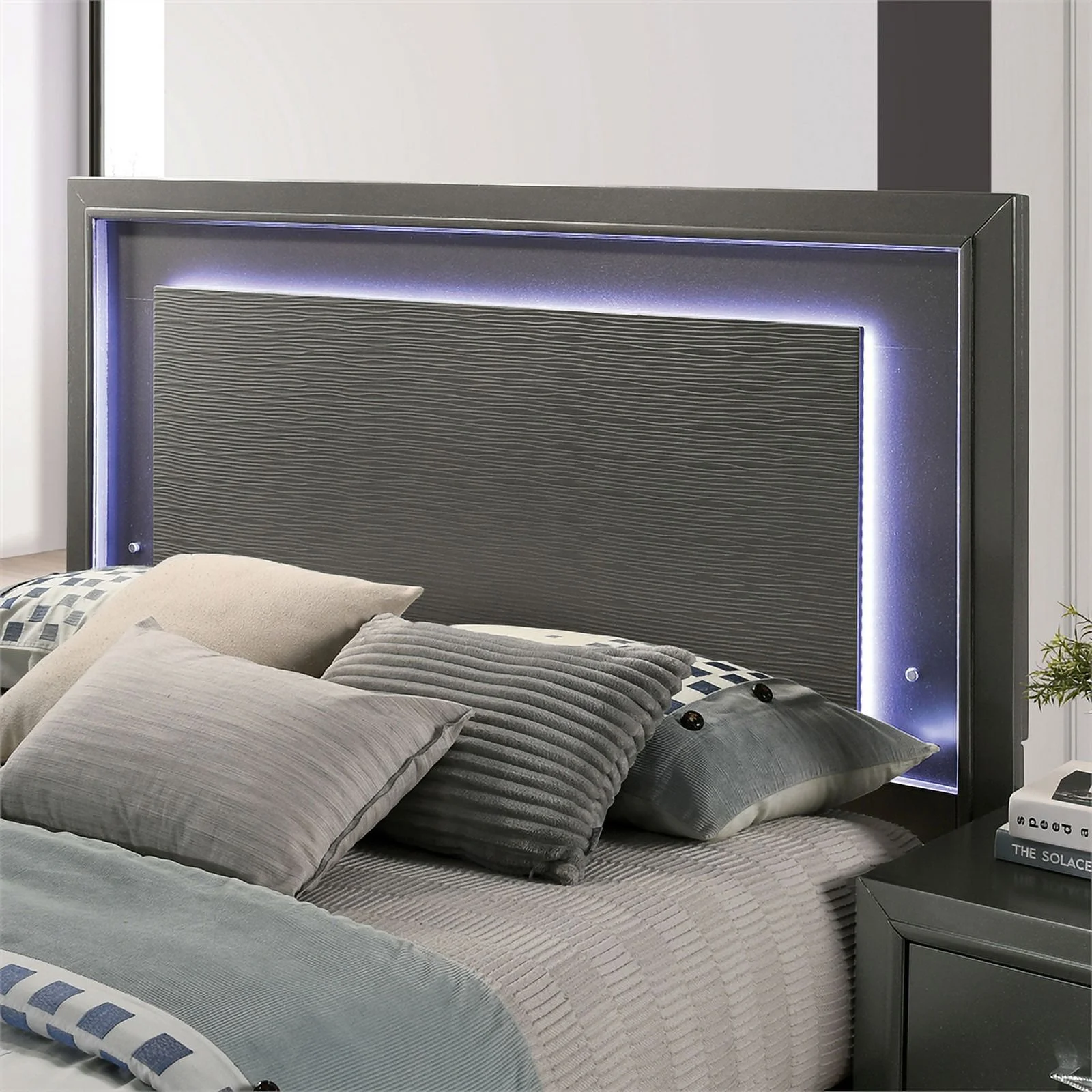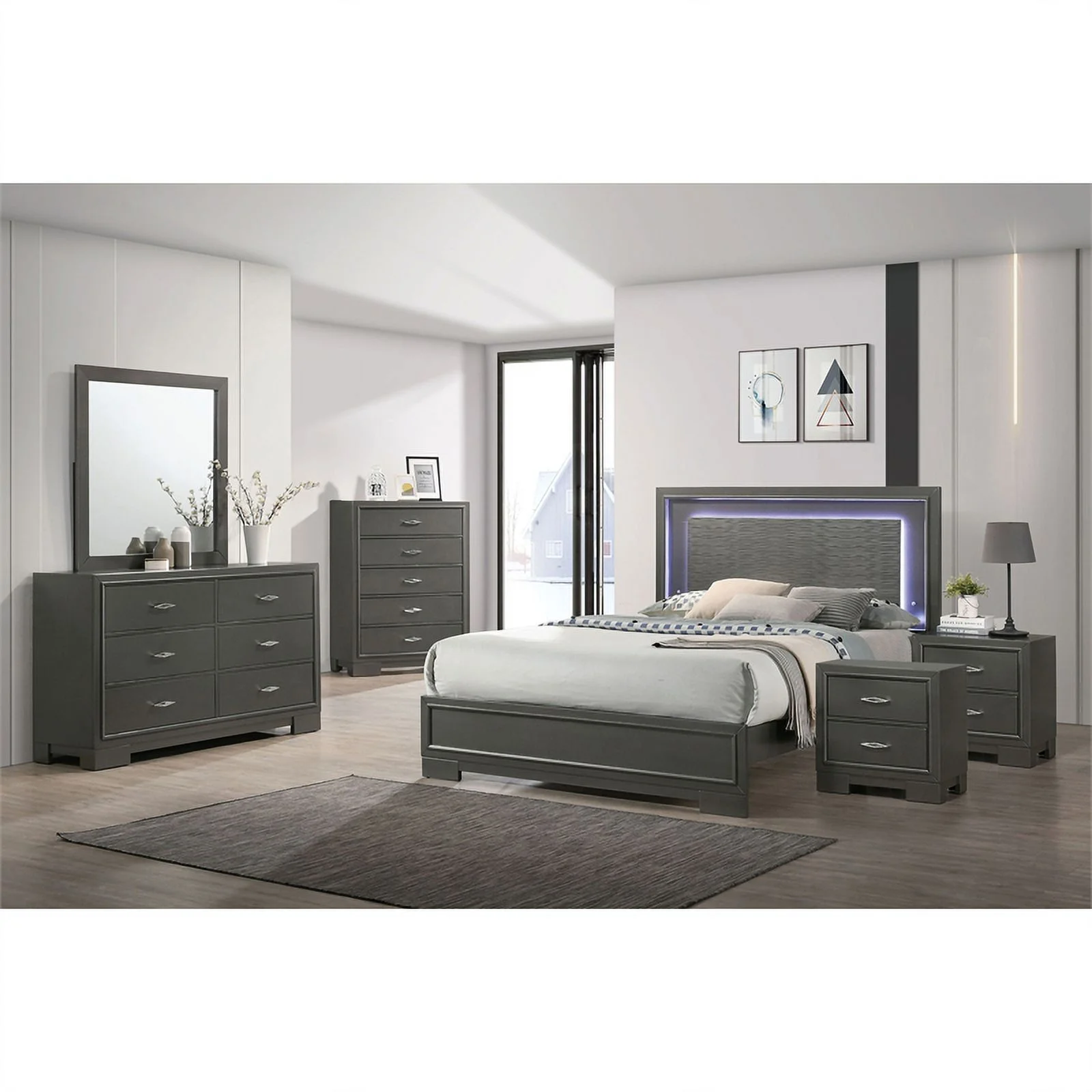 FOA Santi 6pc Gray Wood Bedroom Set - Full +2 Nightstands +Chest +Dresser+Mirror