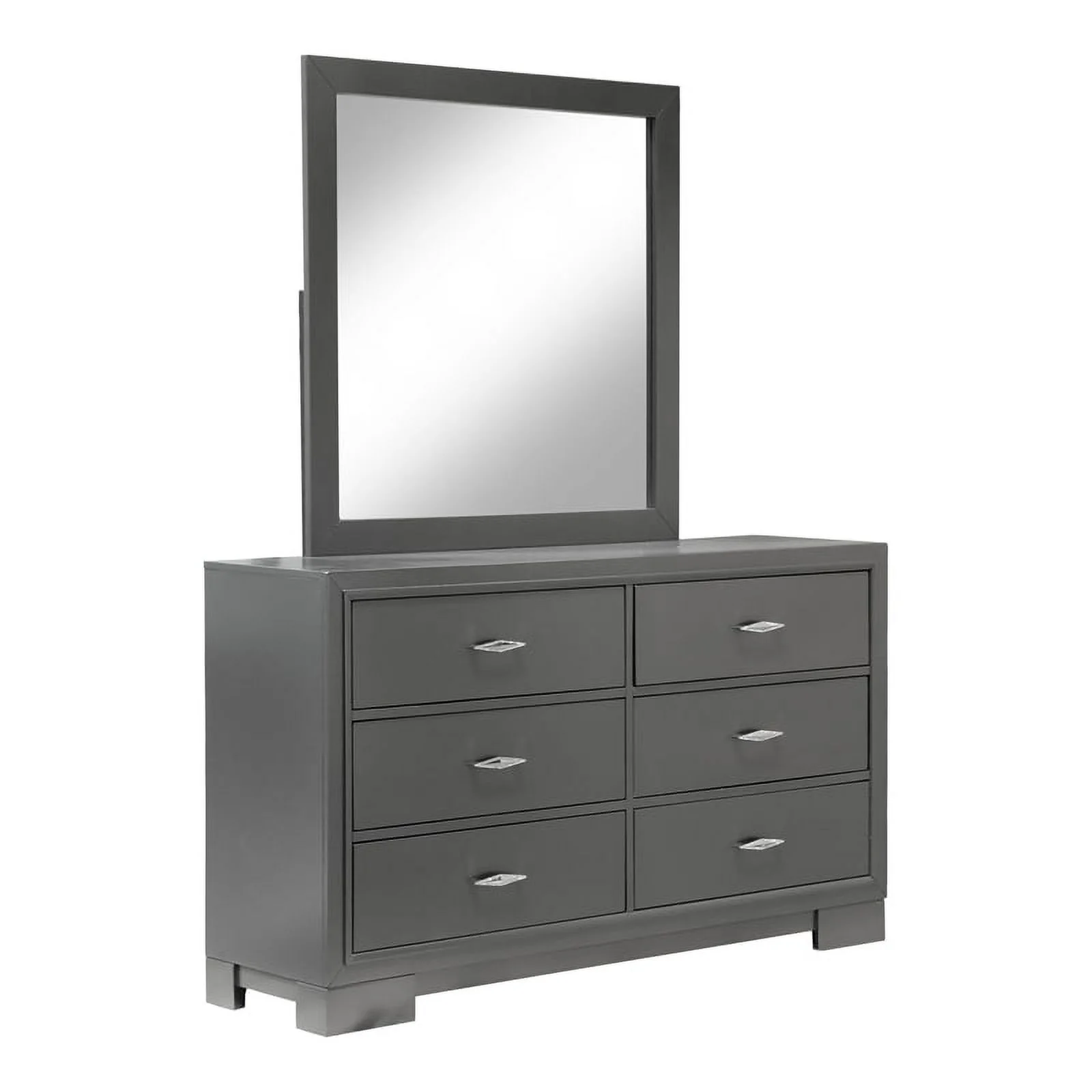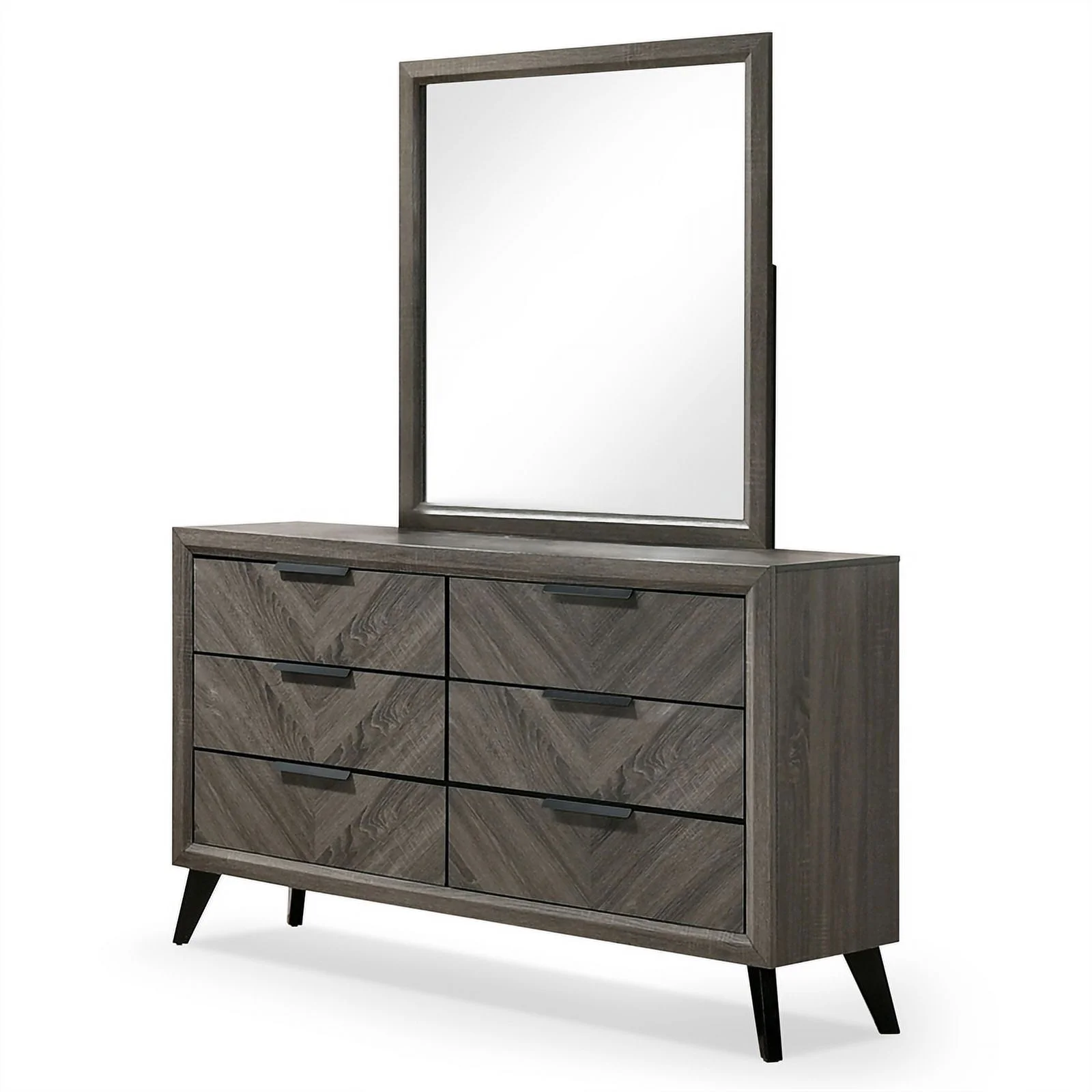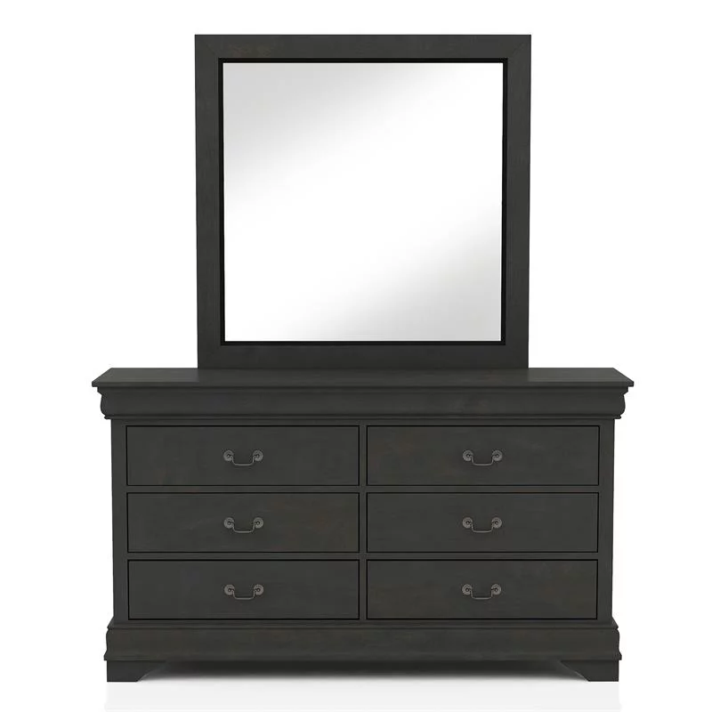 FOA Hean 6pc Wood Gray Bedroom Set - Cal King+2 Nightstands+Chest+Dresser+Mirror