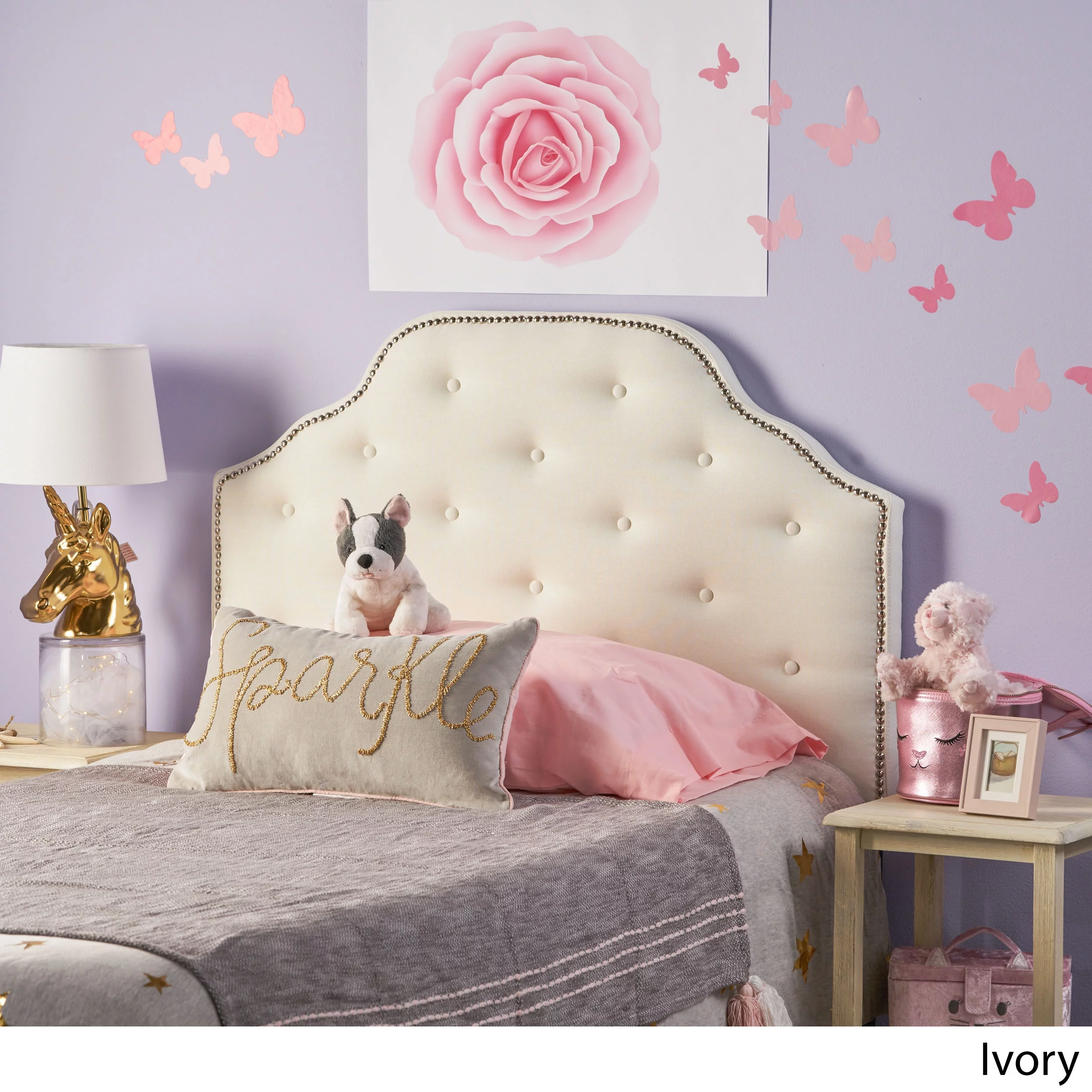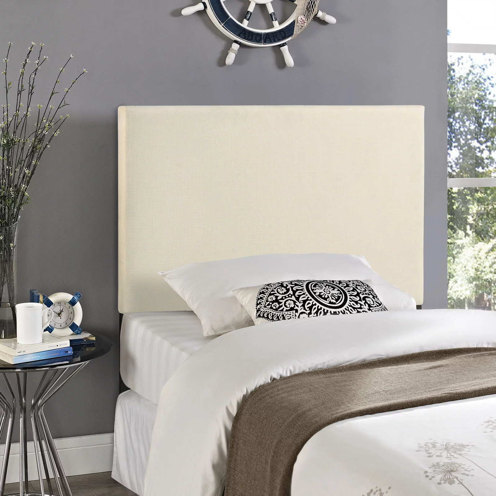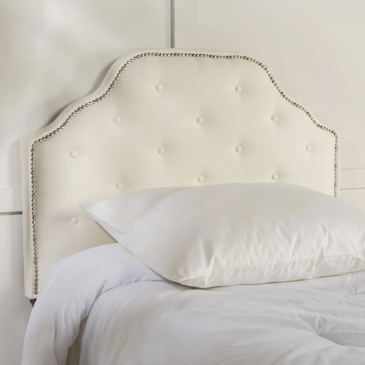GDF Studio Gaius Contemporary Fabric Tufted Twin Headboard with Nailhead Trim, Ivory