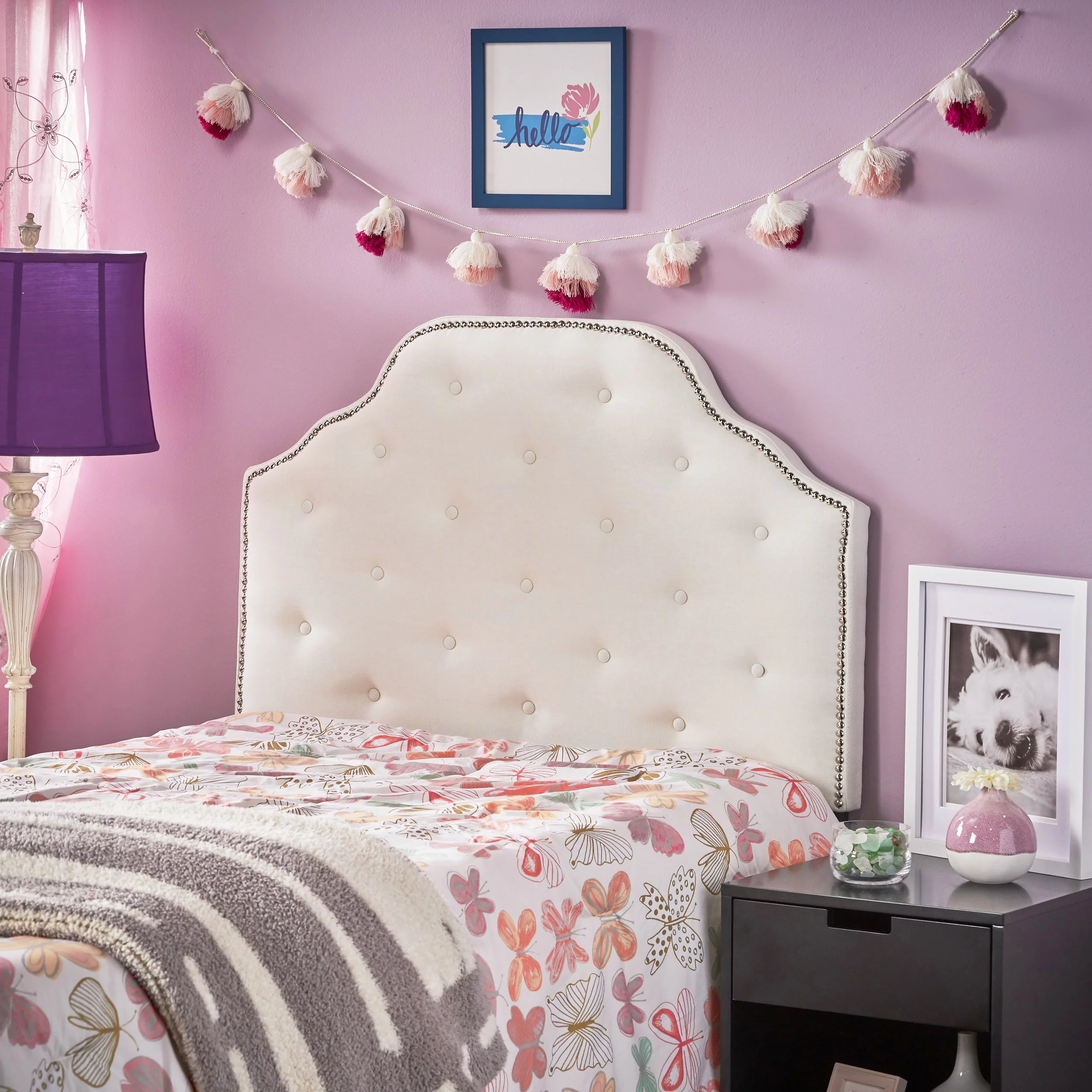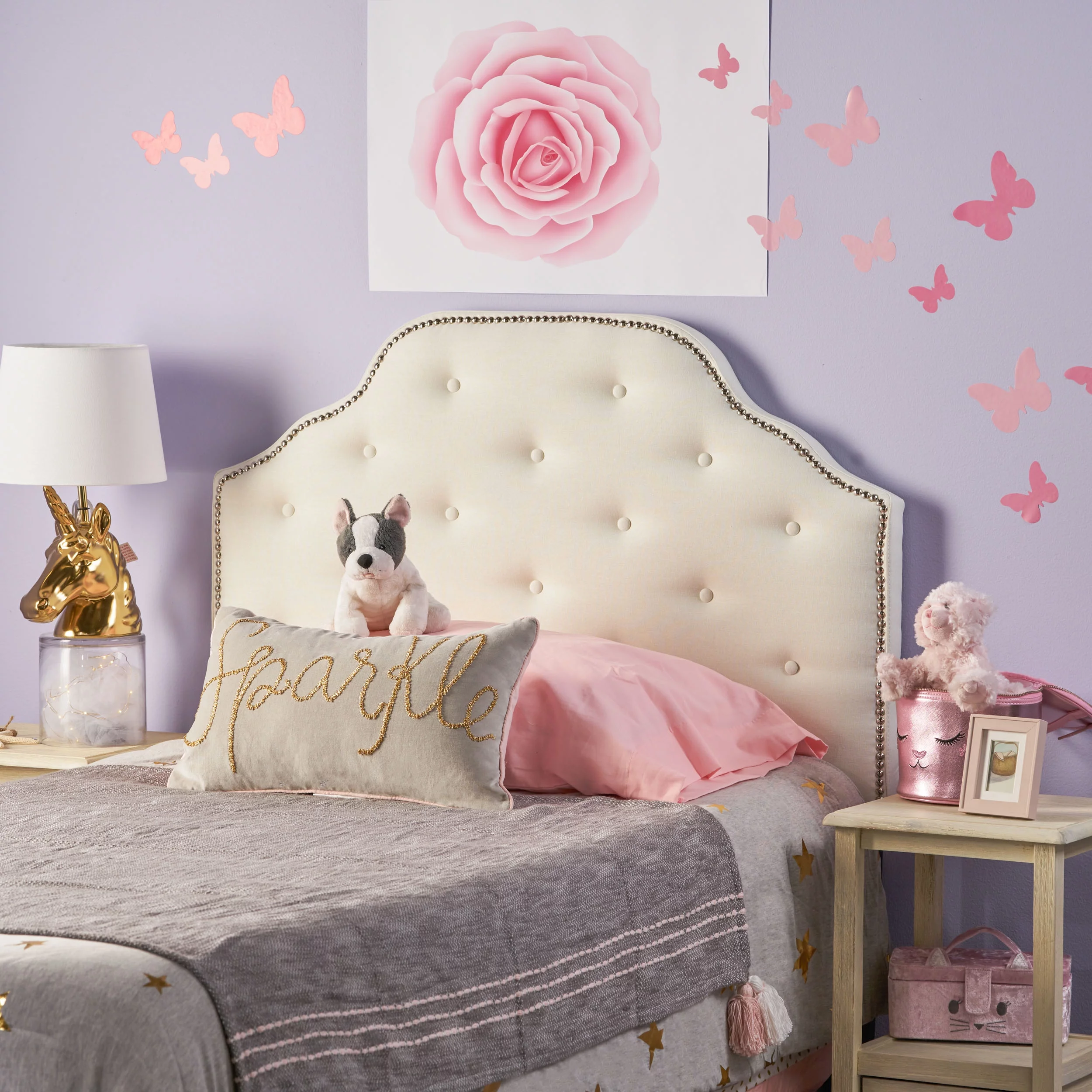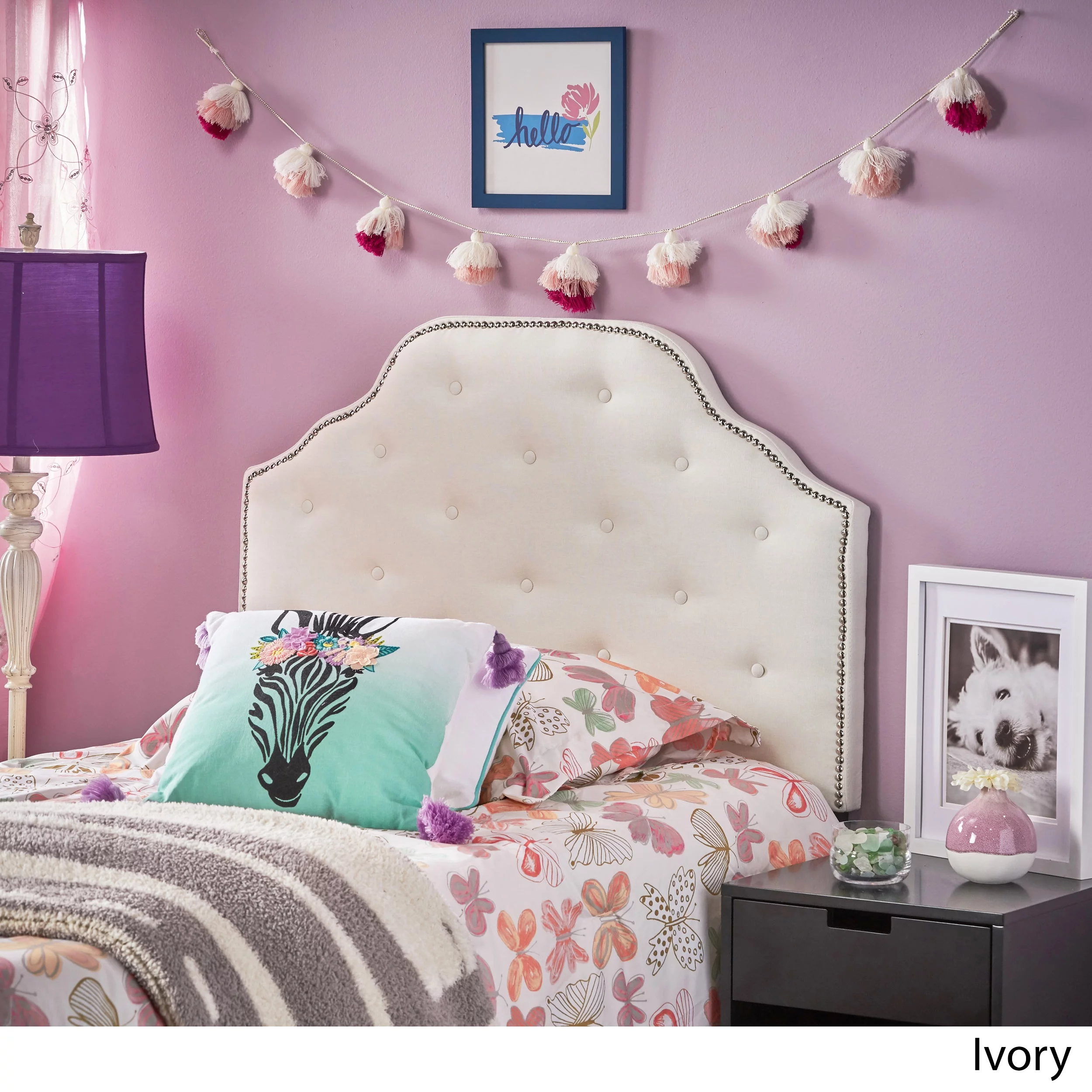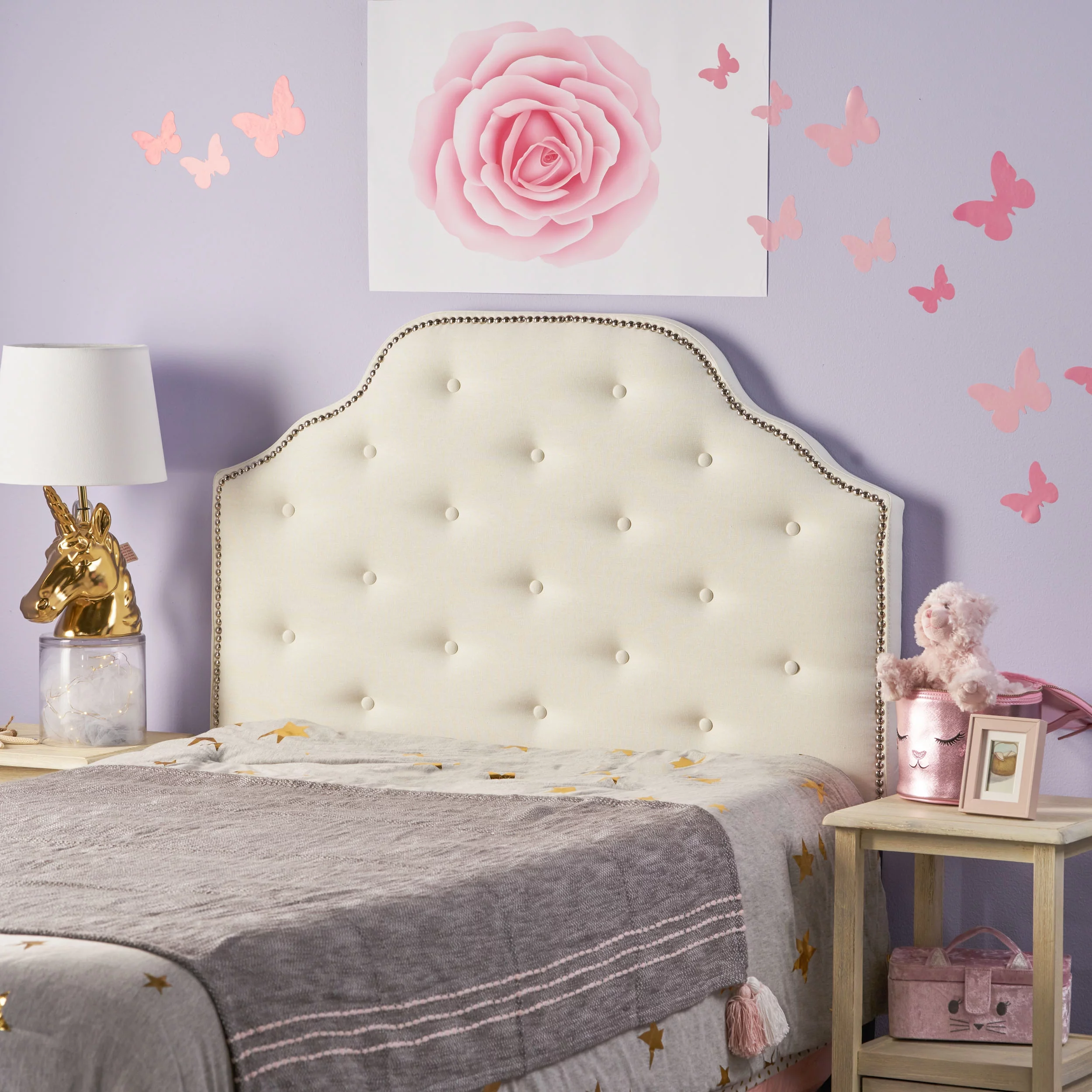 GDF Studio Gaius Contemporary Fabric Tufted Twin Headboard with Nailhead Trim, Ivory